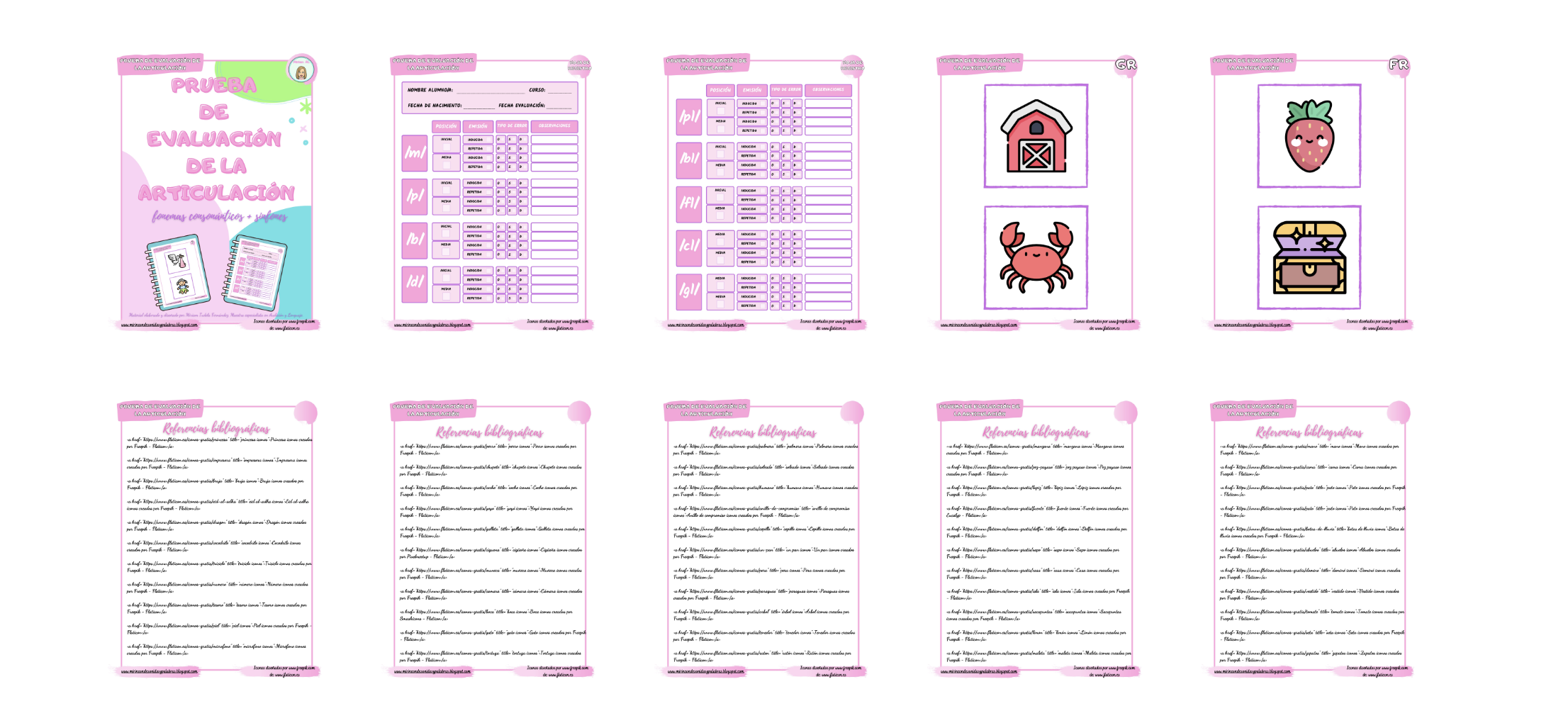 Prueba Evaluación Articulación consonantes + sinfones