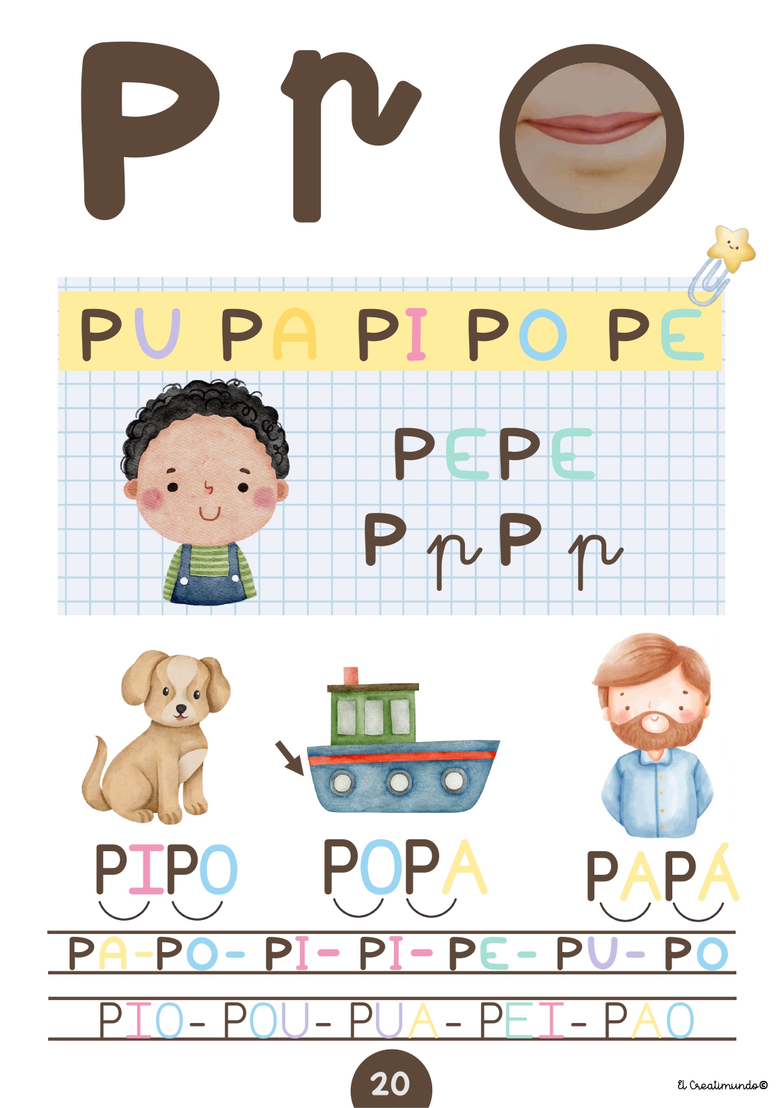 Estos recursos pueden emplearse de forma secuencial: primero el silabario para trabajar las sílabas y sonidos, después el panel de letras para reforzar el reconocimiento visual, y finalmente las cartillas para consolidar la lectura de palabras y frases. Son materiales perfectos para el aula o el refuerzo en casa.