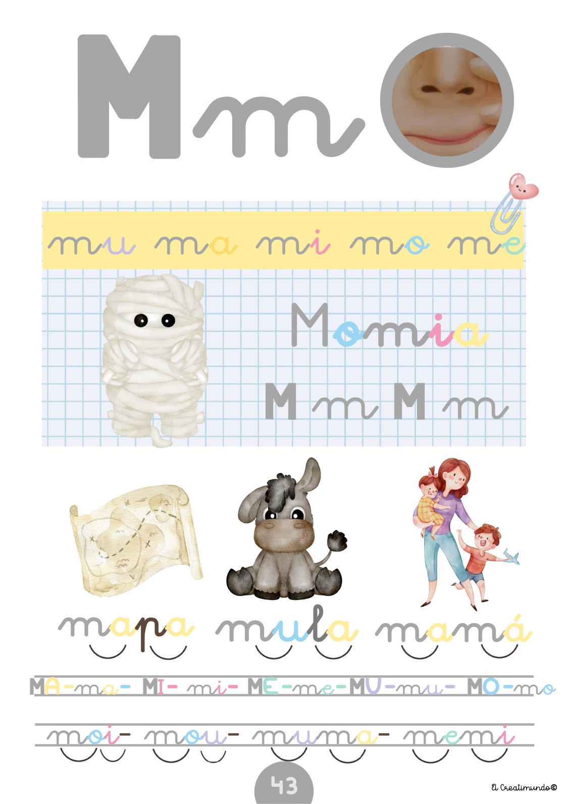 📘 Cartilla de lectura nivel 1: pensada para niños y niñas de 4 y 5 años, basada en el método “Letrilandia”, incluye ejercicios de grafía, conciencia fonológica y lectura de palabras sencillas.