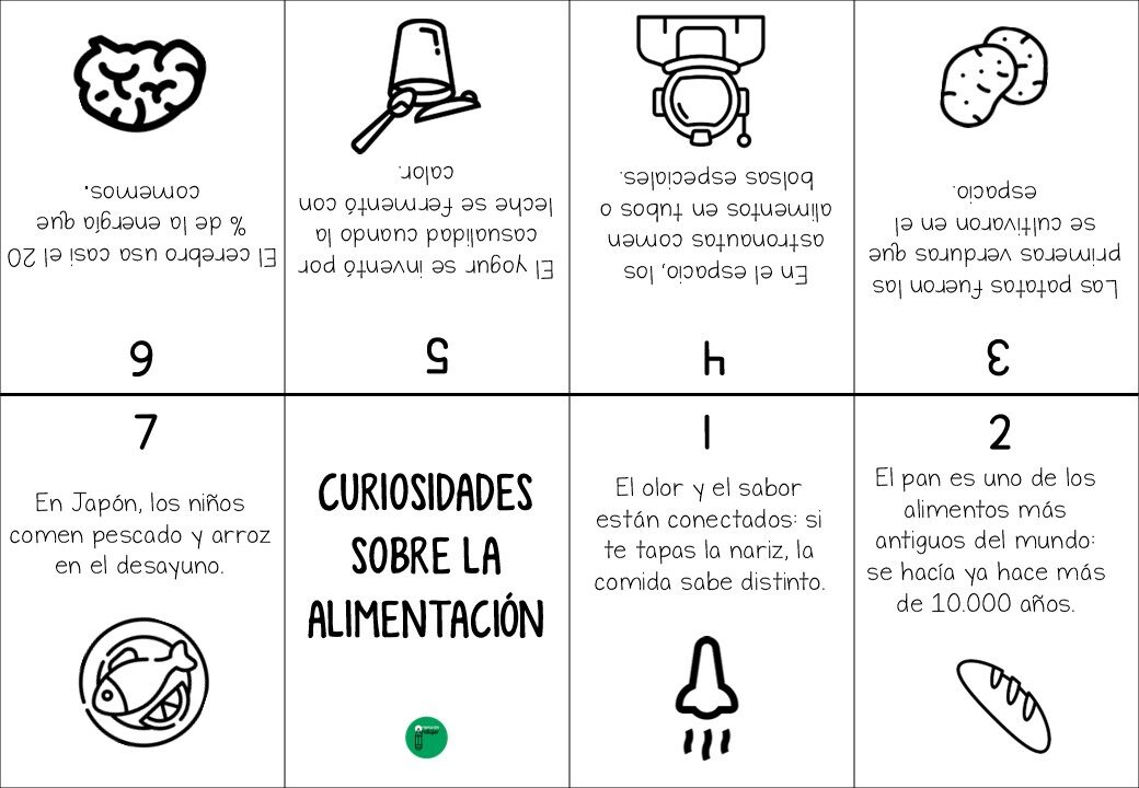 Como actividad complementaria, se puede proponer a los alumnos buscar e investigar nuevas curiosidades sobre la alimentación: