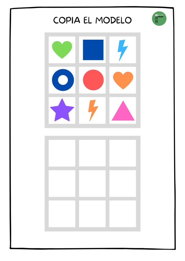Hoy compartimos una actividad ideal para trabajar la atención, la percepción visual y la coordinación ojo-mano en Infantil y Primer Ciclo de Primaria. Con esta ficha, los alumnos deberán observar y copiar el modelo de diferentes figuras geométricas y patrones, reforzando su capacidad de concentración y precisión.
