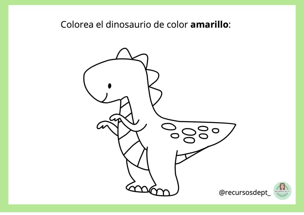 Actividades de colorear dinosaurios con distintos colores (amarillo, verde, azul, rosa y rojo).