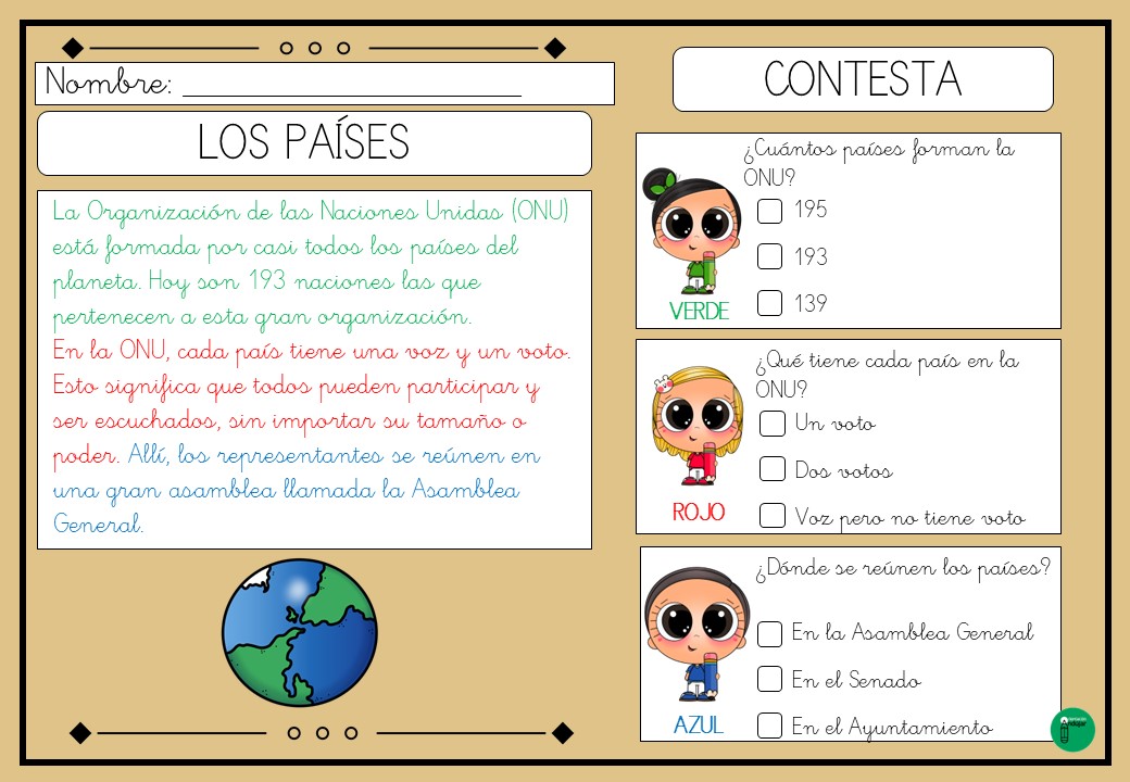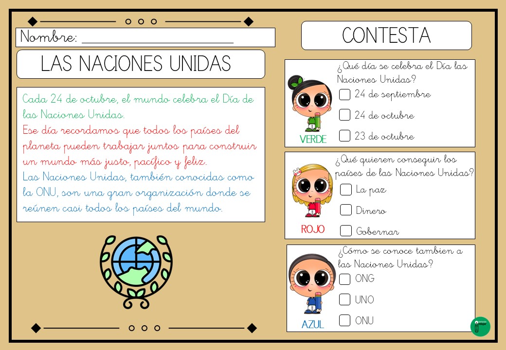 Lecturas comprensivas con pistas visuales dia de las Naciones Unidas