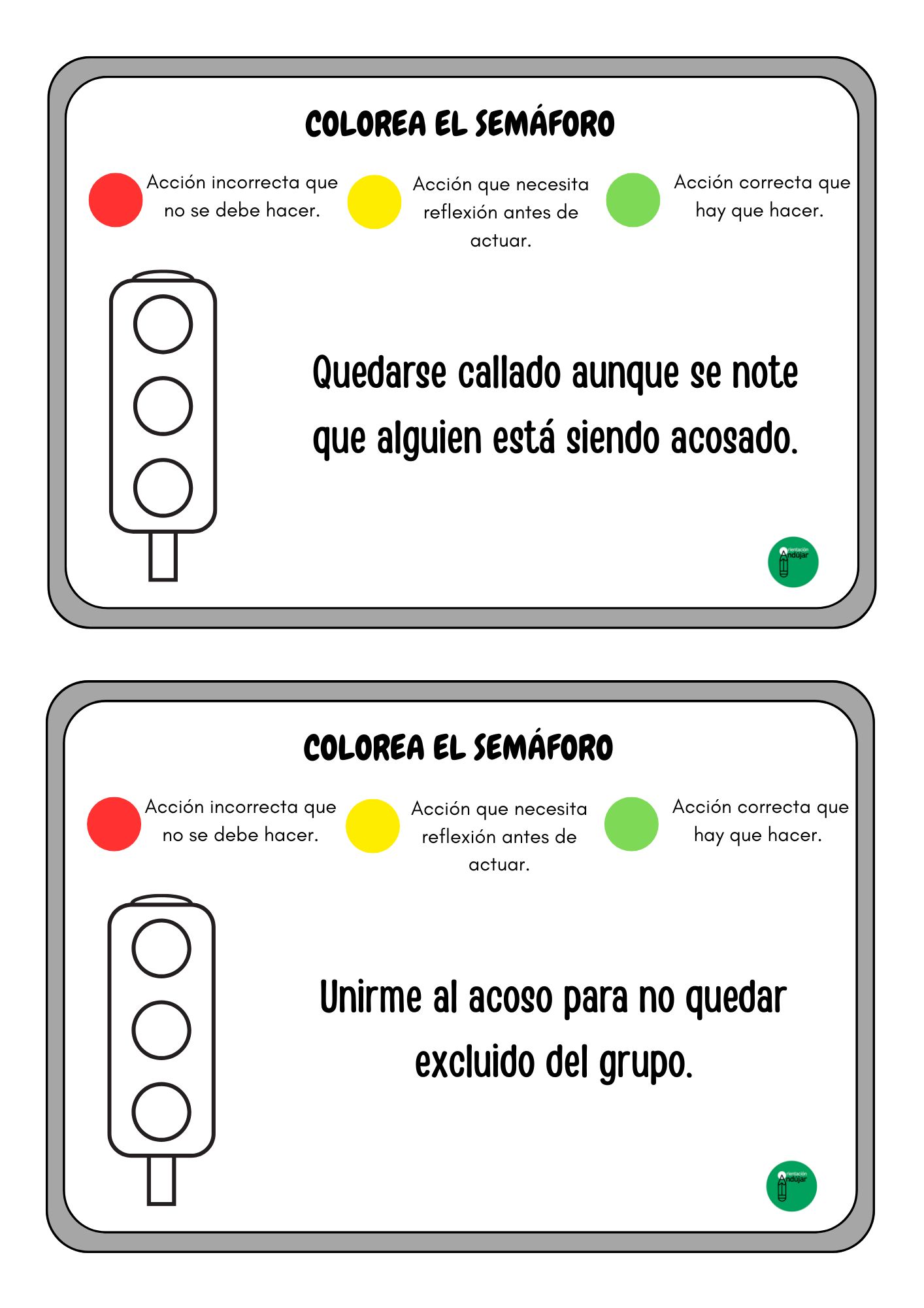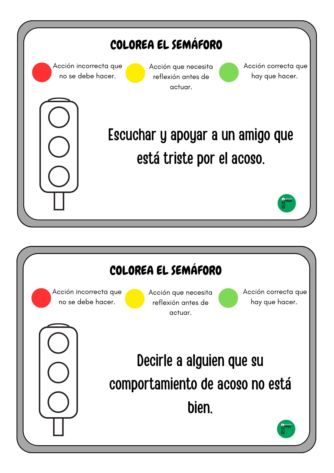Hoy quiero compartir una actividad sencilla, visual y muy poderosa para trabajar la concienciación sobre el acoso escolar en el aula: “El Semáforo de las acciones contra el acoso escolar”.