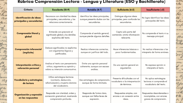 RUBRICA-COMPRENSION-LECTORA-LENGUA-Y-LITERATURA-ESO-Y-BACHILLER Publicado por orientacionandujar el 23 octubre, 2025