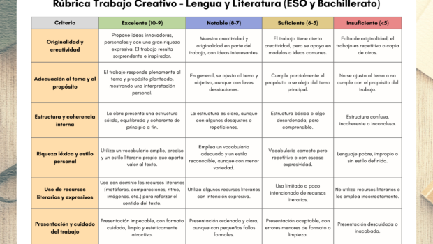 RUBRICA-TRABAJO-CREATIVO-LENGUA-Y-LITERATURA-ESO-Y-BACHILLER Publicado por orientacionandujar el 23 octubre, 2025