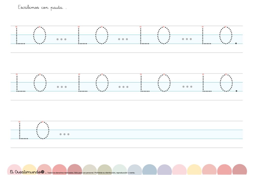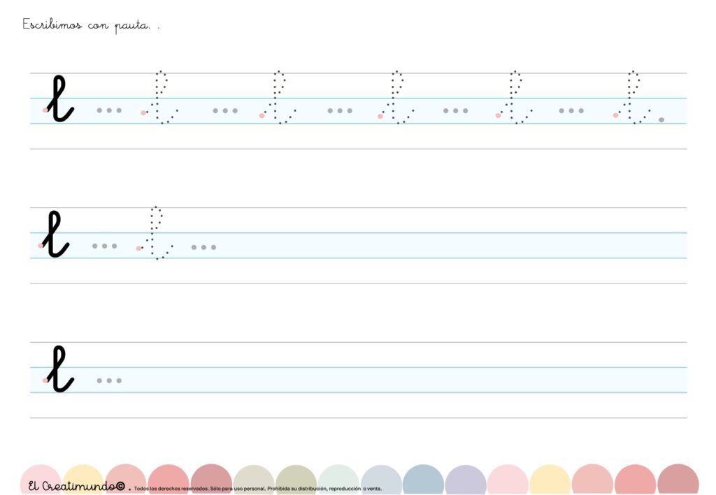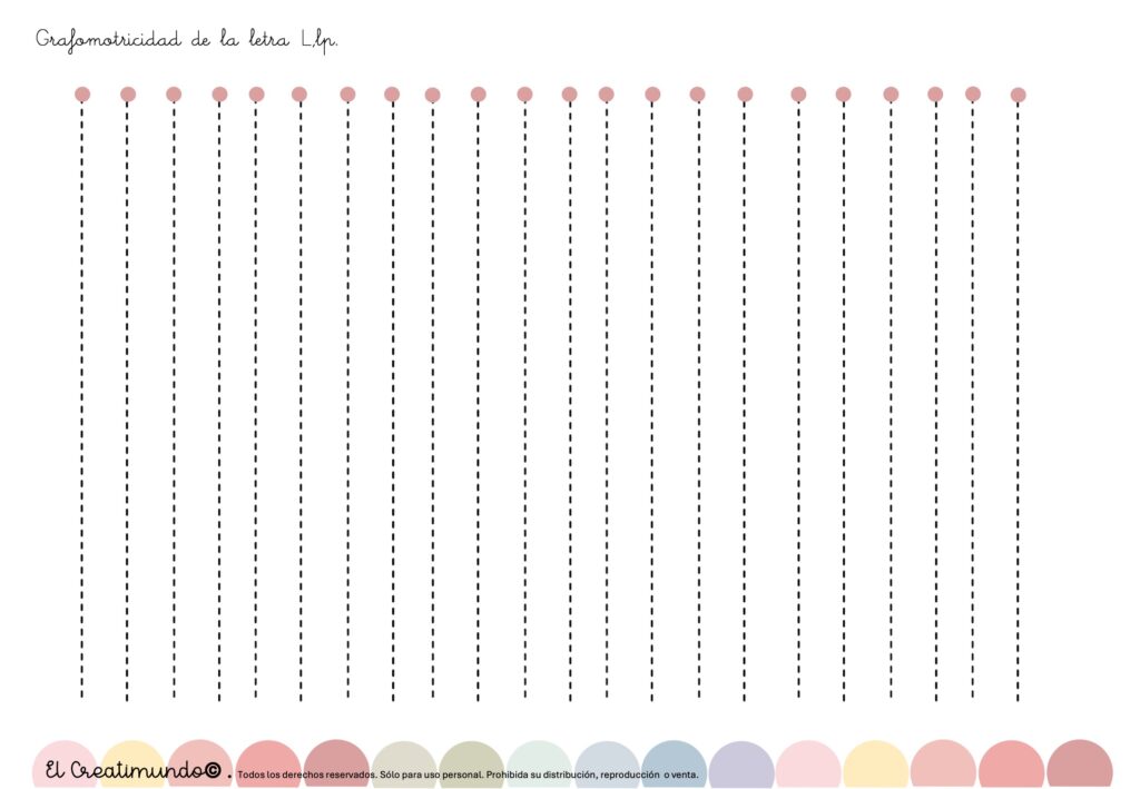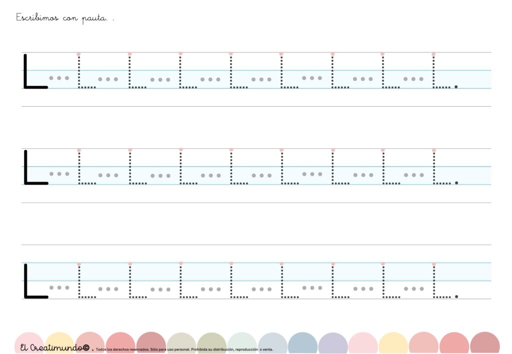 Ejercicios de grafomotricidad de la L/l en pauta.
