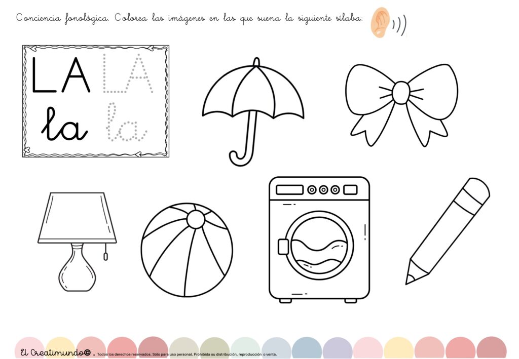 Fichas para unir sílabas y leer combinaciones como la, le, li, lo, lu.