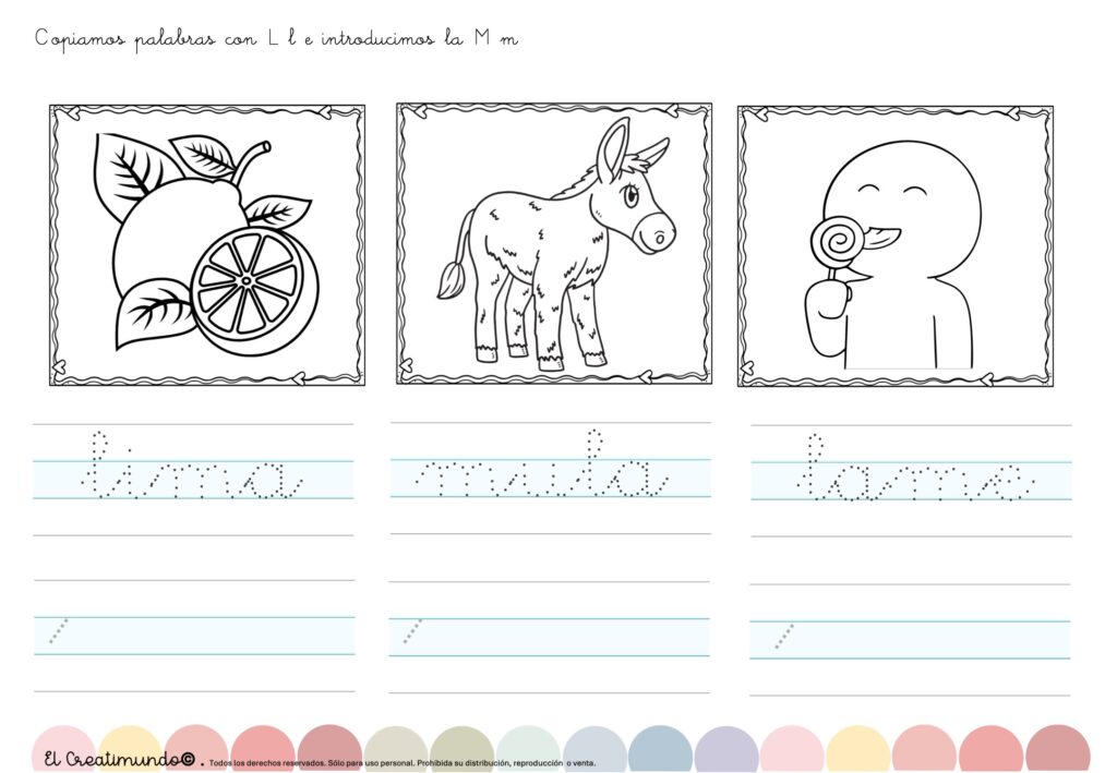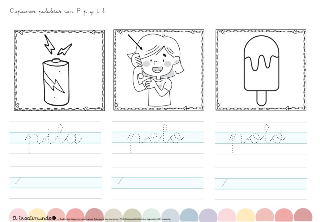 Actividades de escritura de palabras y frases sencillas con la letra L.