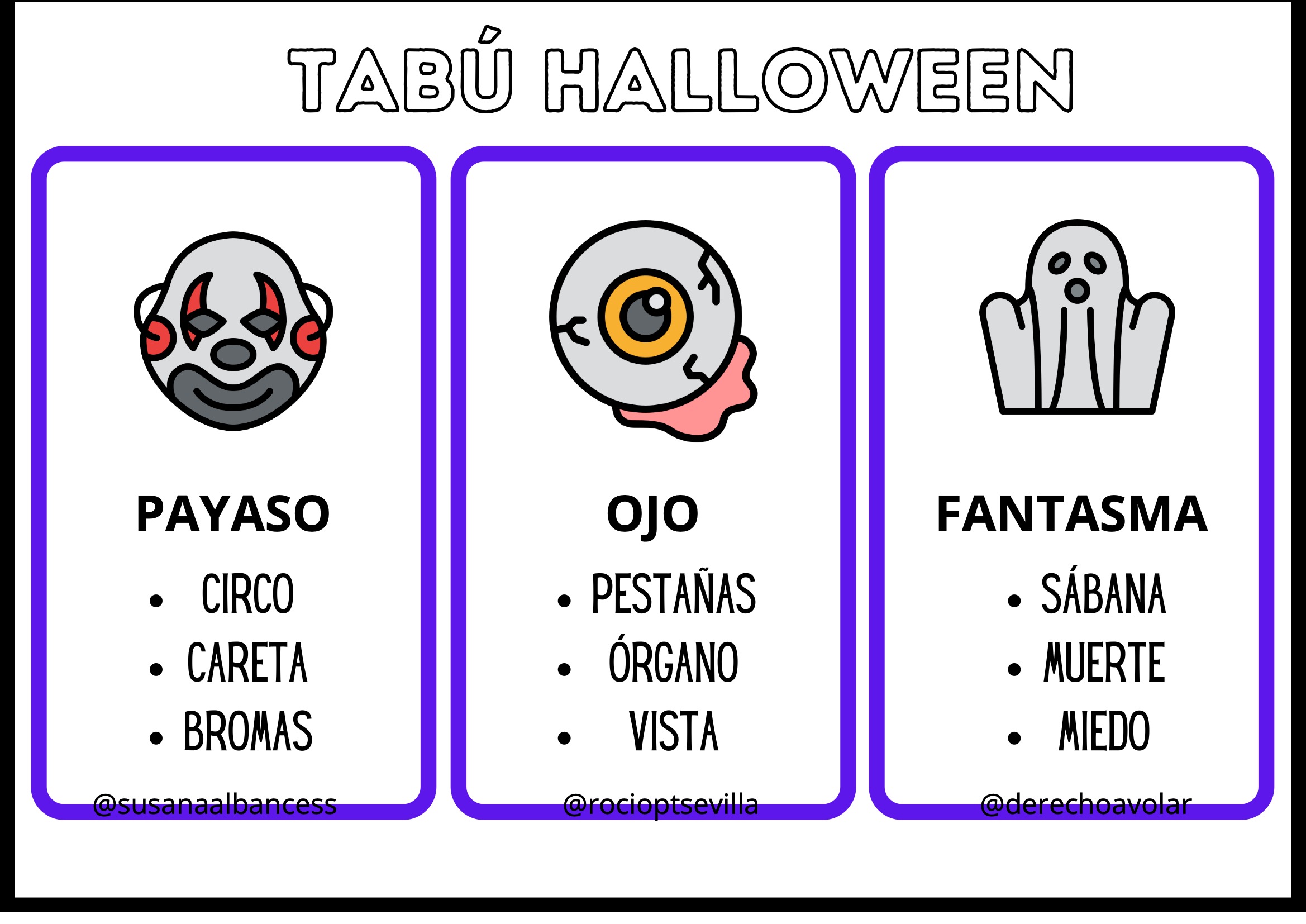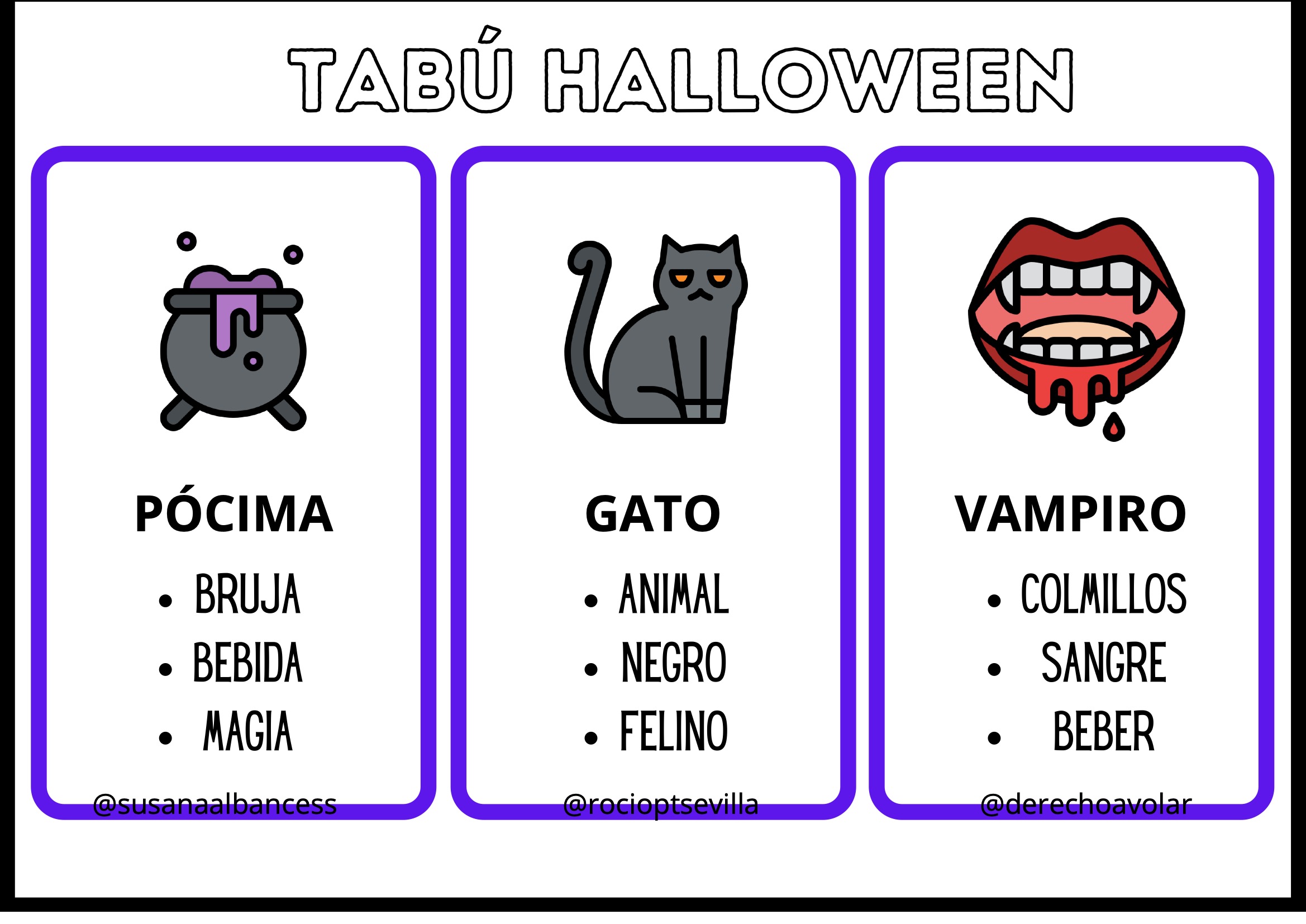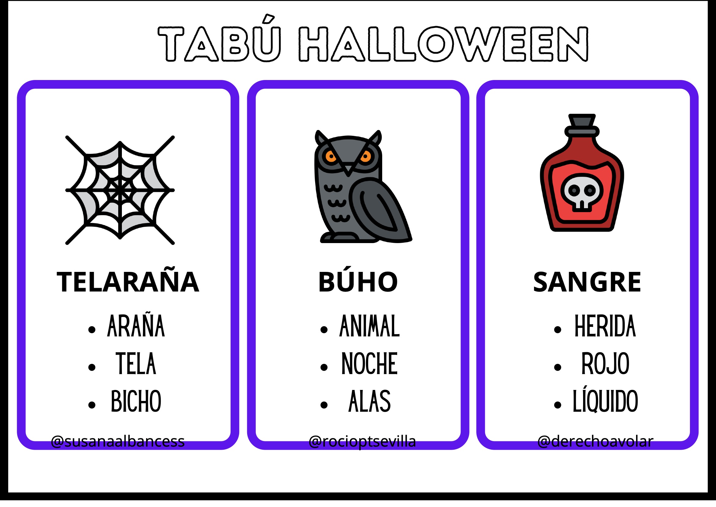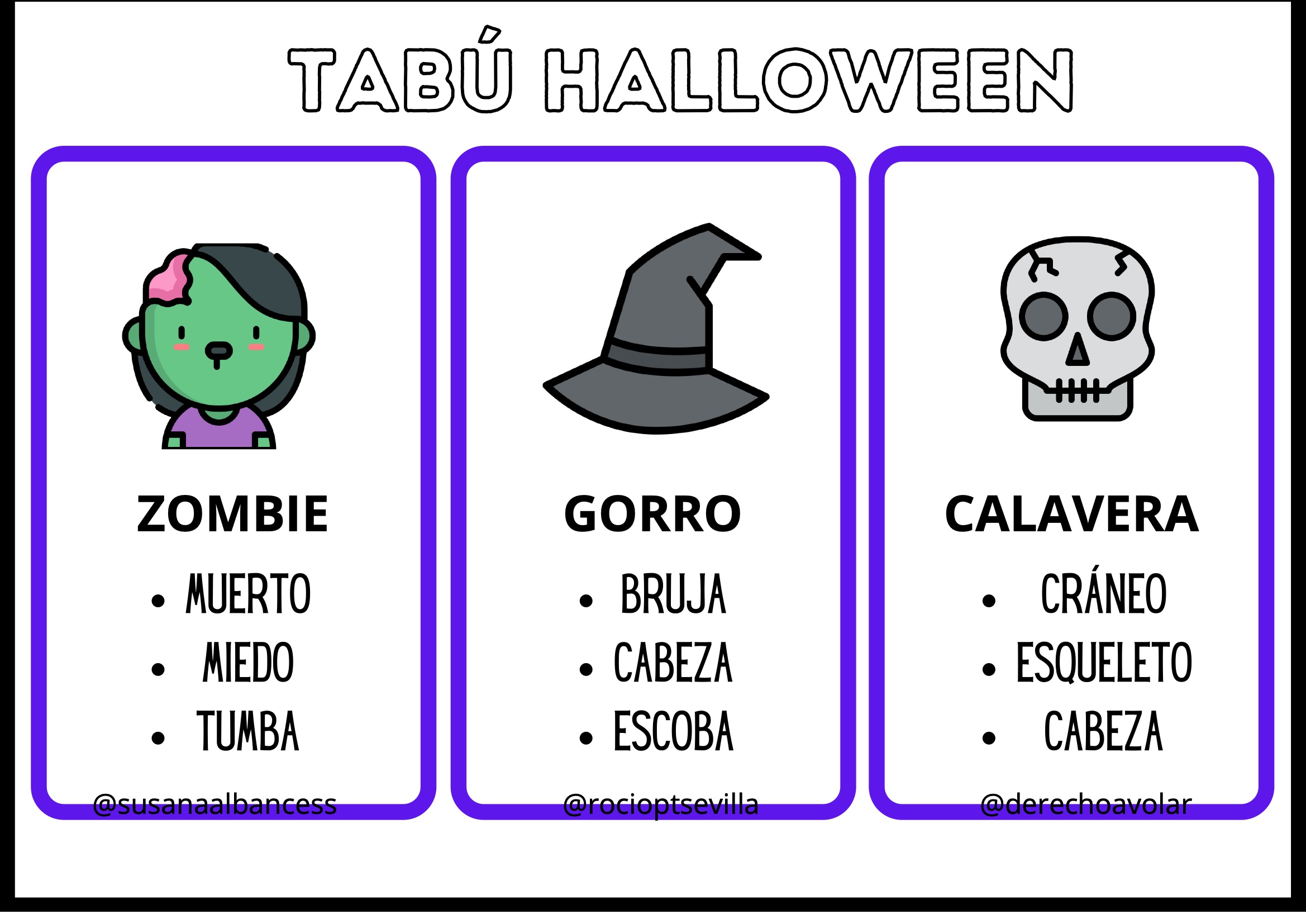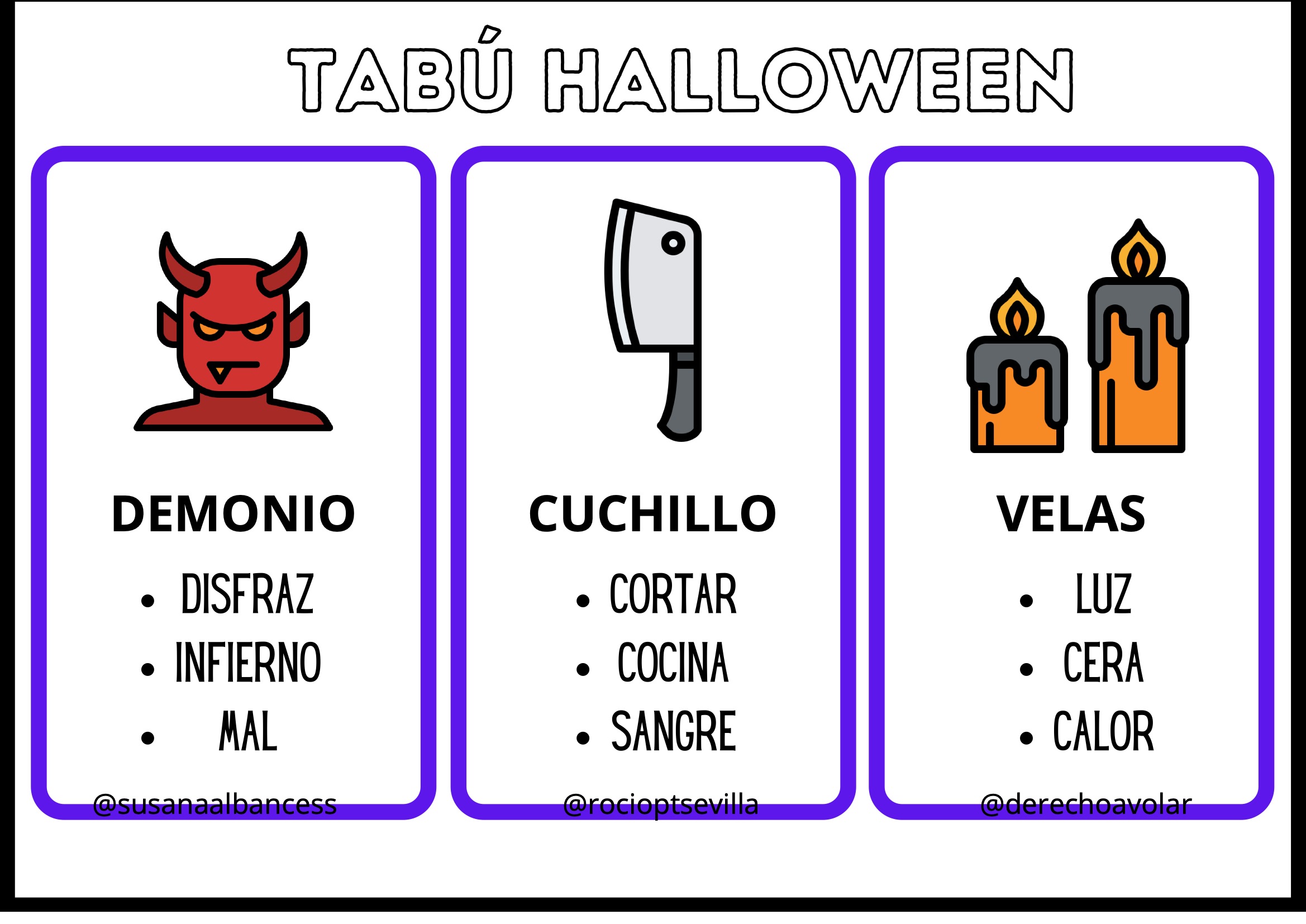 Actividades de vocabulario temático de Halloween: palabras como bruja, calabaza, murciélago, vampiro o fantasma.