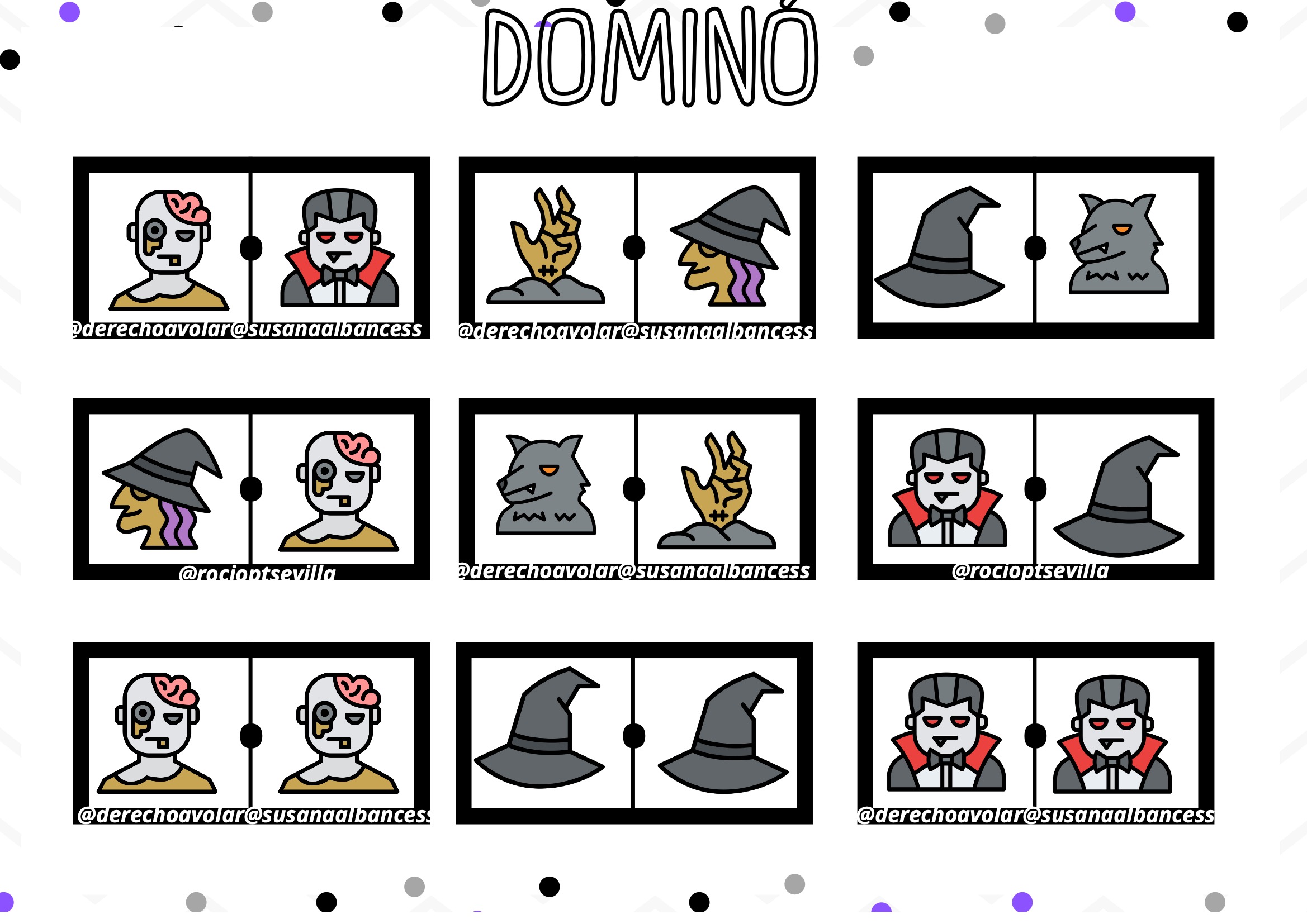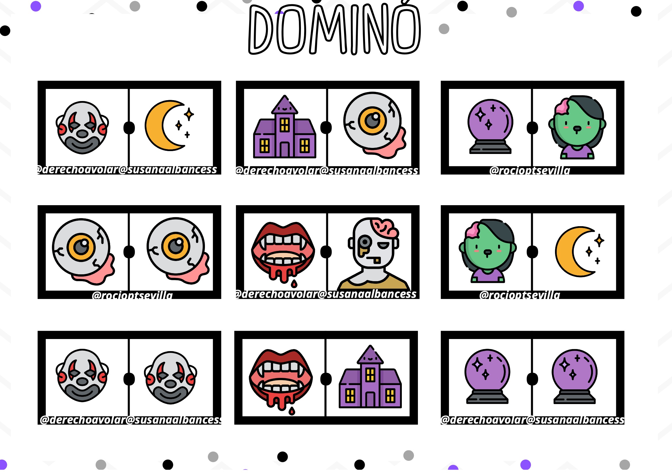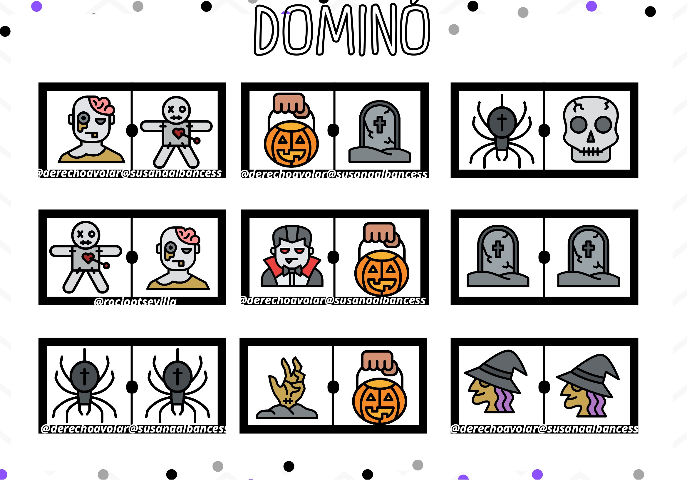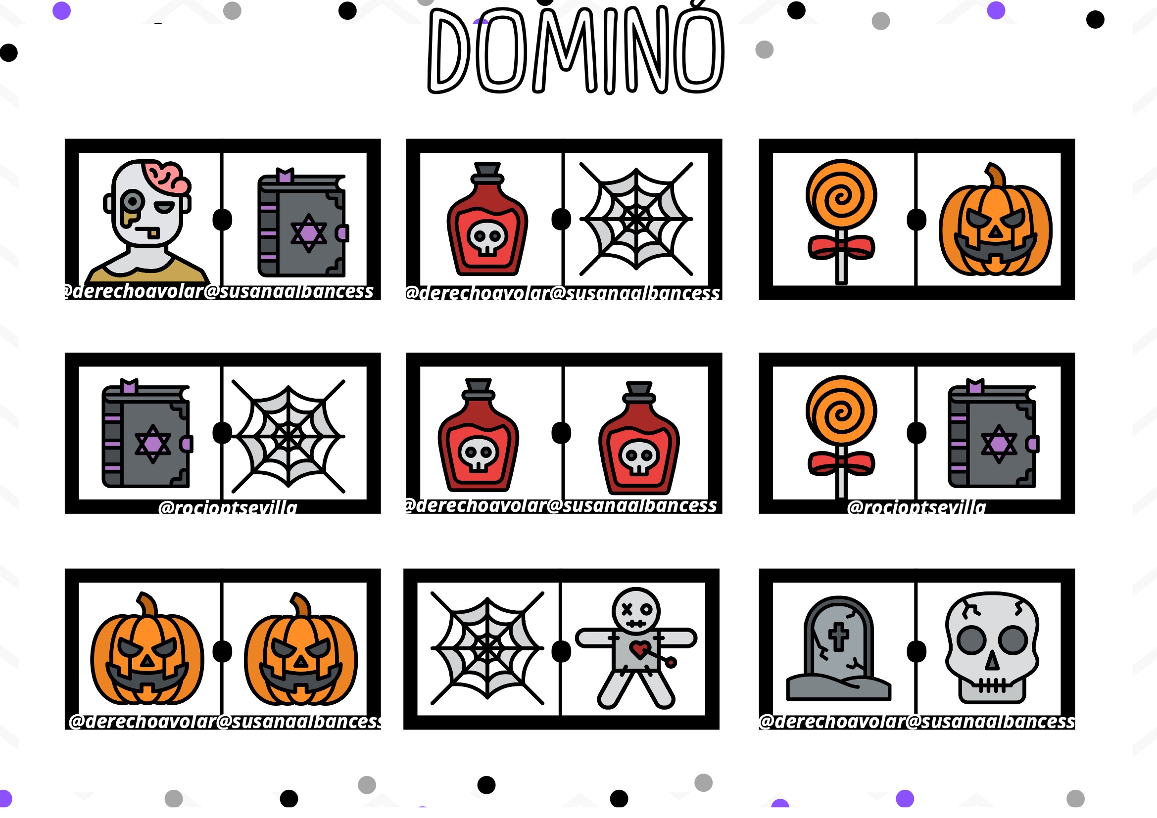 Dominó ilustrado de Halloween para trabajar la memoria visual y la asociación.