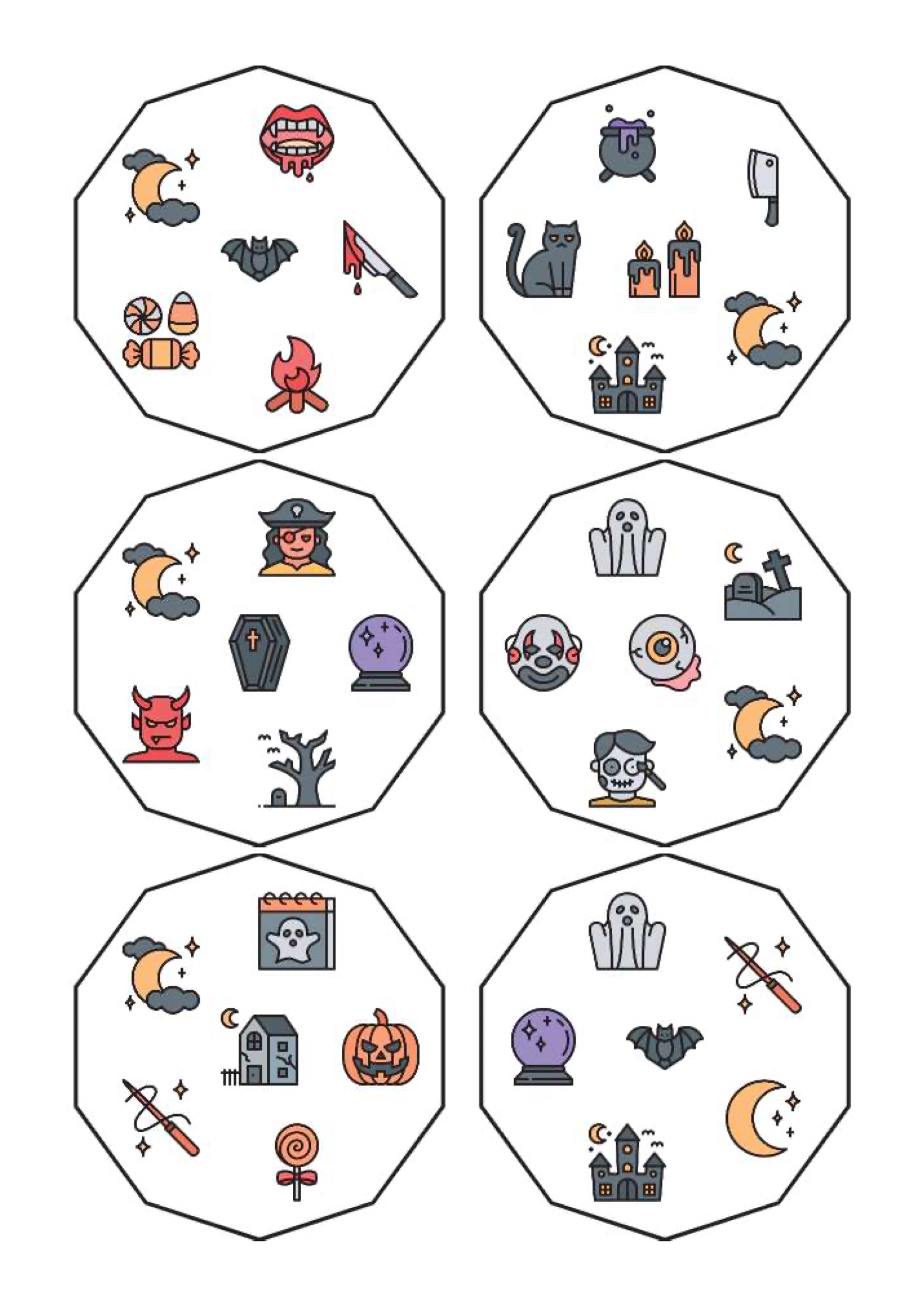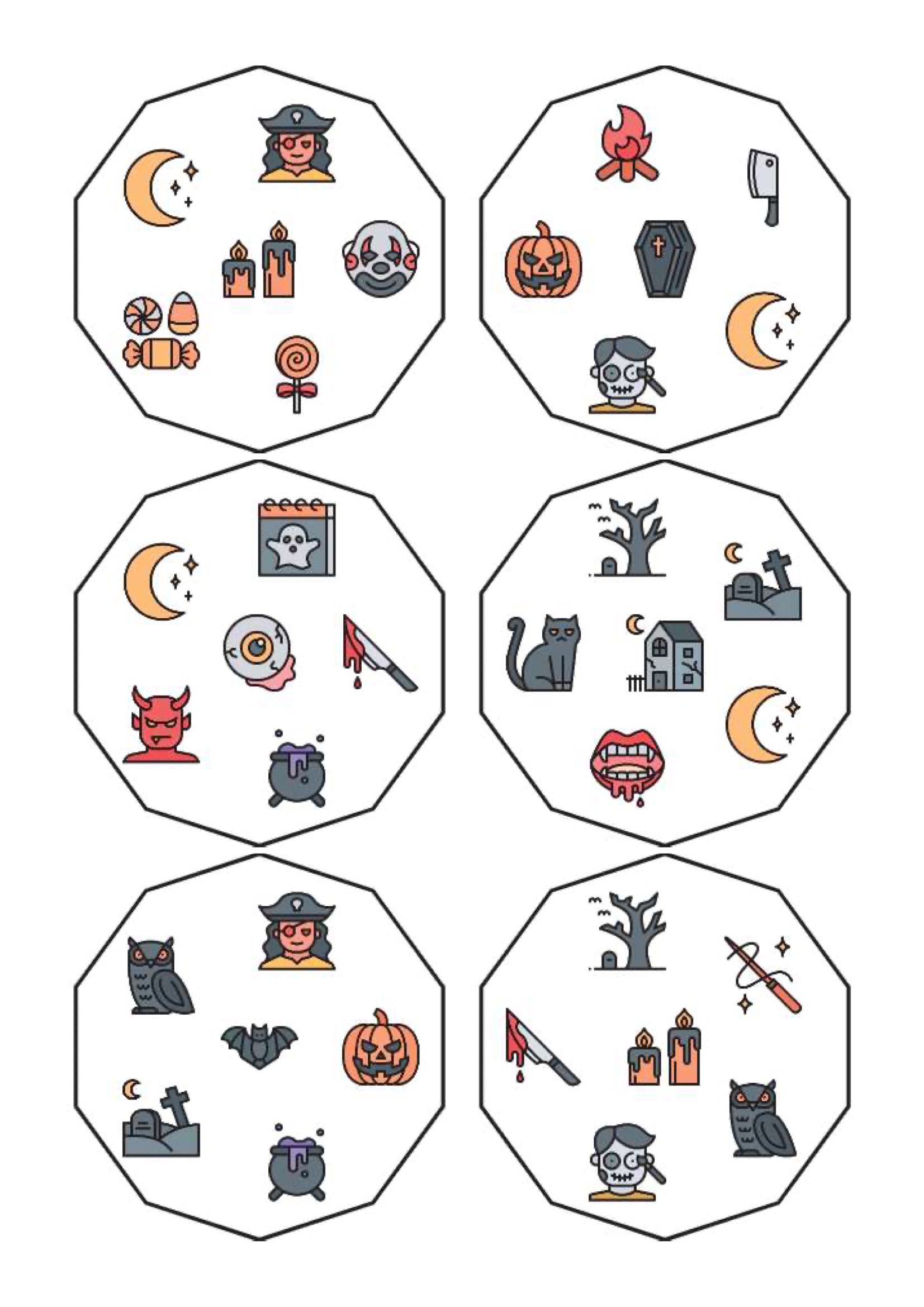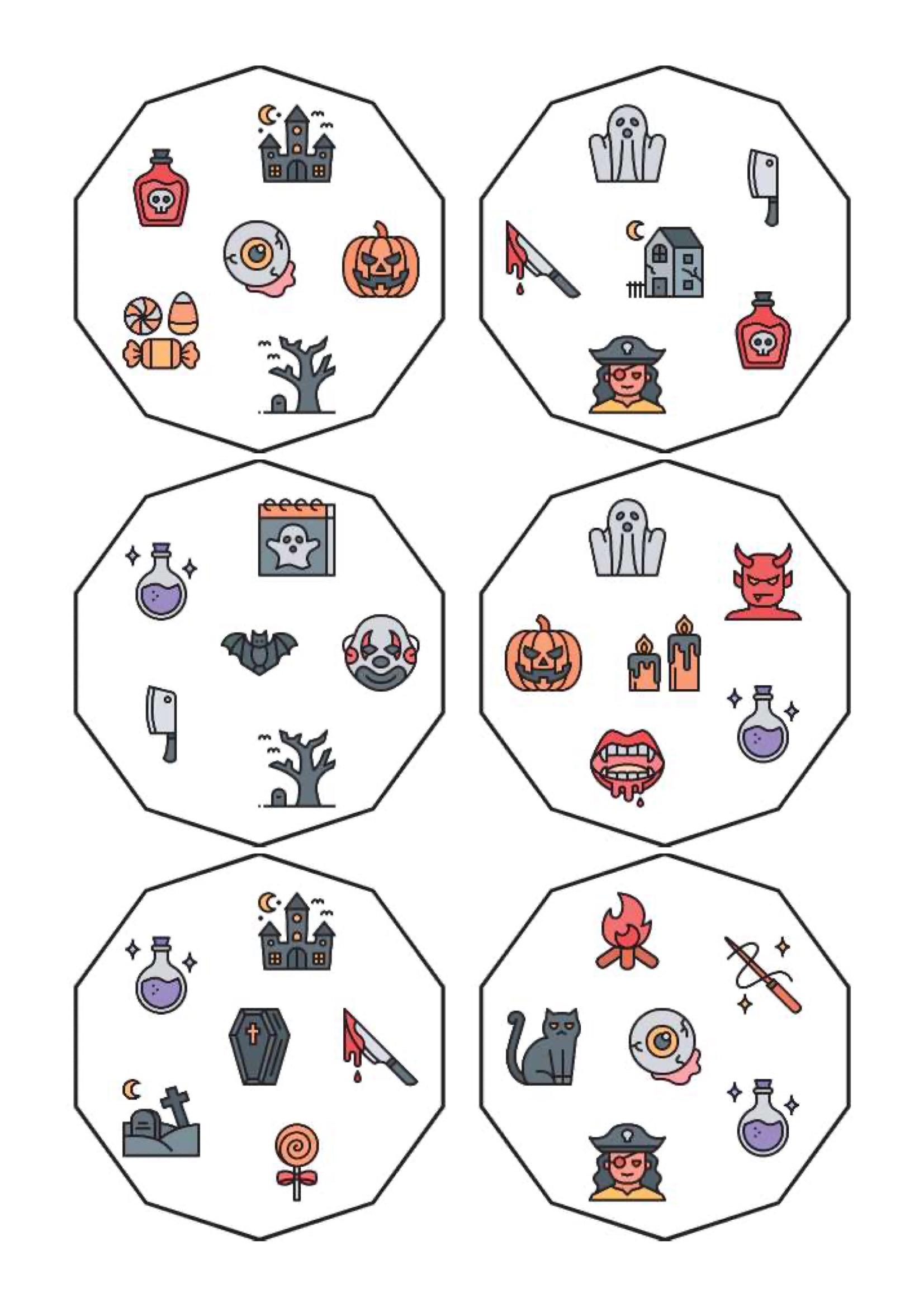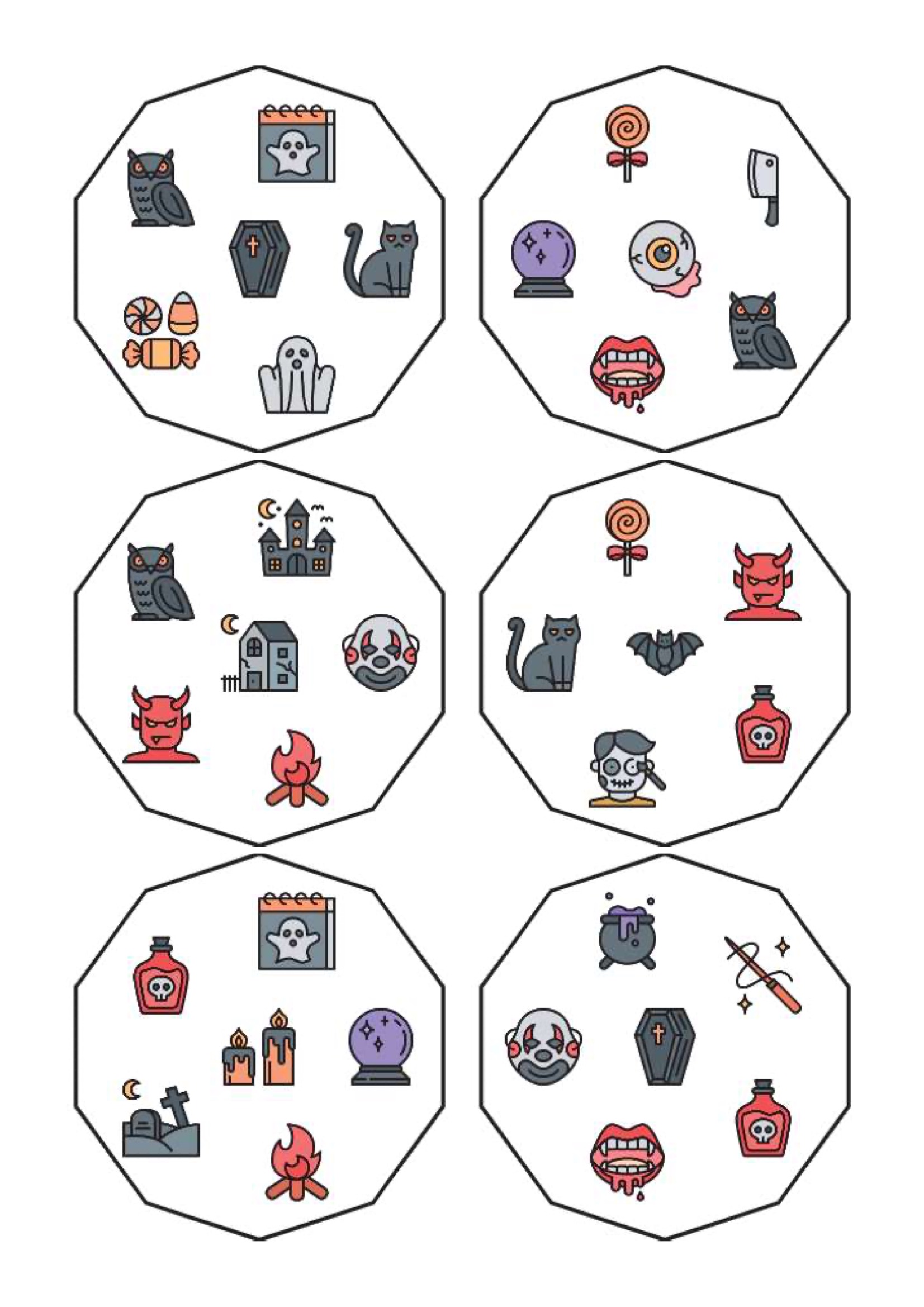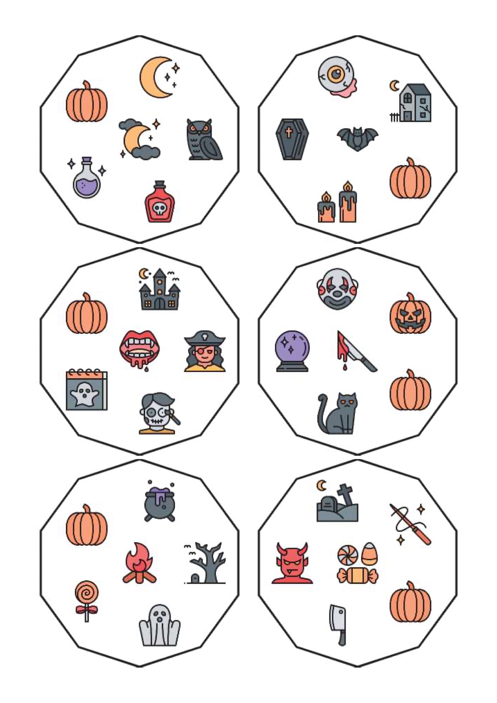 Dominó ilustrado de Halloween para trabajar la memoria visual y la asociación.