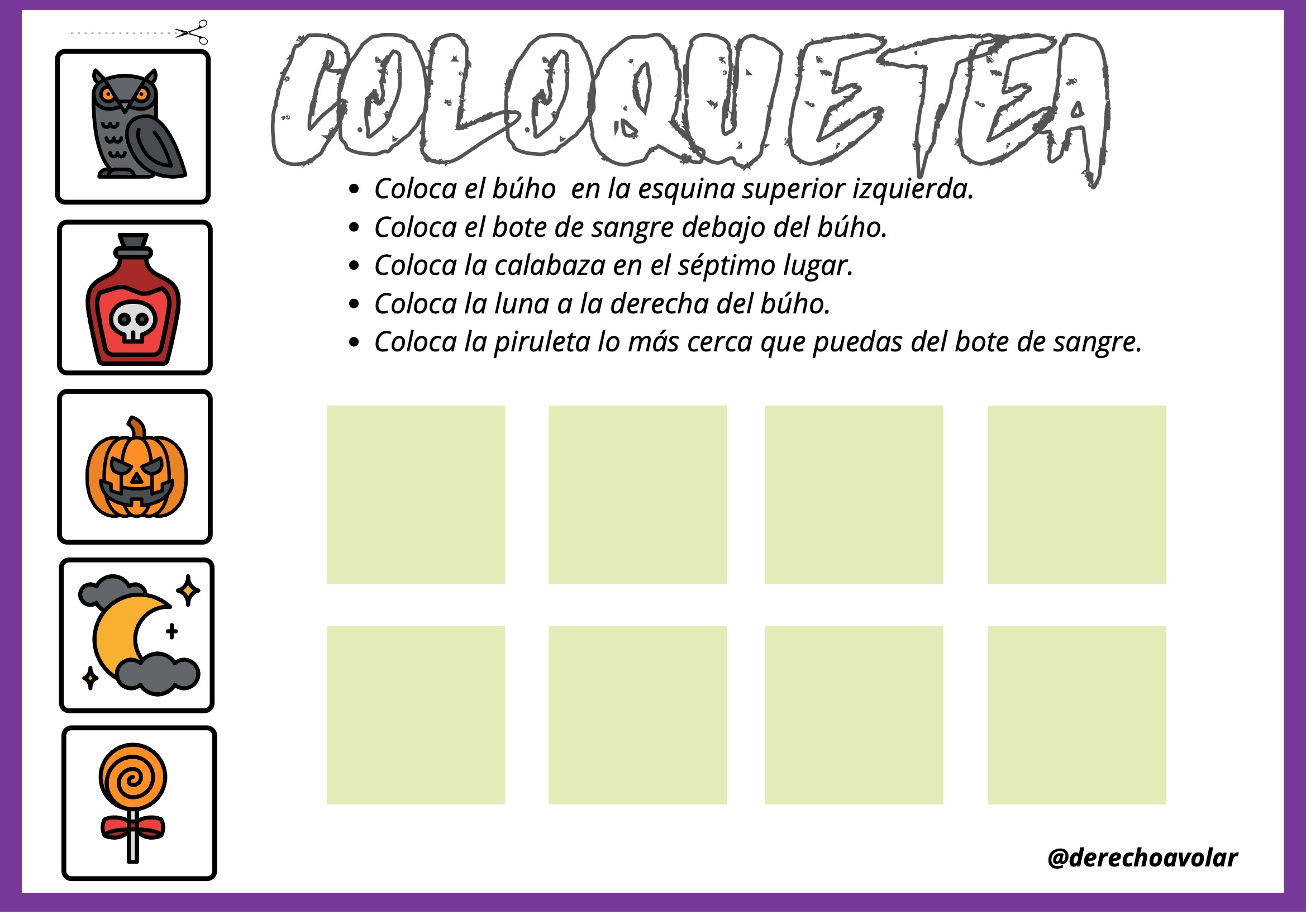 Propuestas de escritura creativa y juegos de instrucciones tipo “Coloca-tea”.