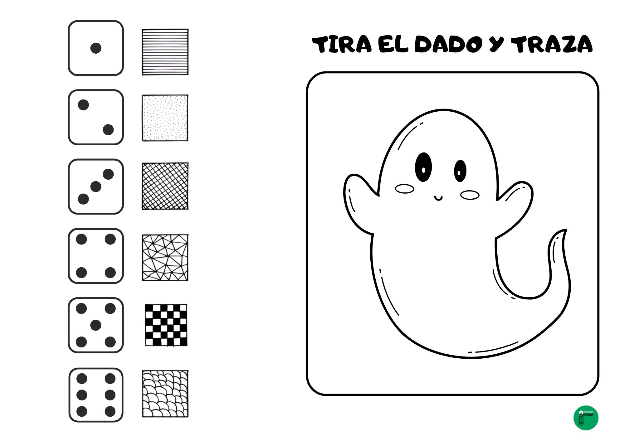 - Lanza el dado y dibuja imágenes de Halloween con grafismo creativo