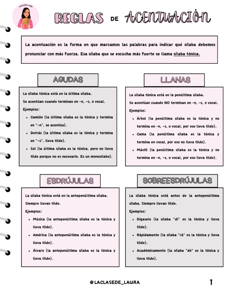 Explicaciones sencillas y visuales sobre las reglas de acentuación.
