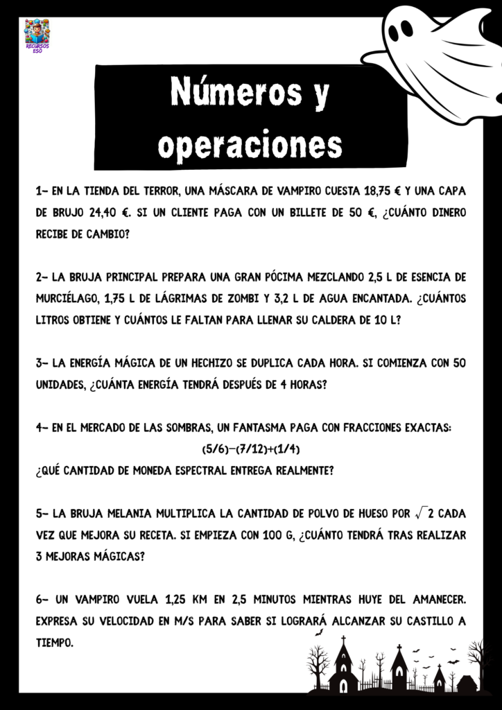 Con la llegada de la semana de Halloween, es el momento ideal para dar un giro divertido a nuestra clase de matemáticas. Os traigo una serie de recursos con problemas ambientados en esta fiesta para los distintos cursos de la ESO, que permiten que el alumnado repase contenidos clave con un toque motivador y temático.