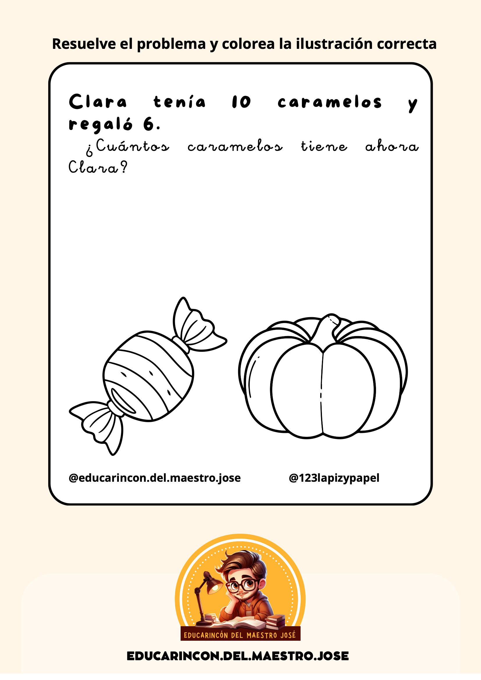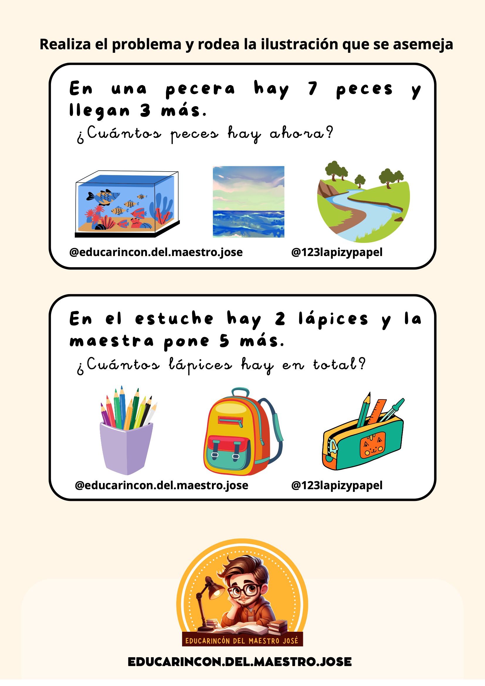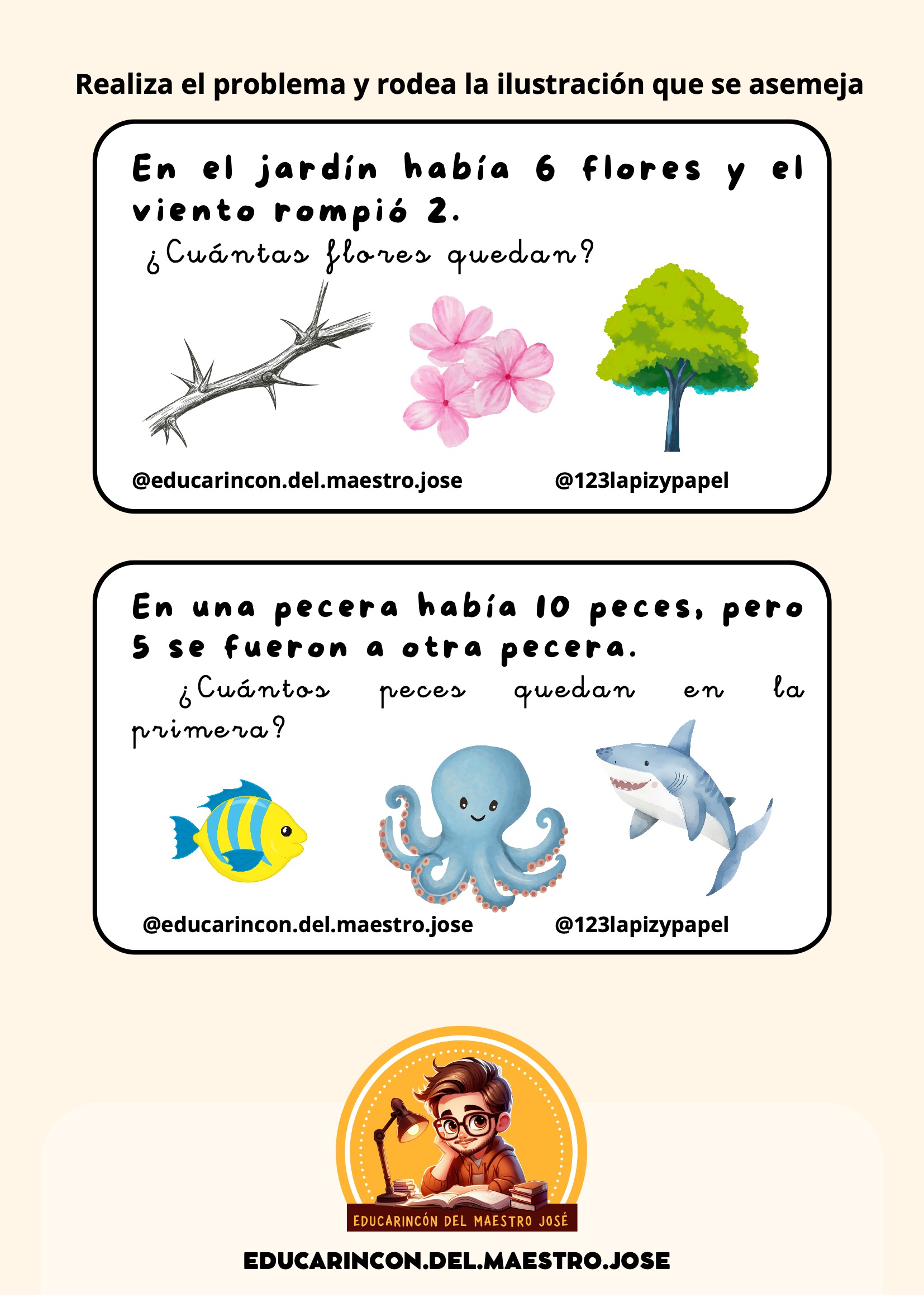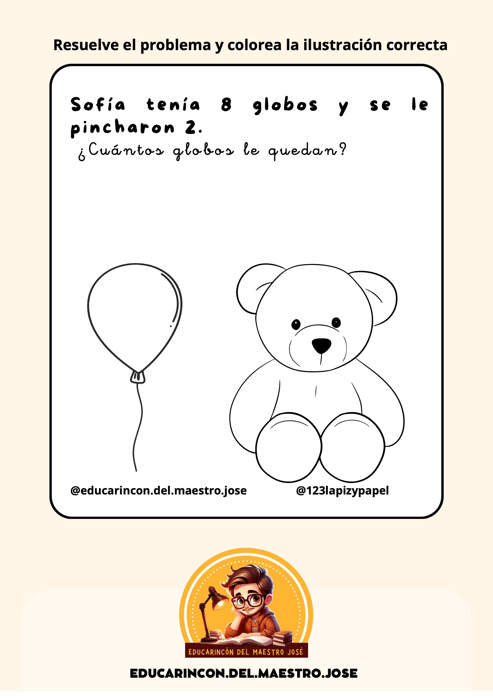 ➕➖5 problemas (suma y resta) donde deben de colorear la ilustración correcta