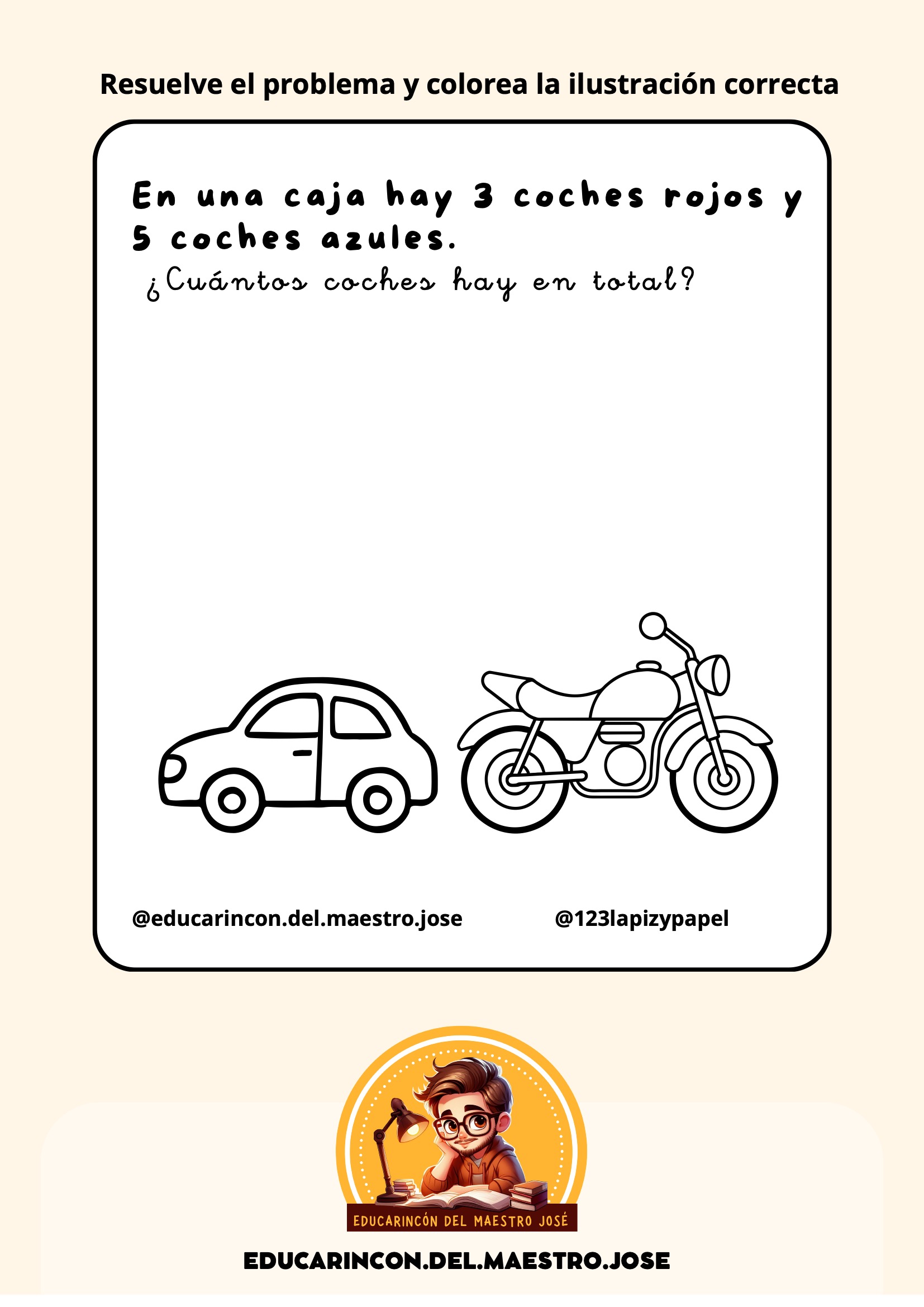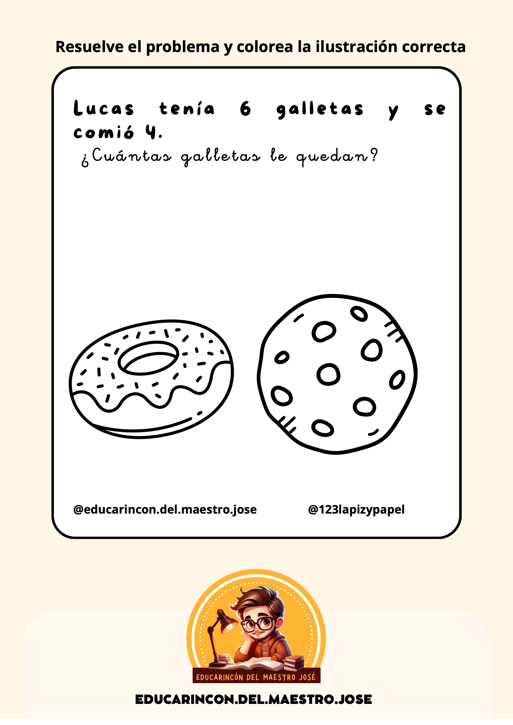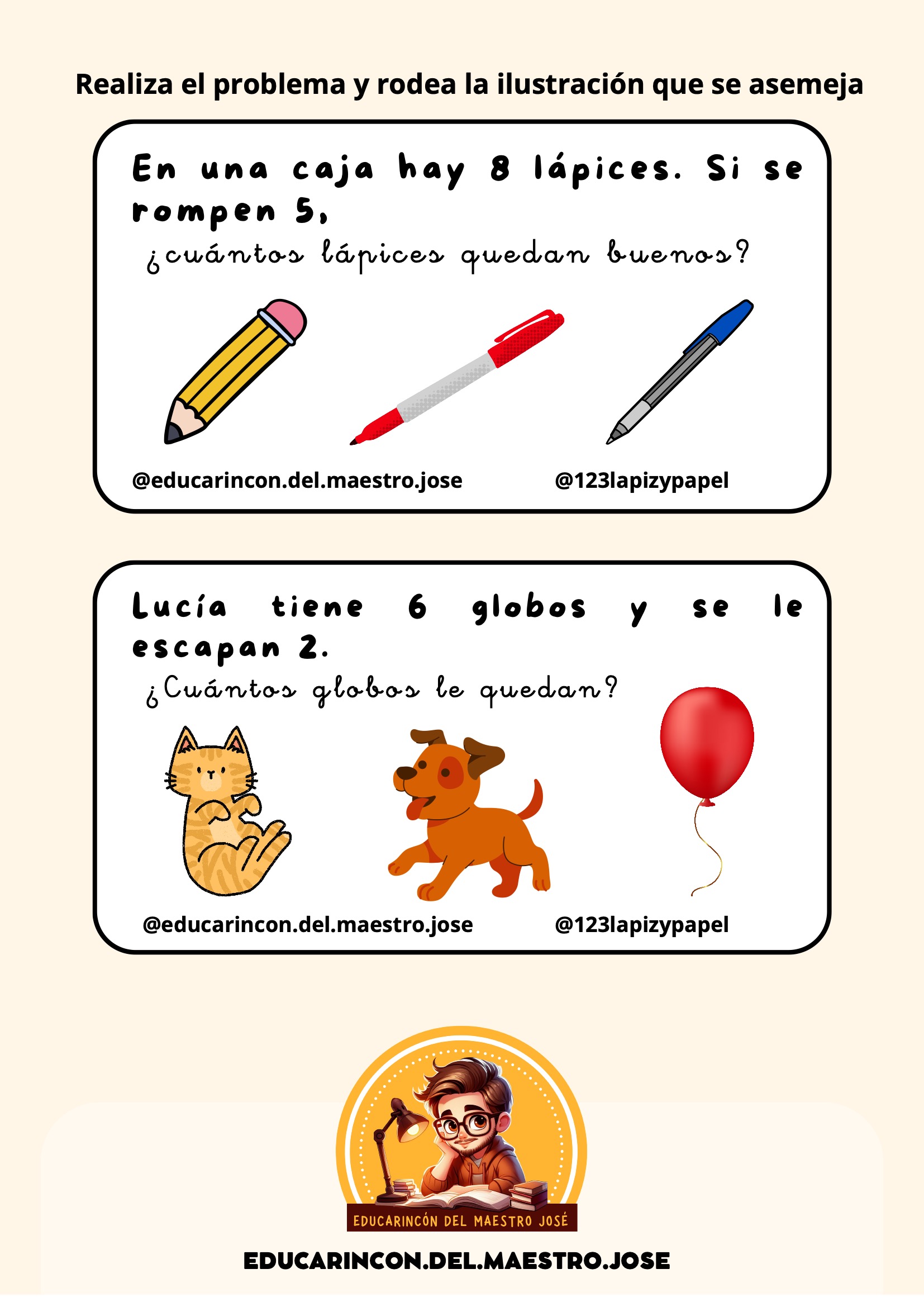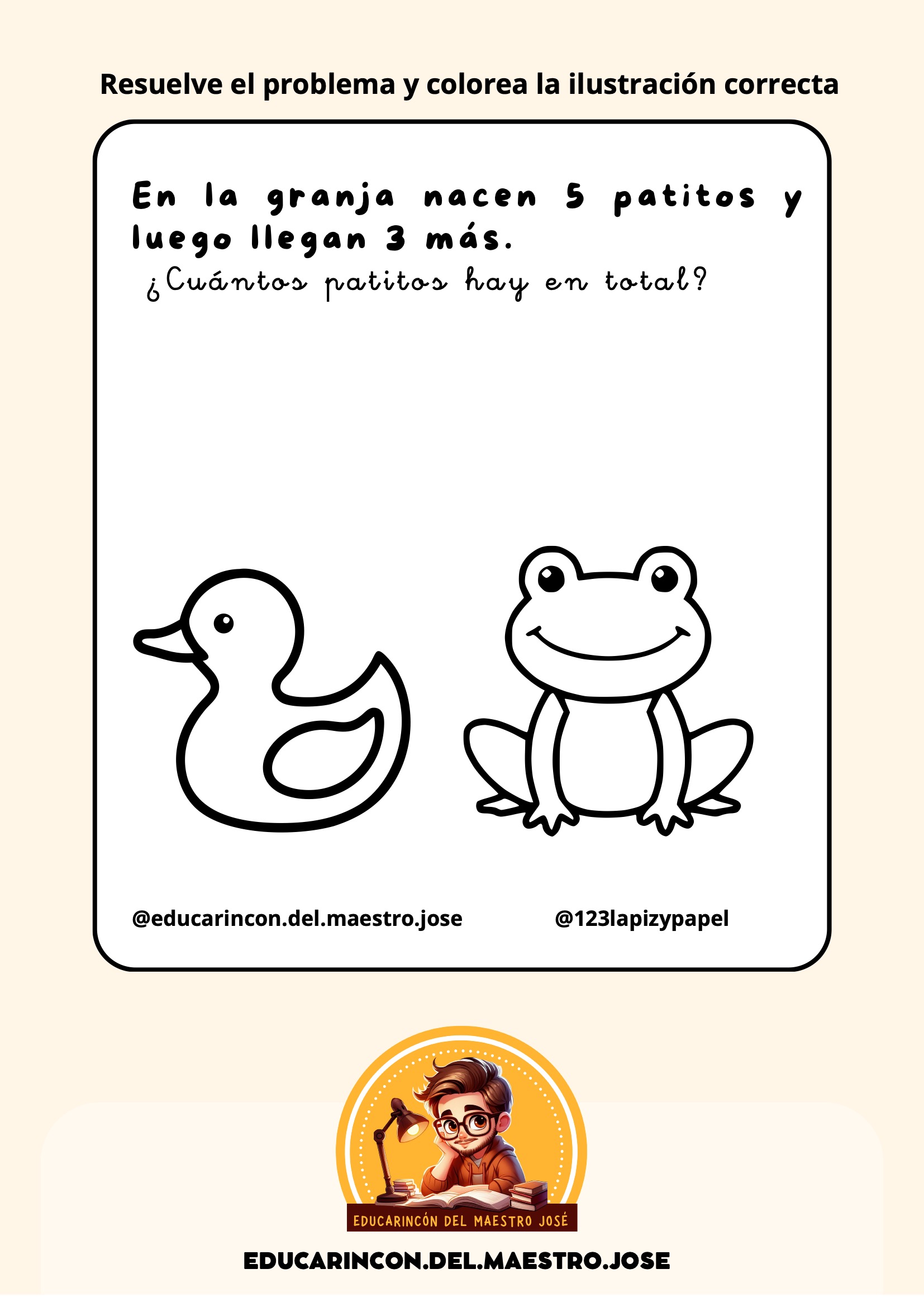 ➕➖5 problemas (suma y resta) donde deben de colorear la ilustración correcta