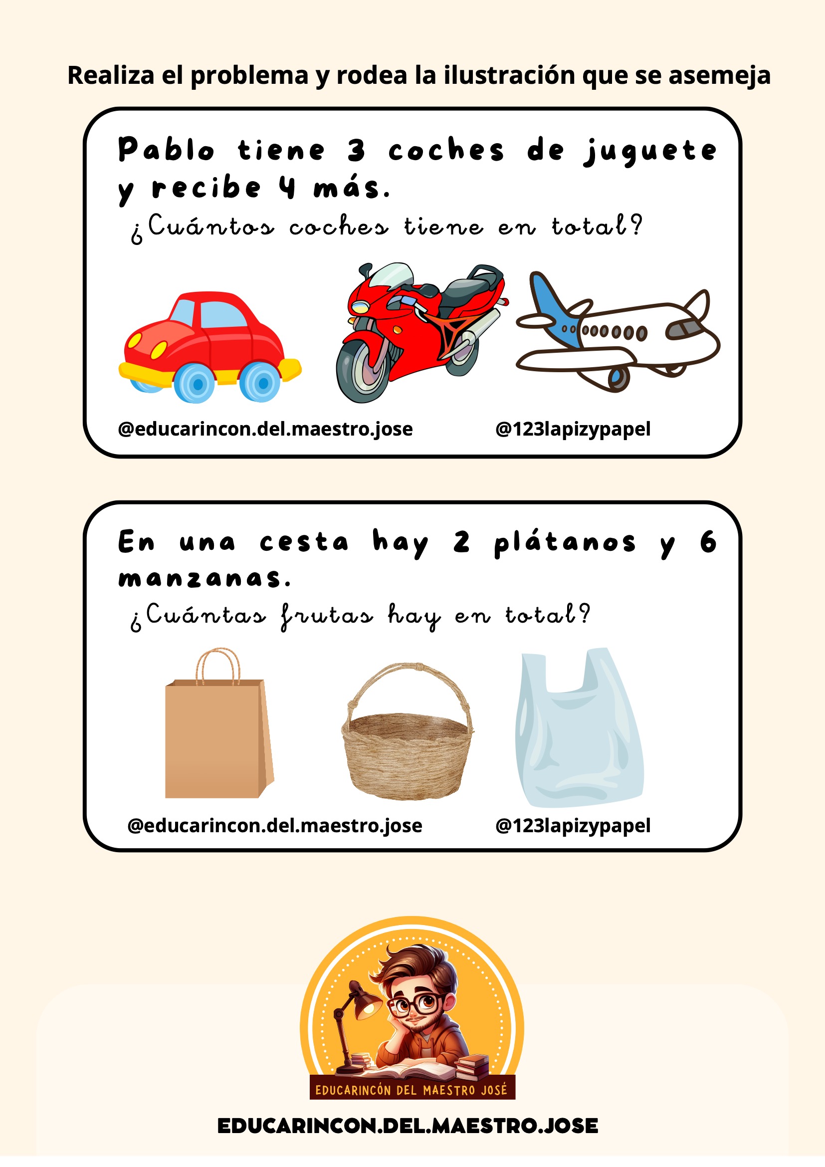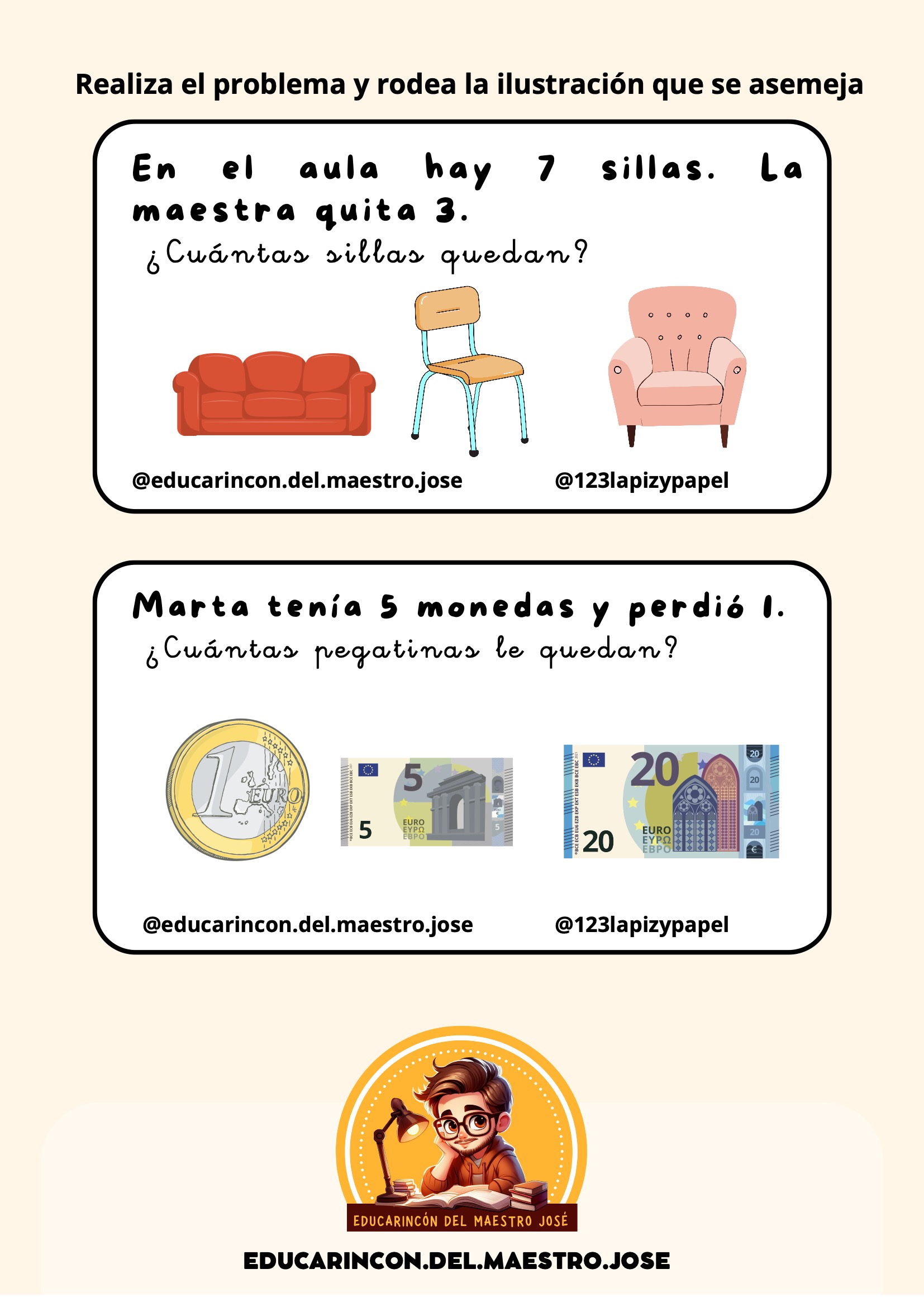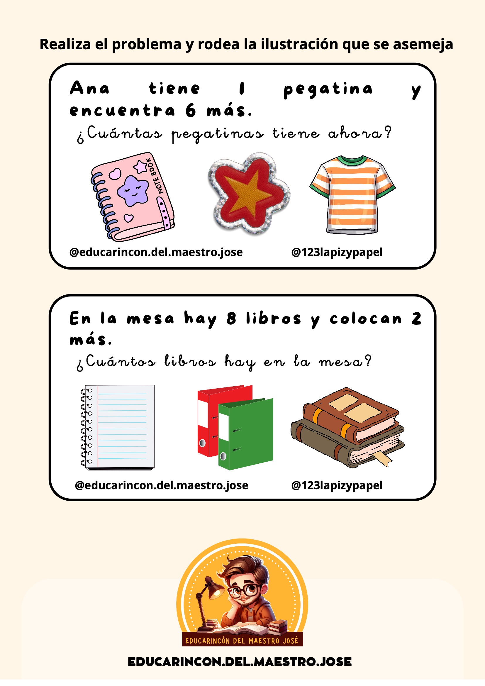 ➕➖5 problemas (suma y resta) donde ilustre el problema