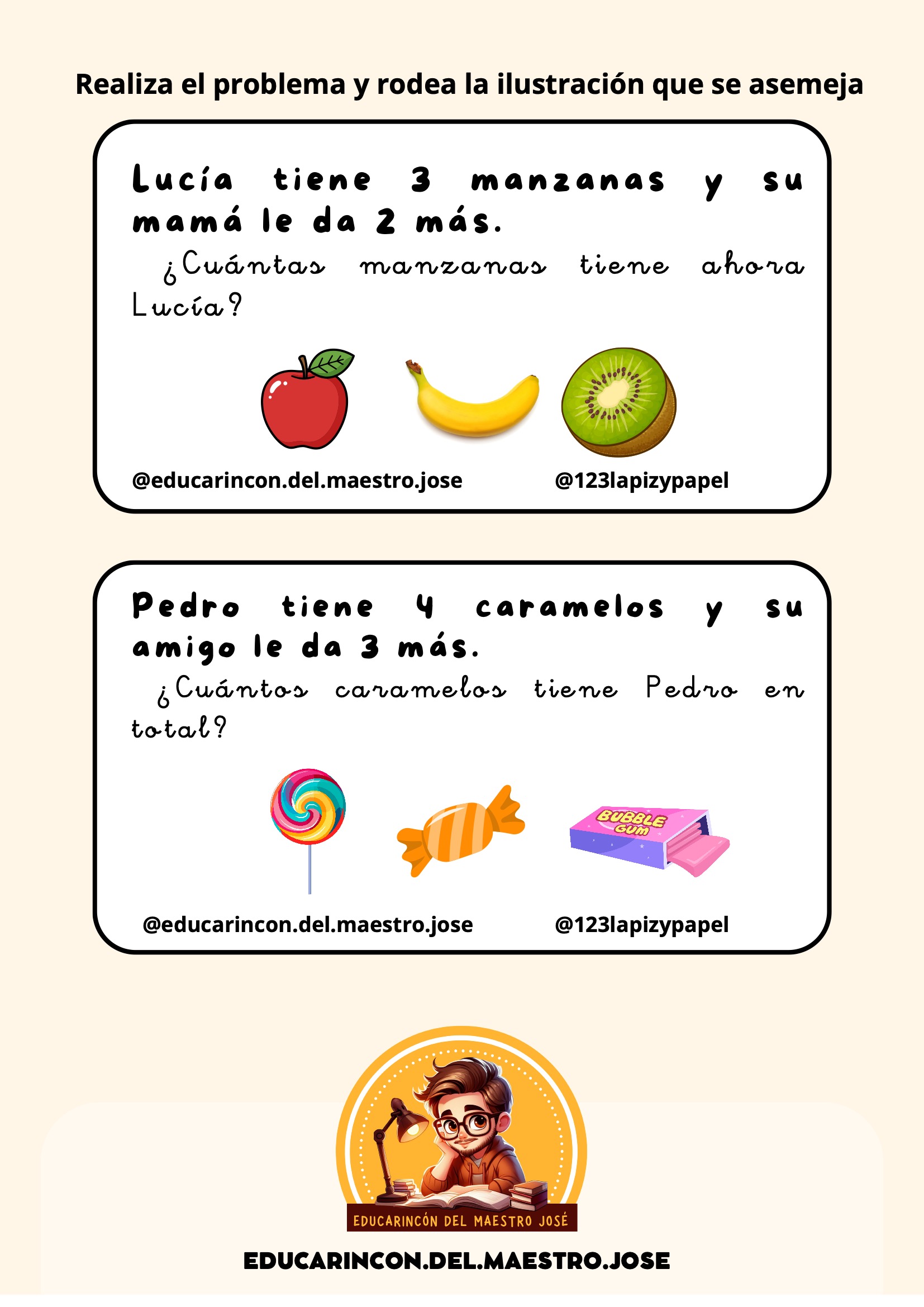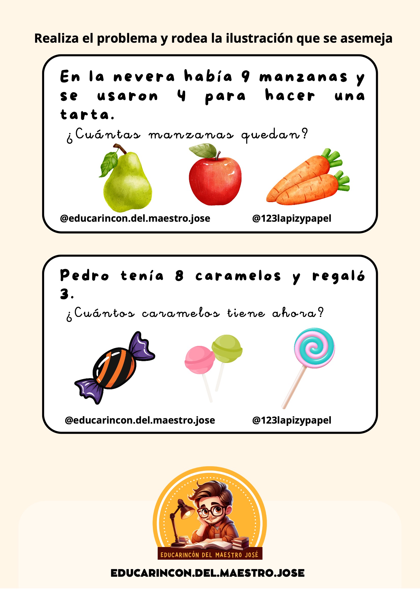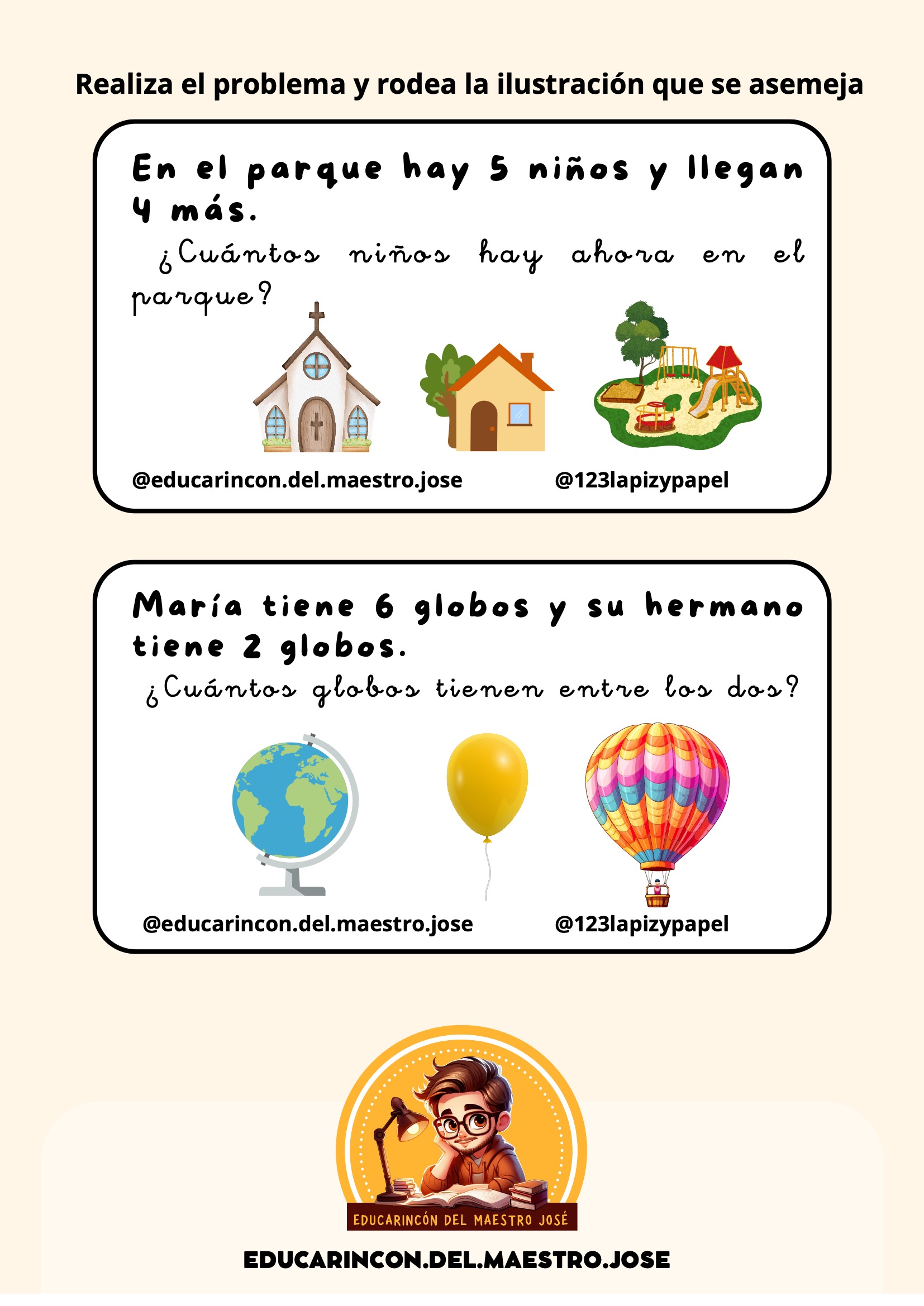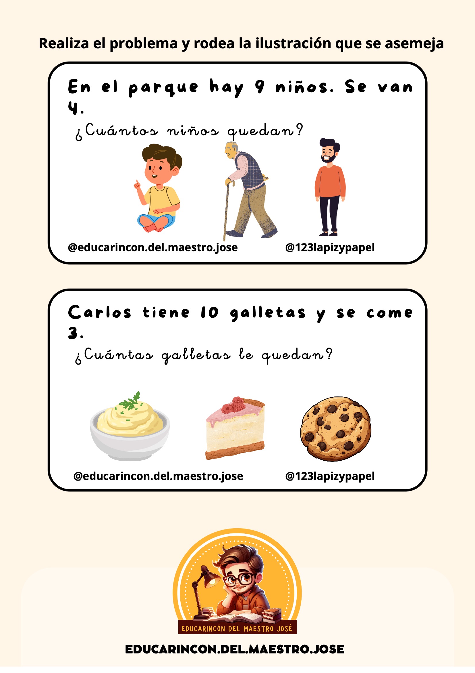 ➕➖5 problemas (suma y resta) donde ilustre el problema
