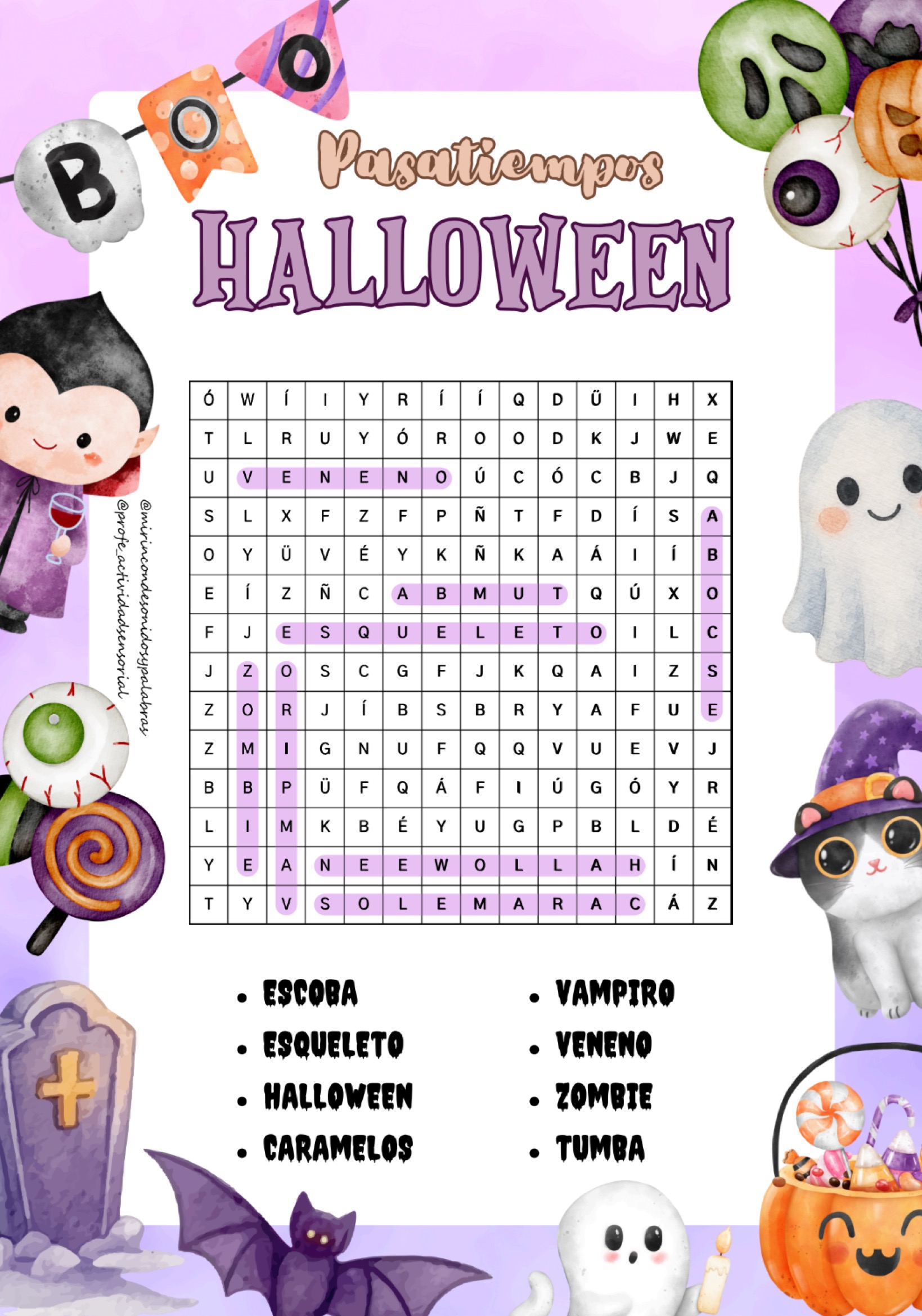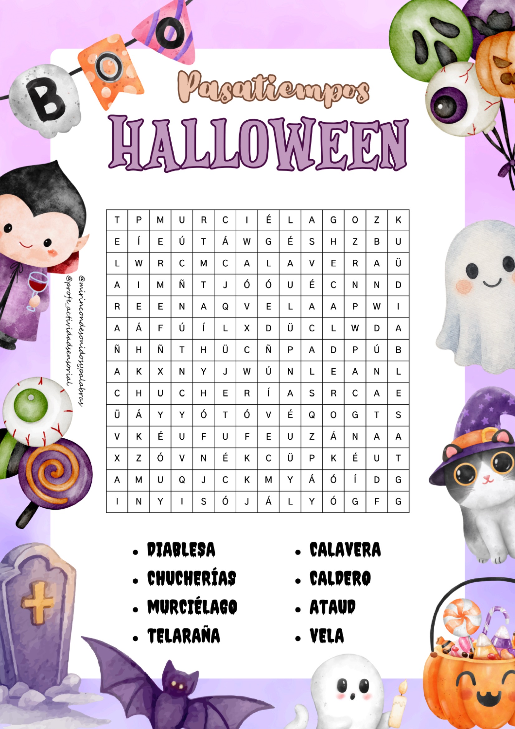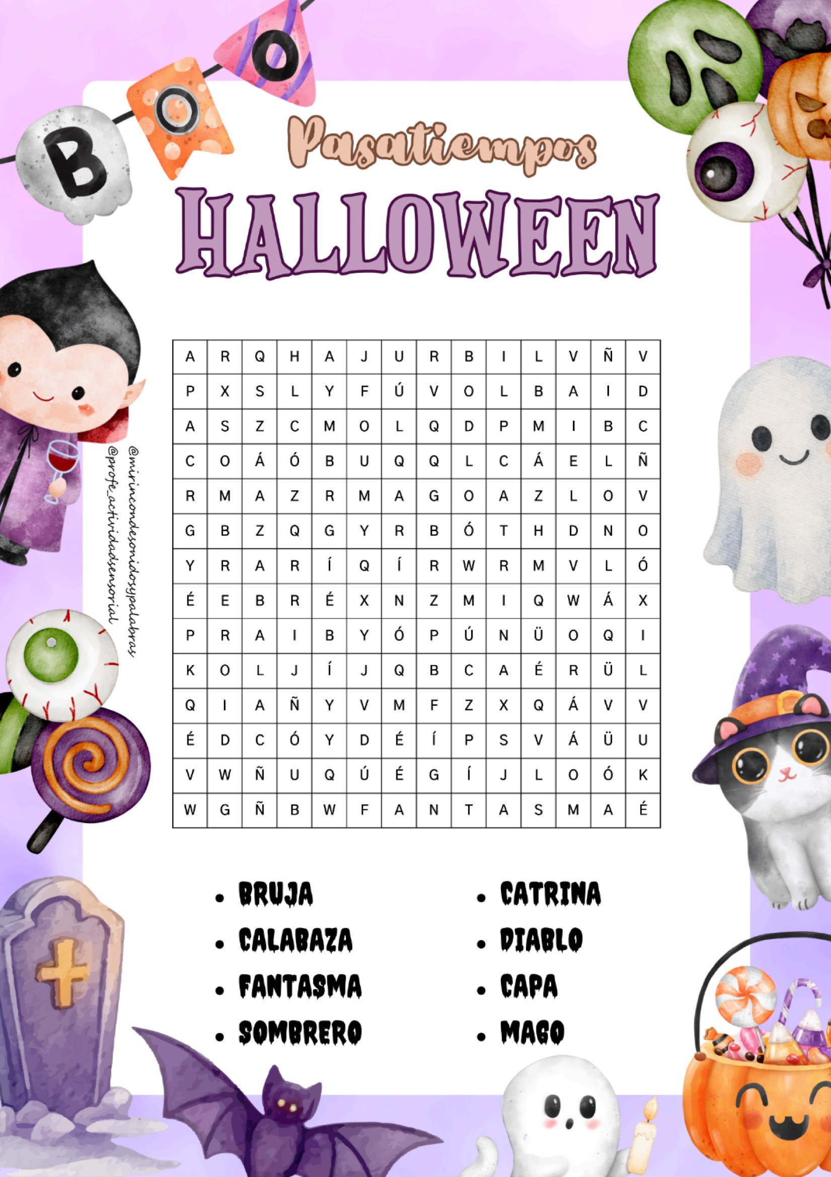 ¡Halloween llega al aula! Con este divertido pack de pasatiempos de Halloween, los alumnos podrán repasar vocabulario, desarrollar la atención y potenciar su comprensión lectora de una manera lúdica y temática. Ideal para Primaria e Infantil, este recurso transforma el aprendizaje en un juego lleno de calabazas, fantasmas y magia.