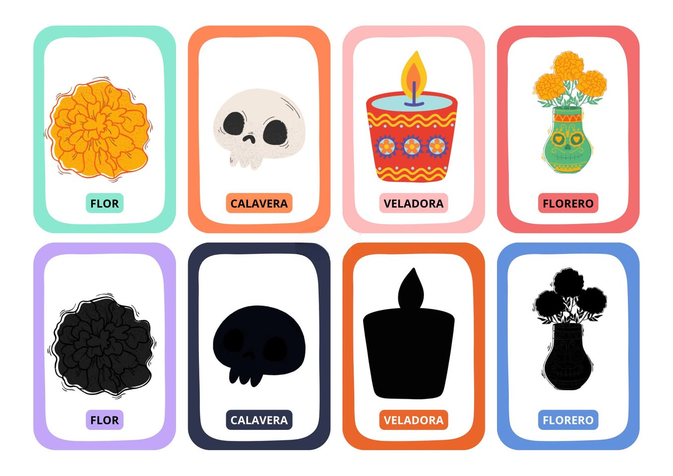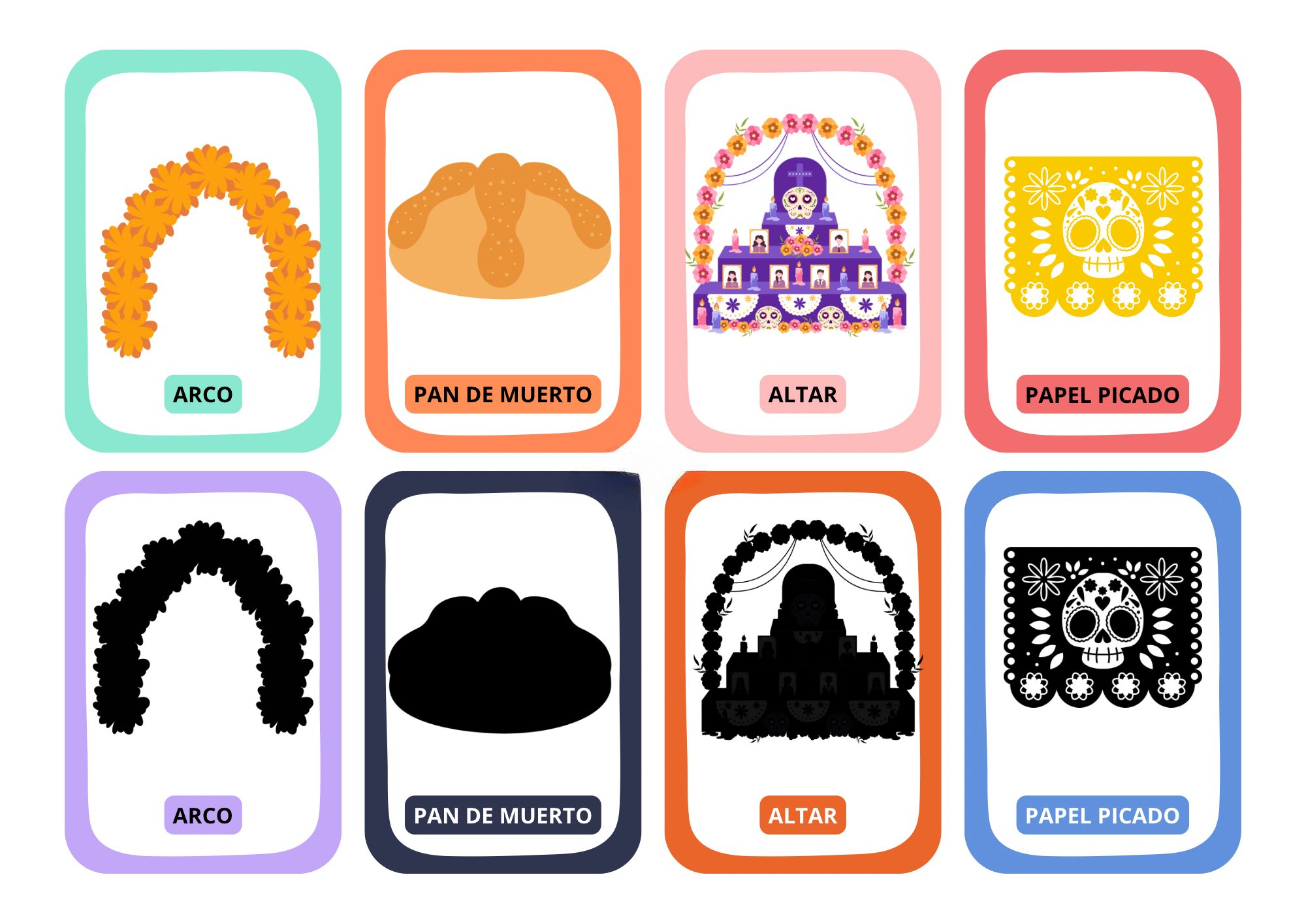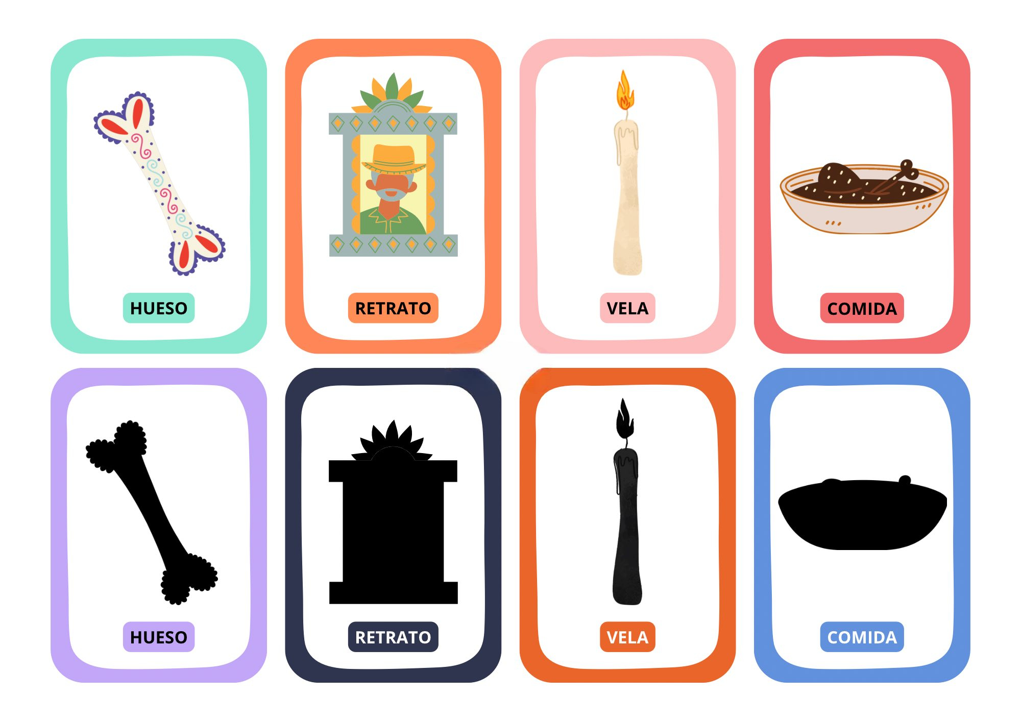 elebra el Día de los Muertos en el aula con este divertido juego de tarjetas memory de siluetas. Un recurso ideal para trabajar la memoria visual, la atención y el vocabulario temático relacionado con esta tradicional festividad mexicana, de una forma lúdica y educativa.