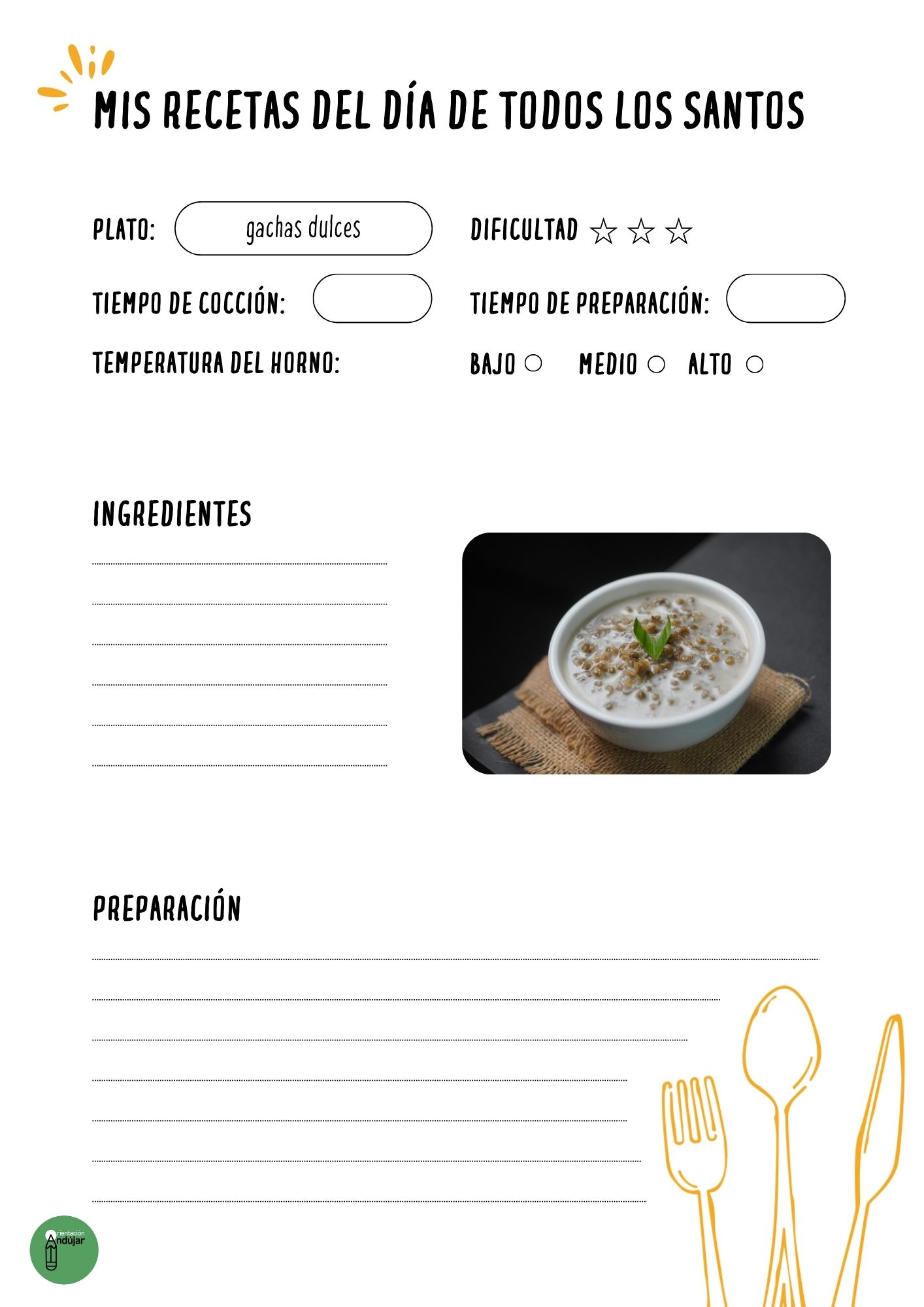 La propuesta consiste en que los estudiantes descubran los dulces típicos del Día de Todos los Santos y, para profundizar en el aprendizaje, se les proporcionan fichas para que escriban la receta de diferentes platos típicos de este día. En estas fichas, los alumnos deberán seguir la estructura característica de una receta.