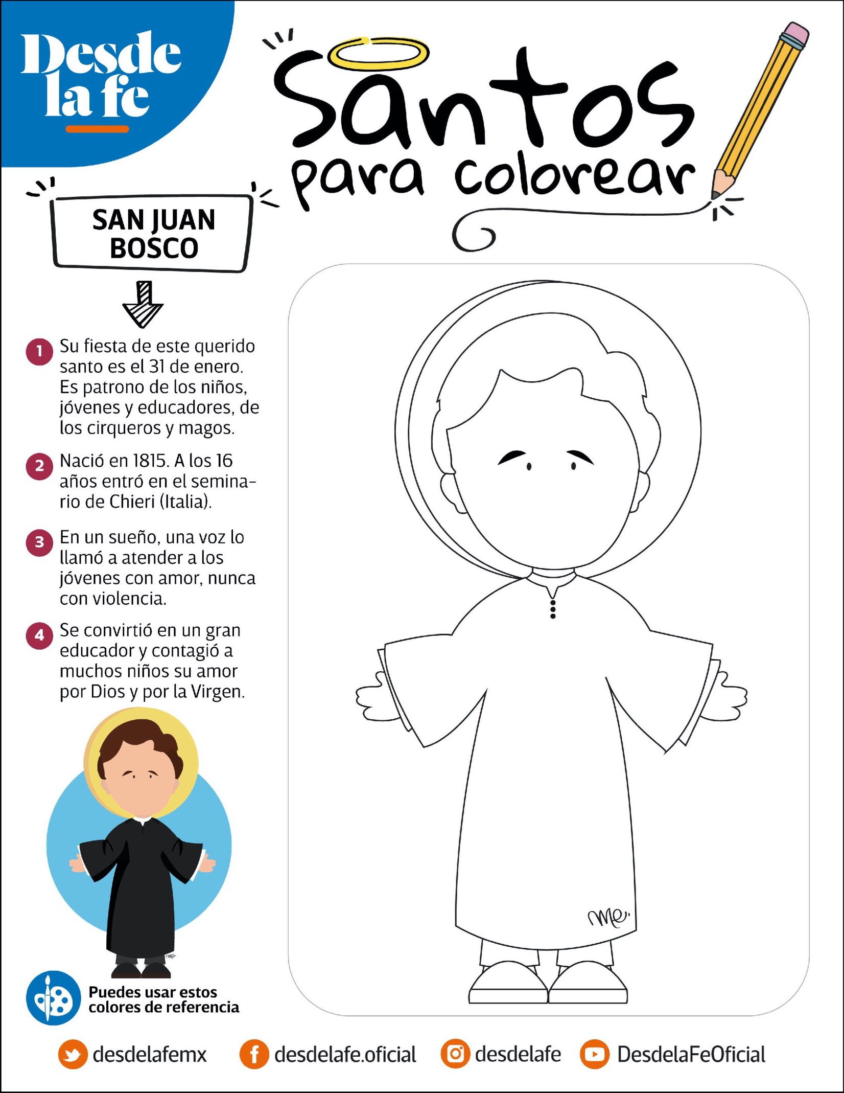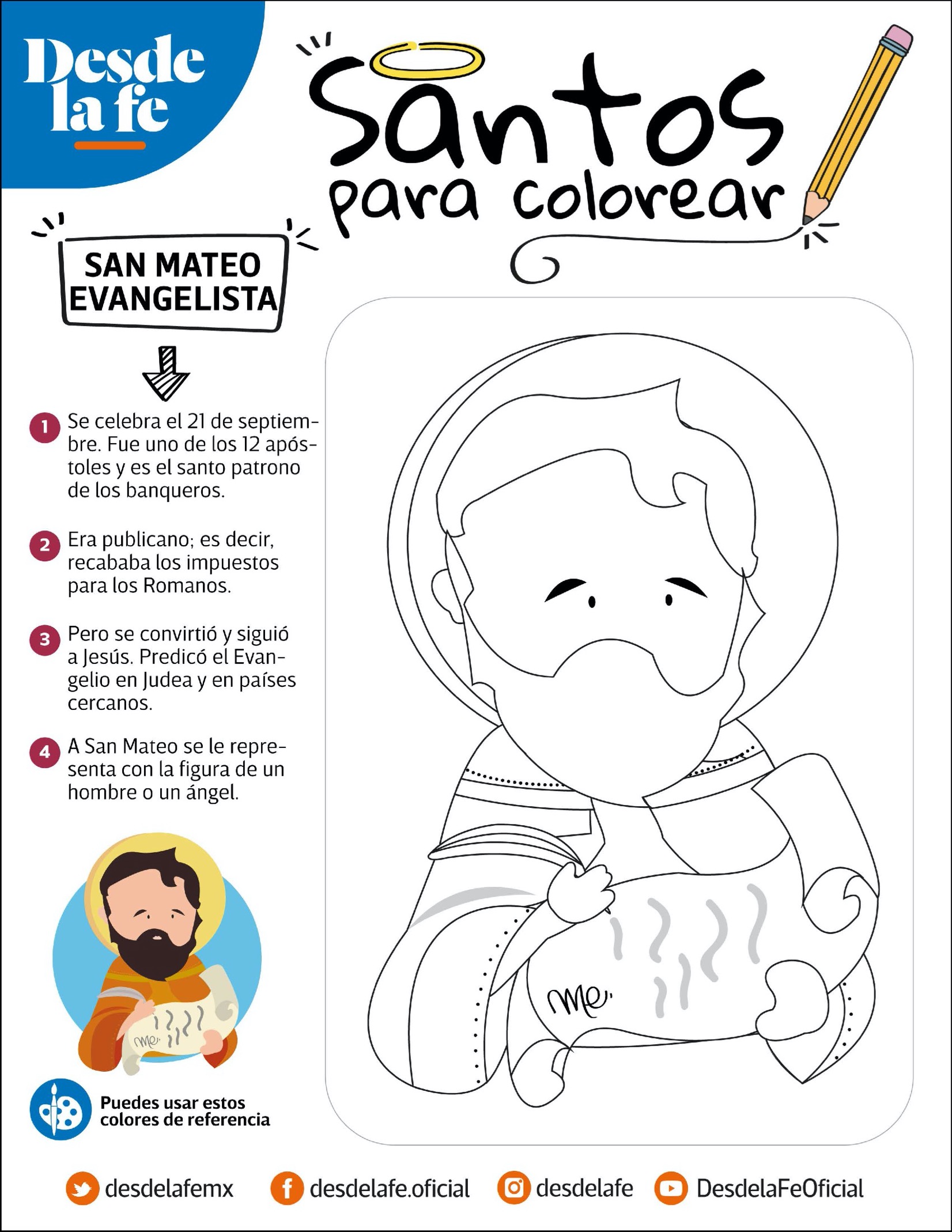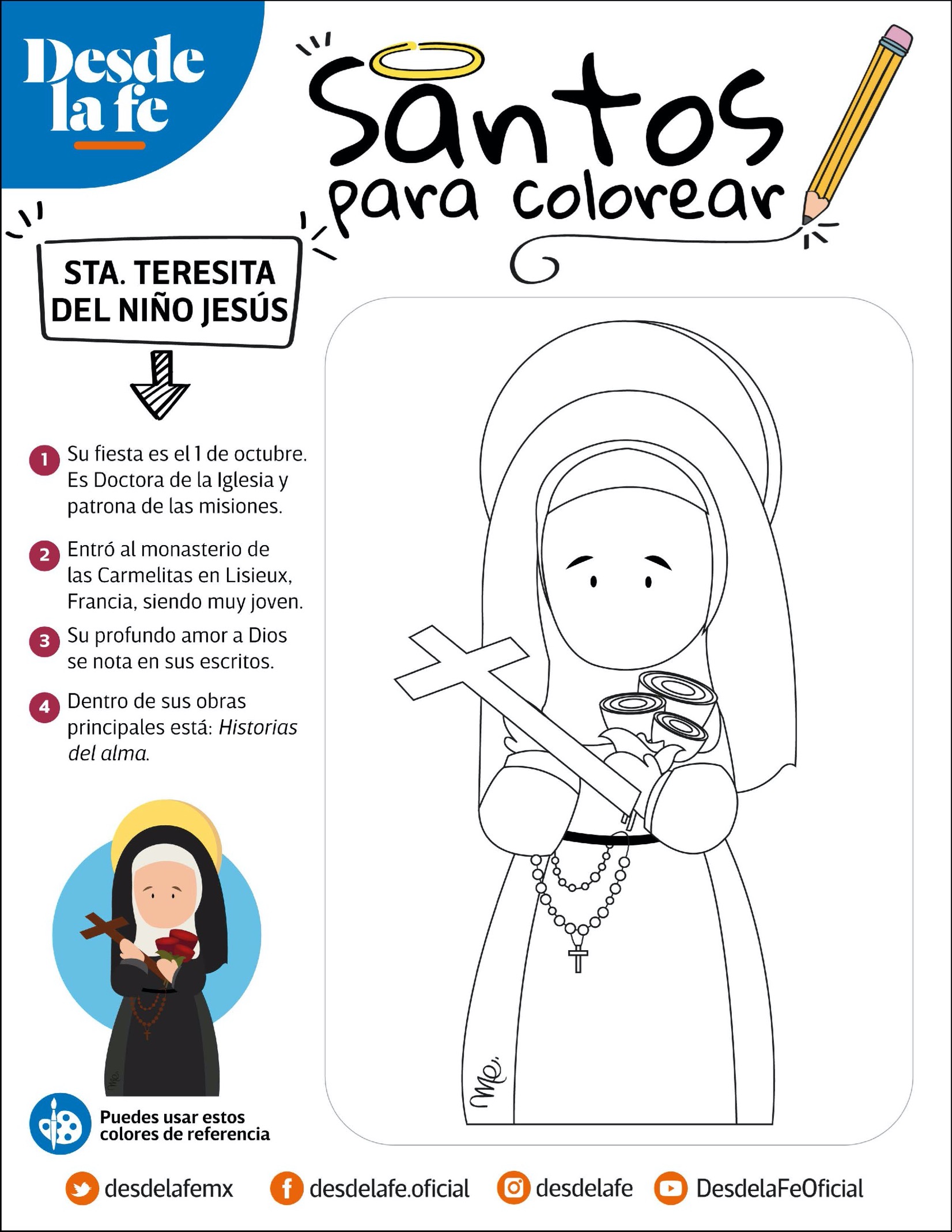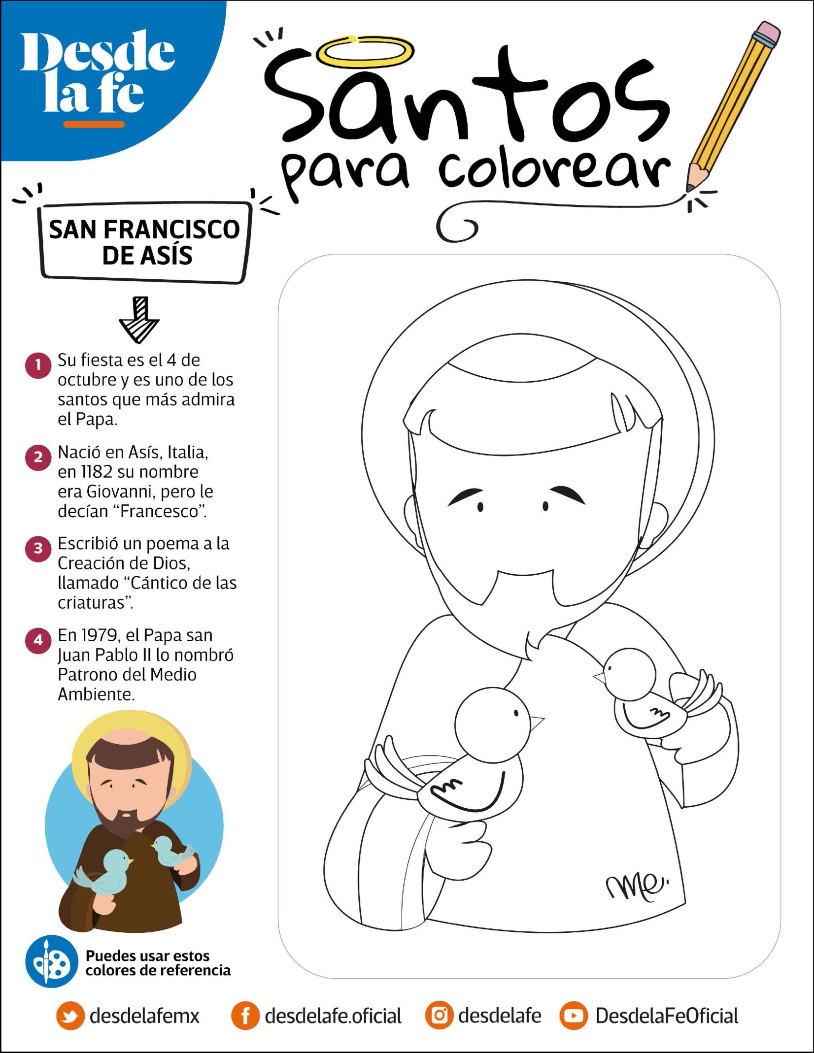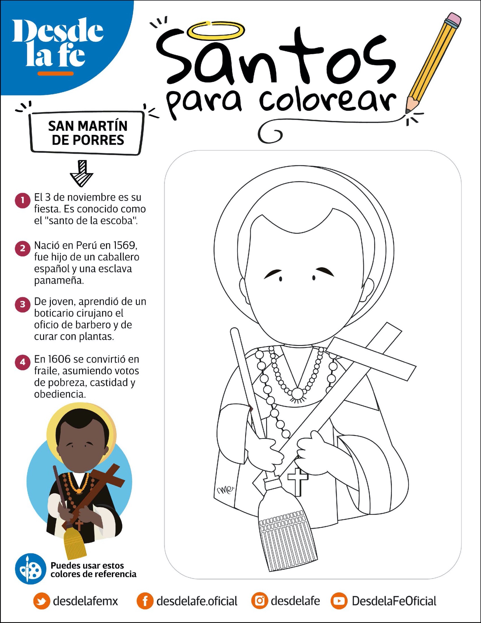 Imprime las fichas y entrégalas a los alumnos para que coloreen mientras leen la información sobre cada santo. Puedes complementar la actividad con una exposición en el aula o un mural colectivo del Día de Todos los Santos, fomentando valores como la fe, la bondad y la solidaridad.