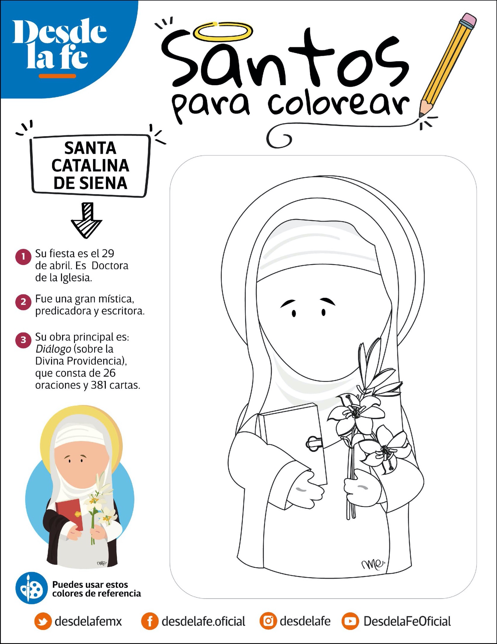 24 fichas imprimibles con santos y santas en versión para colorear.