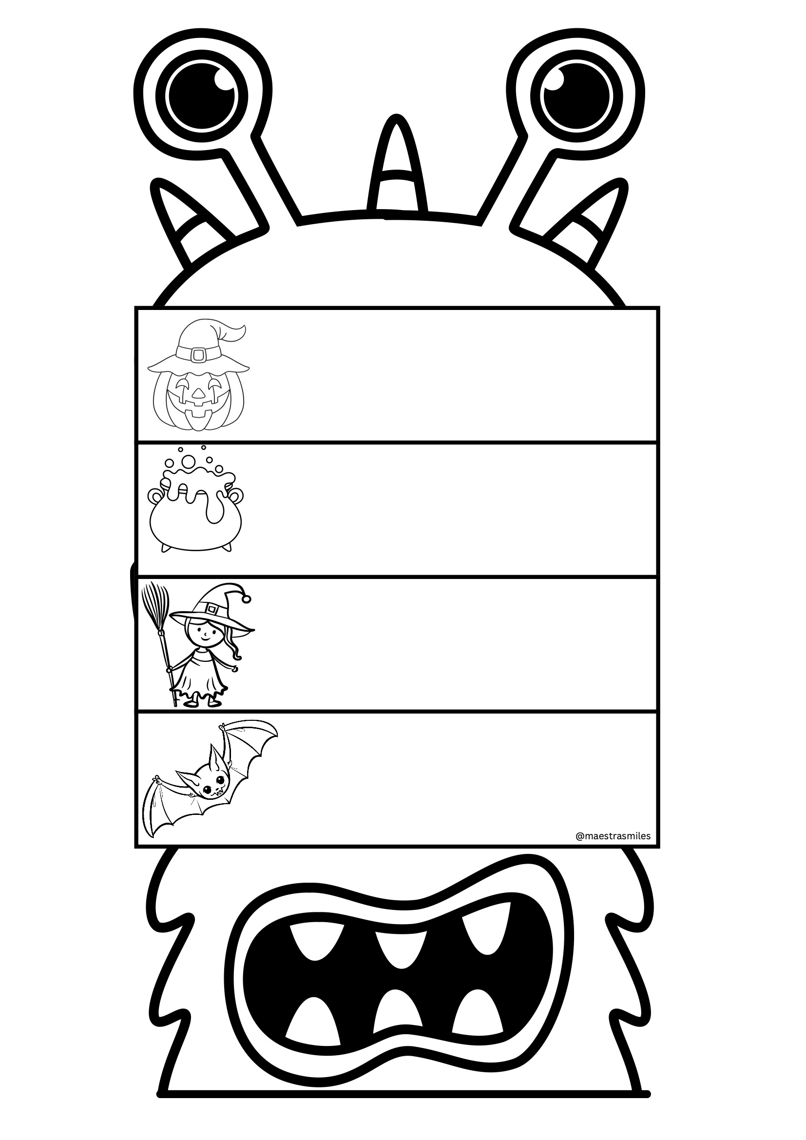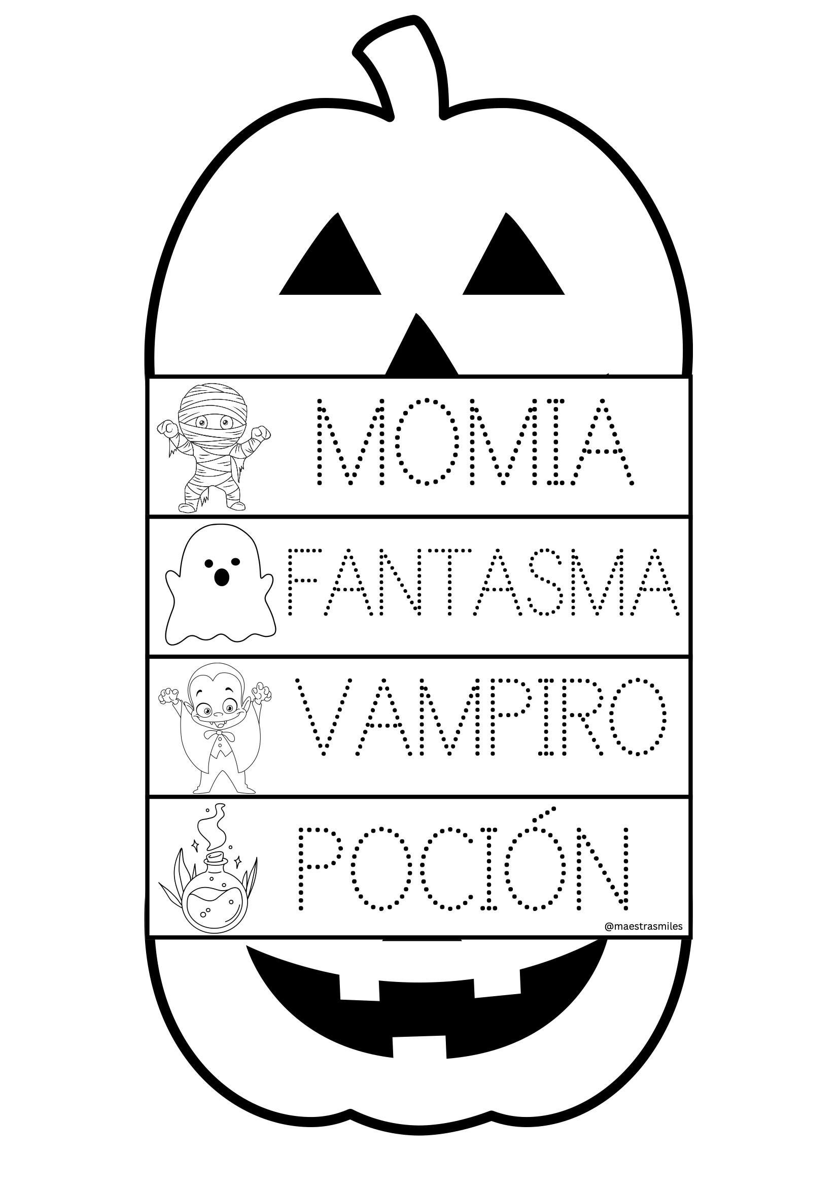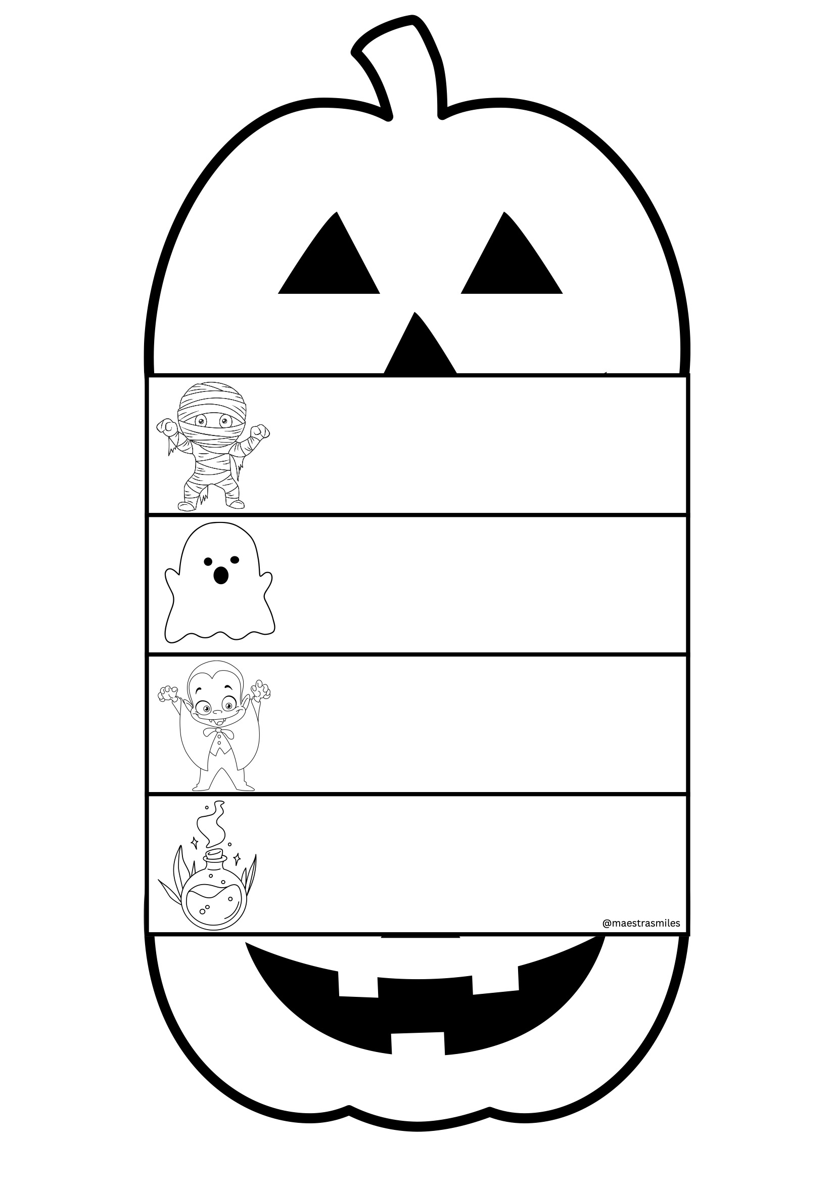 Imprime las páginas que prefieras, recorta las tiras y monta los flipbooks con grapas o anillas. Los alumnos pueden personalizarlos con colores, pegatinas o purpurina, y crear pequeñas animaciones o historias de Halloween. Perfecto para trabajar en grupo o de forma individual en los días previos al 31 de octubre.