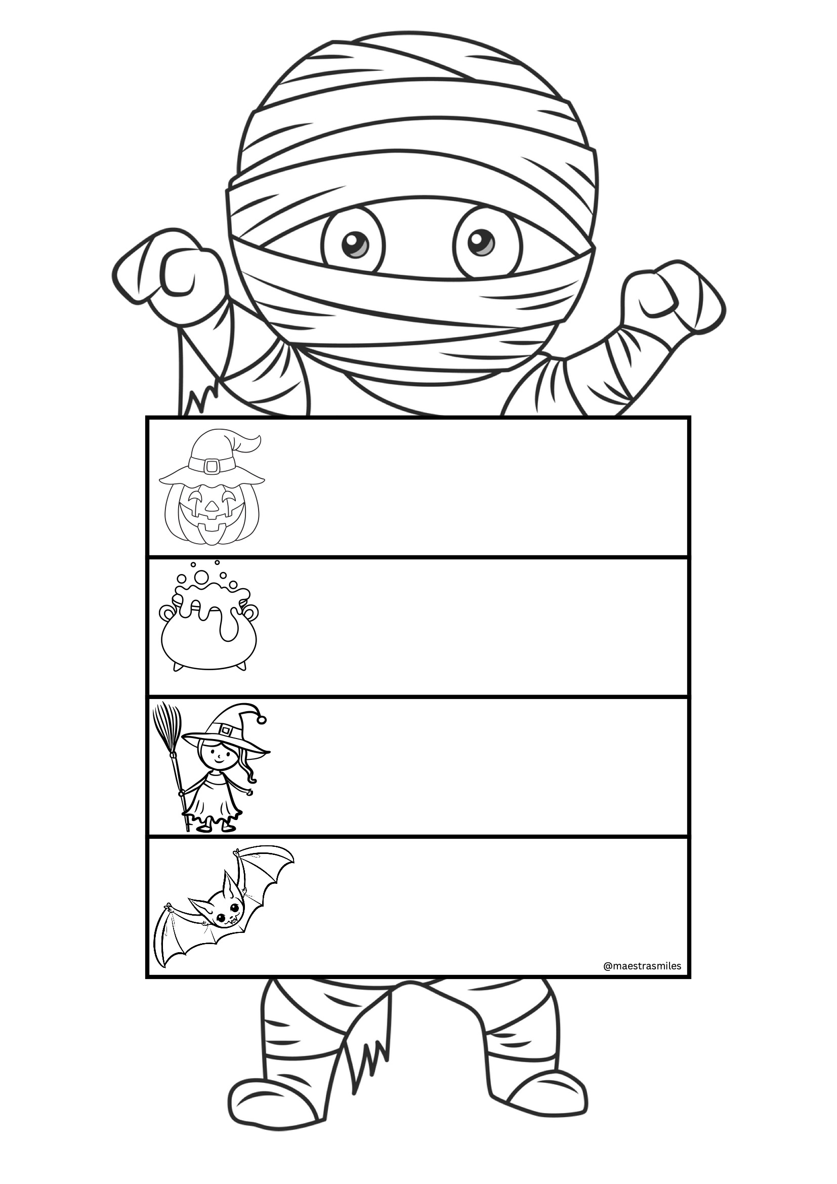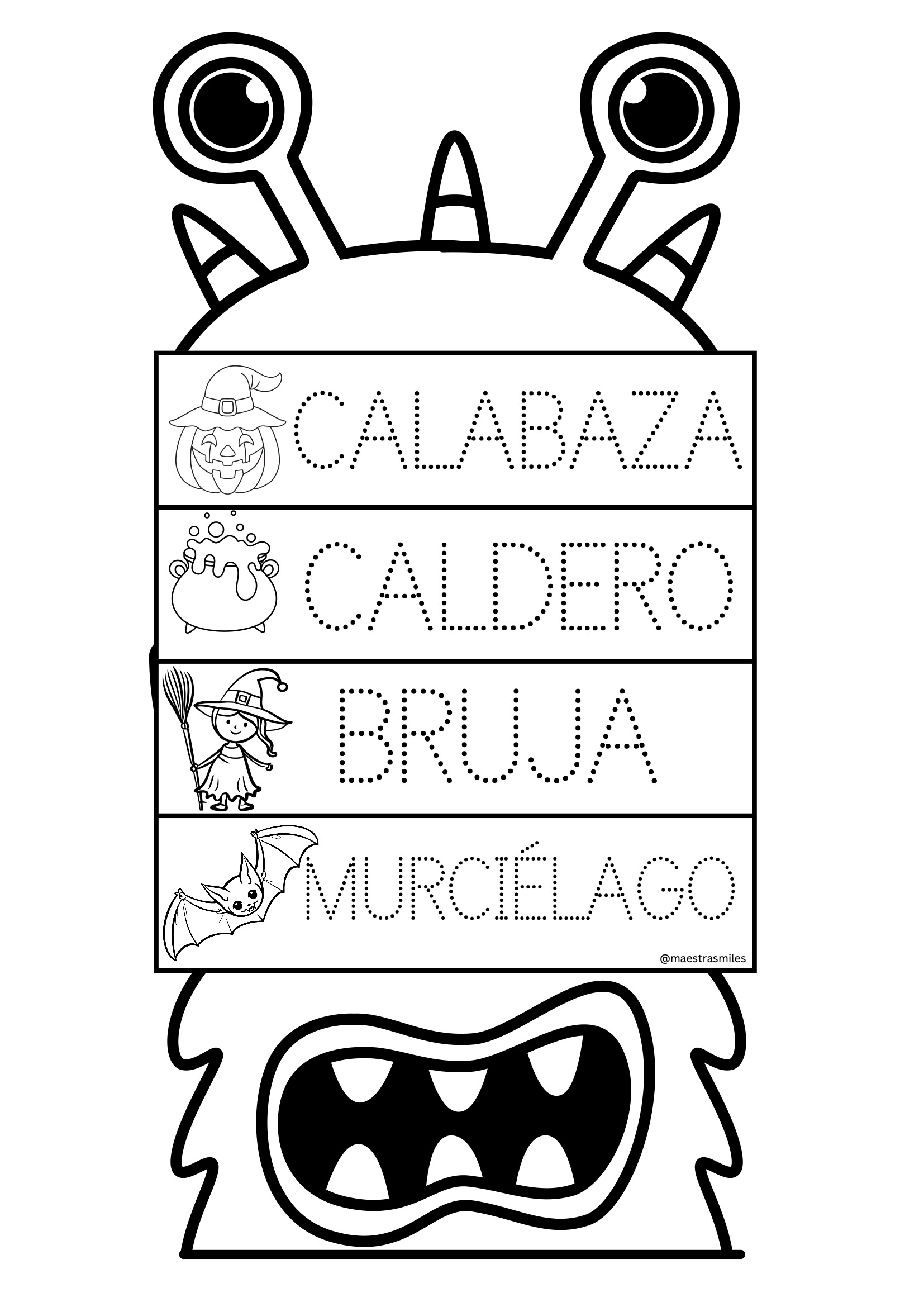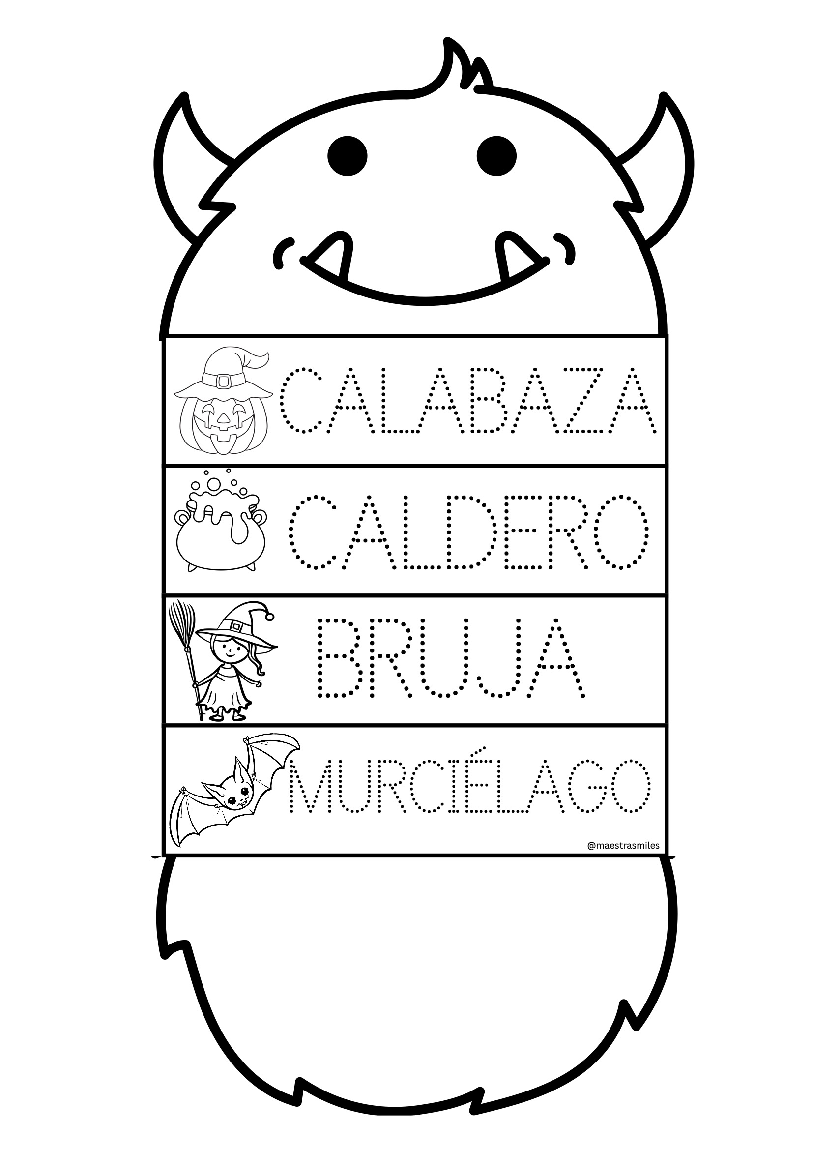 Imprime las páginas que prefieras, recorta las tiras y monta los flipbooks con grapas o anillas. Los alumnos pueden personalizarlos con colores, pegatinas o purpurina, y crear pequeñas animaciones o historias de Halloween. Perfecto para trabajar en grupo o de forma individual en los días previos al 31 de octubre.
