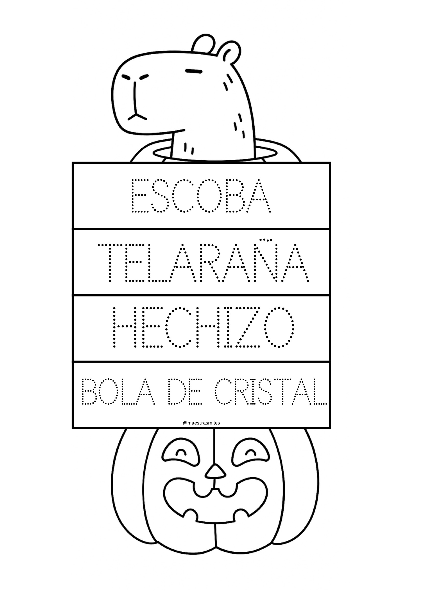 Incluye muchísimos diseños: capibaras, murciélagos, fantasmas, calabazas, monstruos…🦇🕷️💀