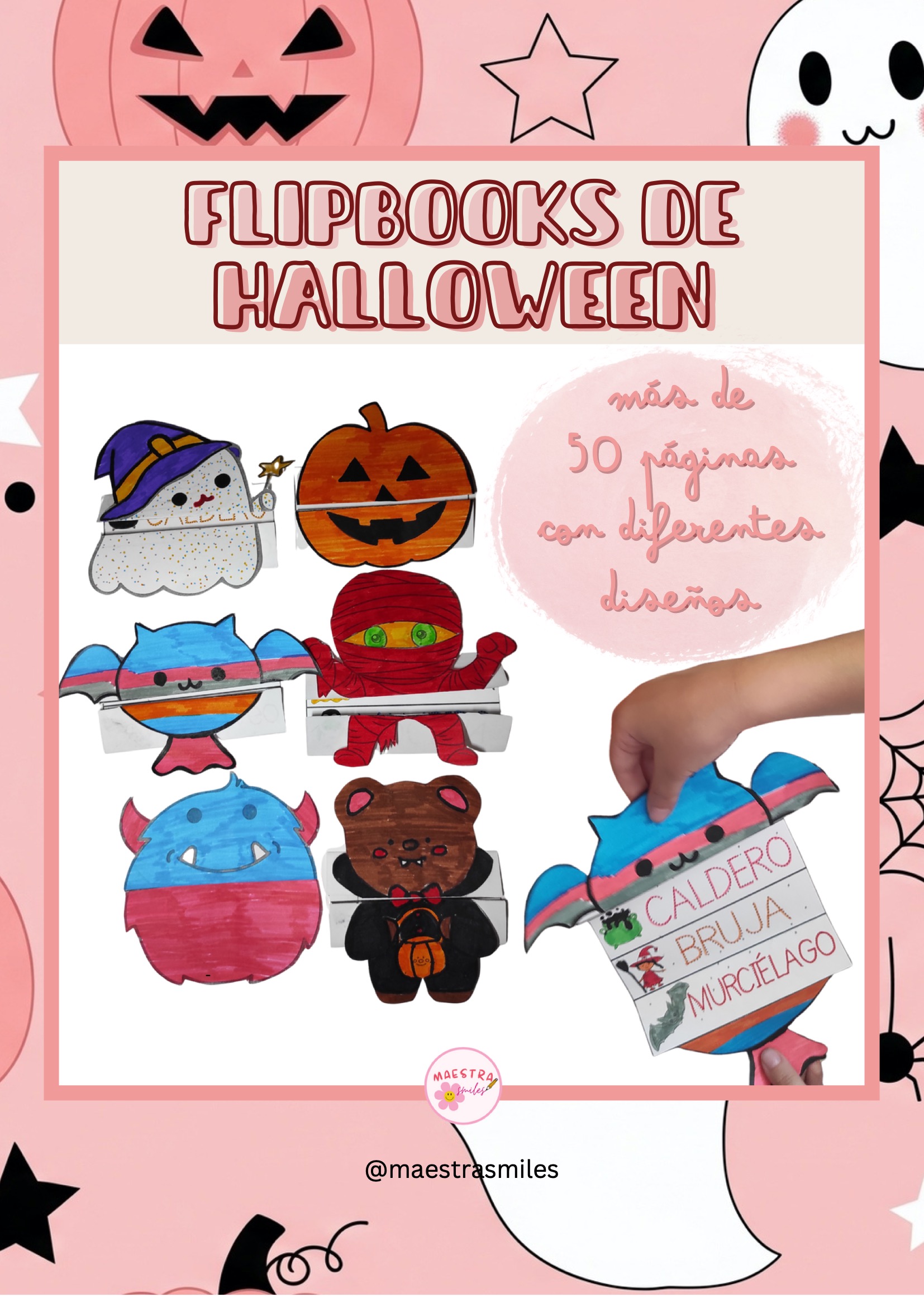 Más de 50 páginas para crear flipbooks de Halloween 🎃