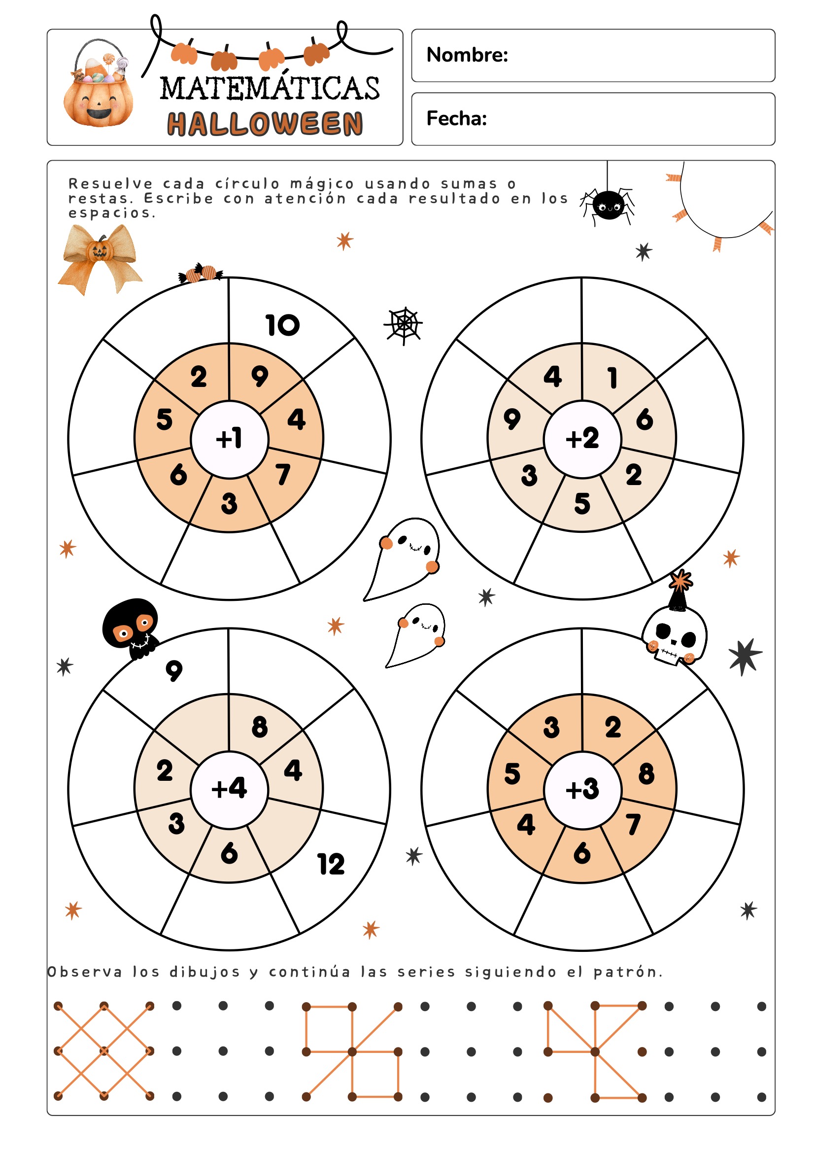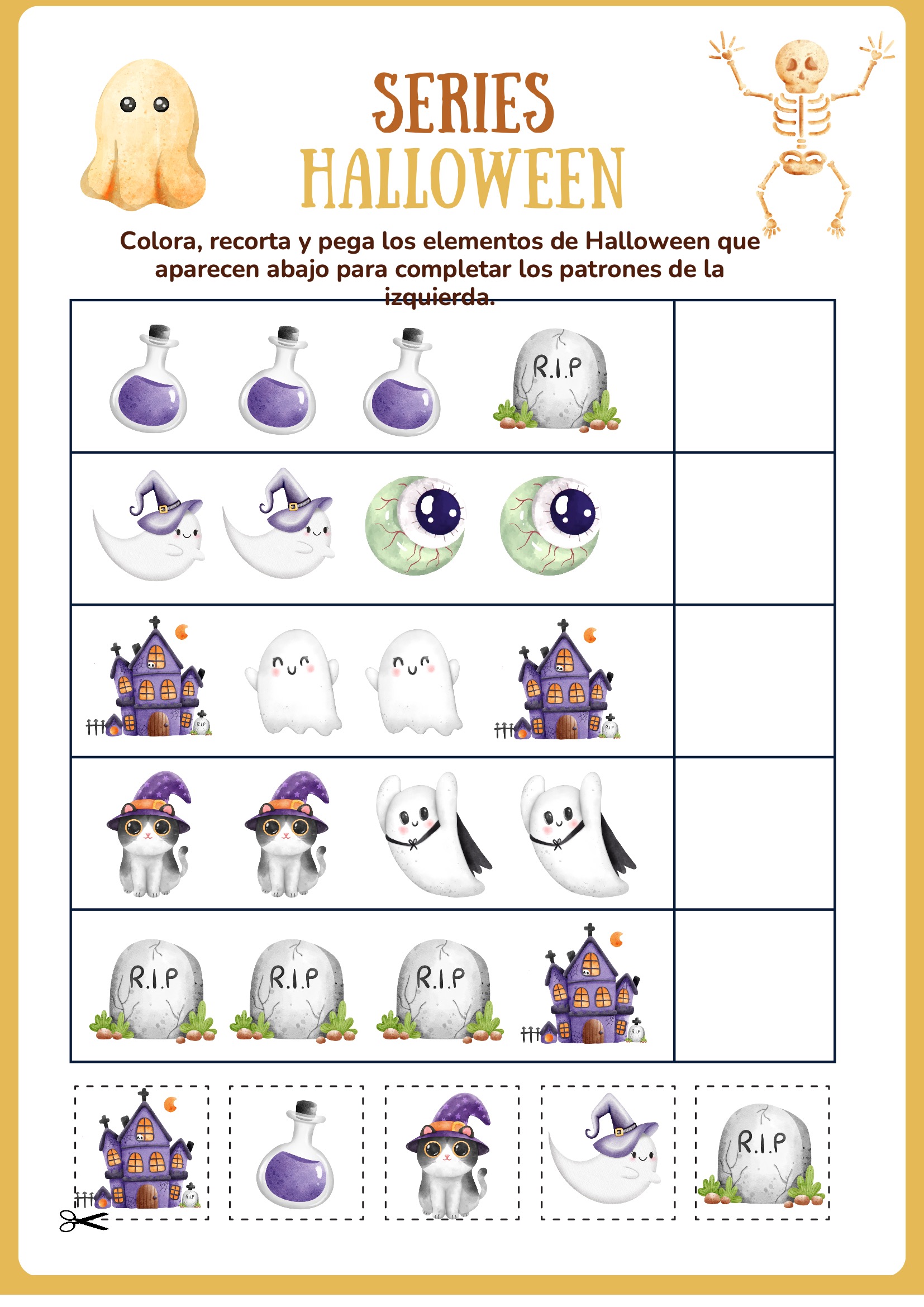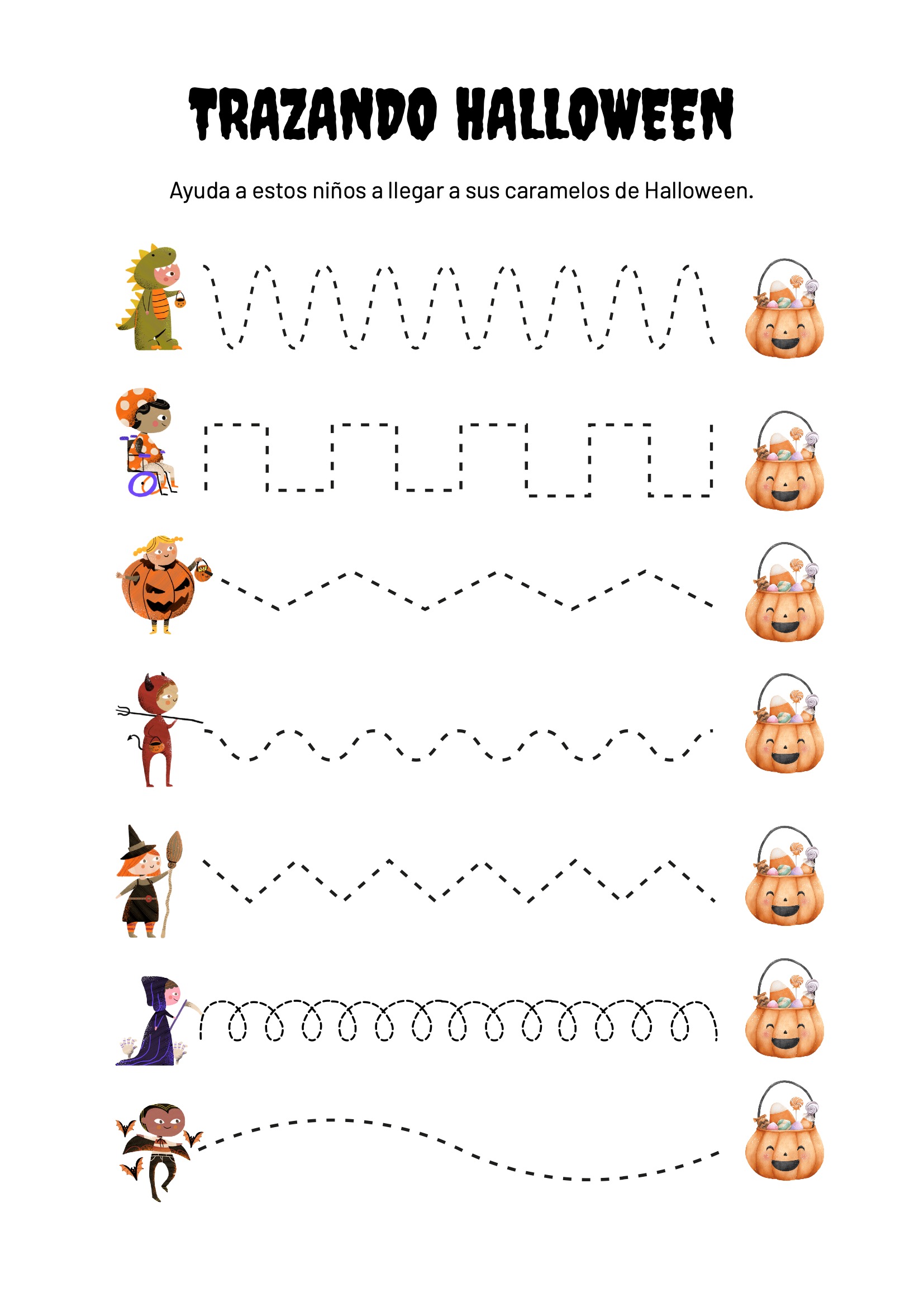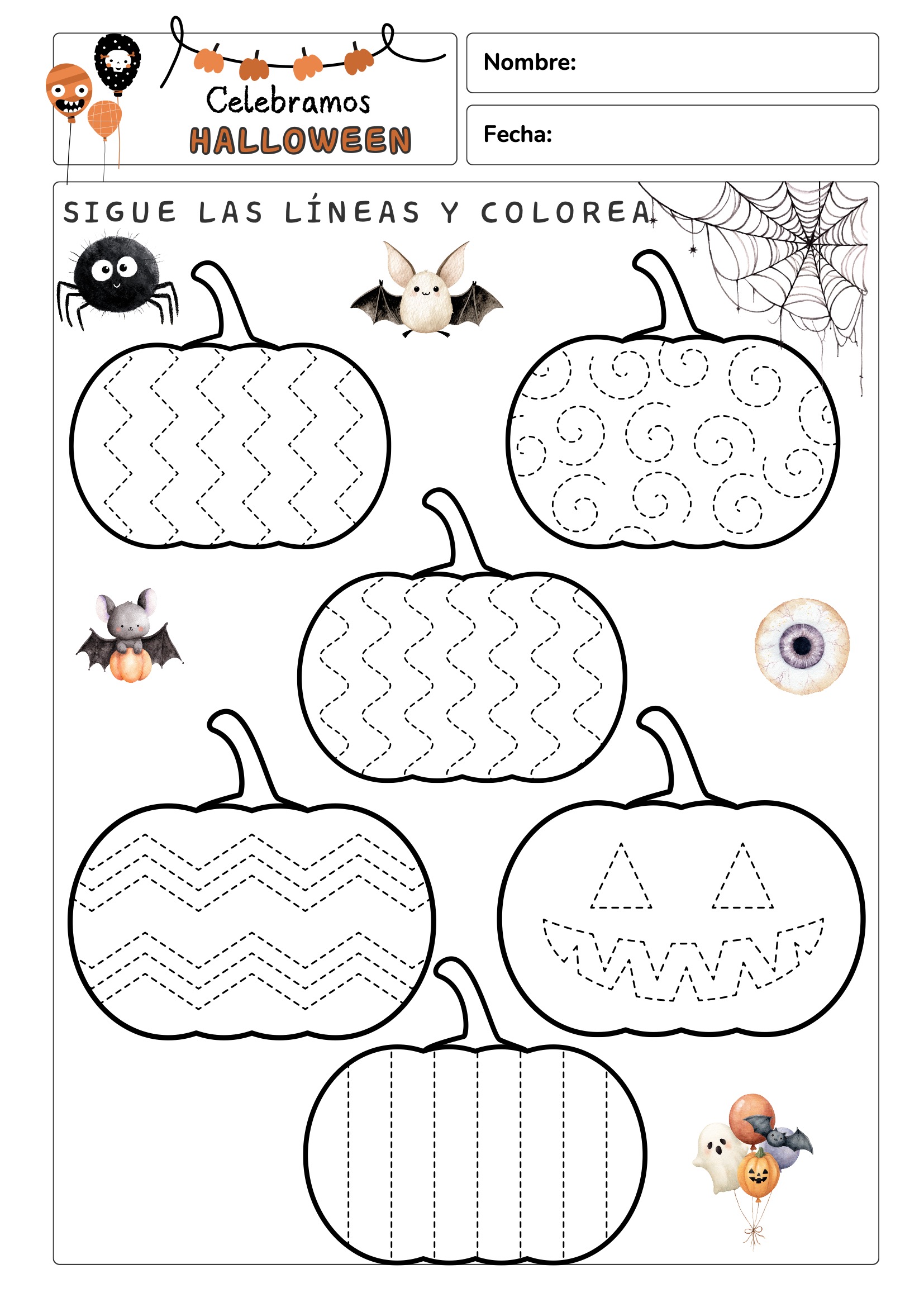 Este recurso educativo ofrece una gran variedad de fichas imprimibles con actividades de matemáticas, lectoescritura, atención y creatividad, todas ambientadas en Halloween:
