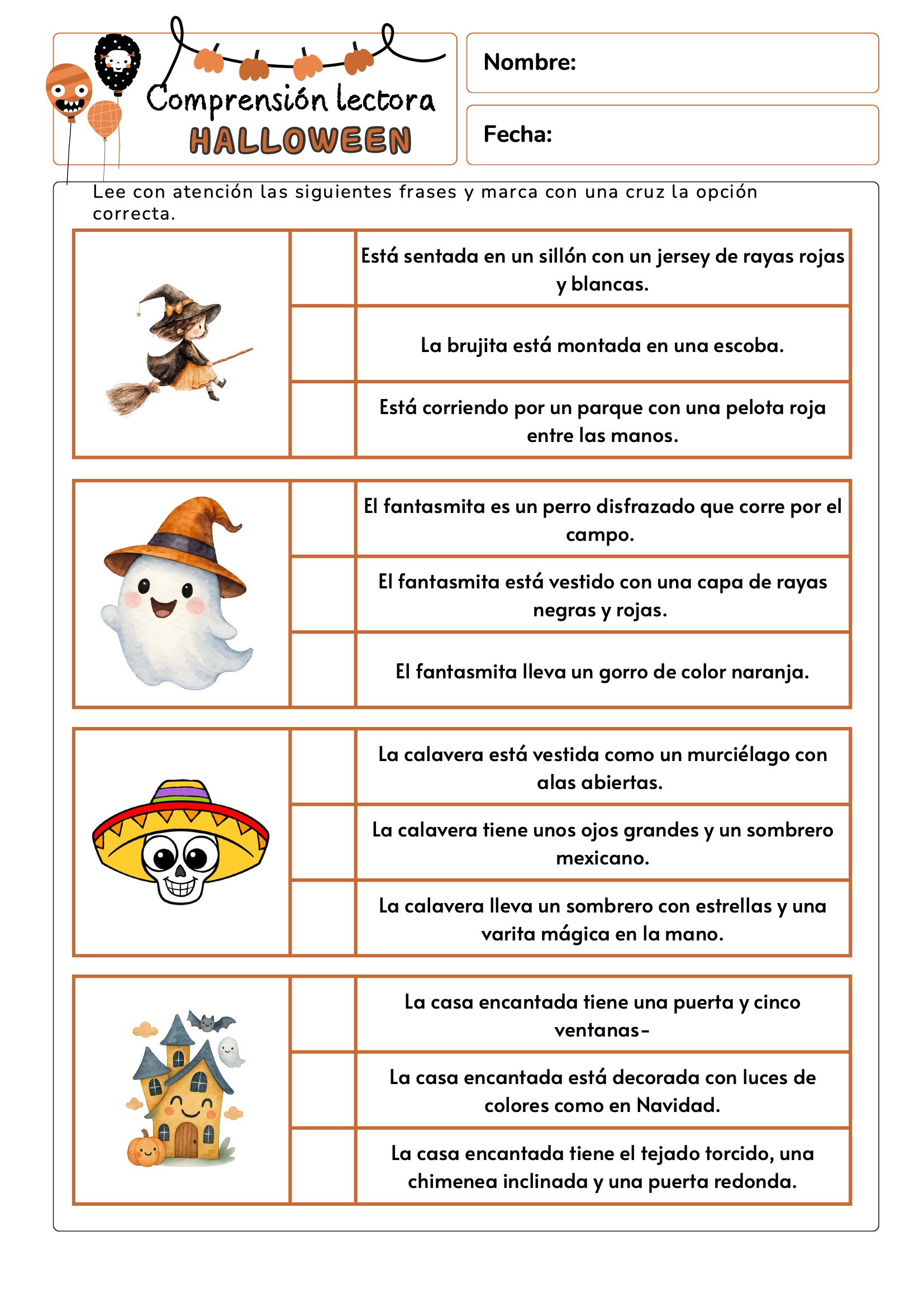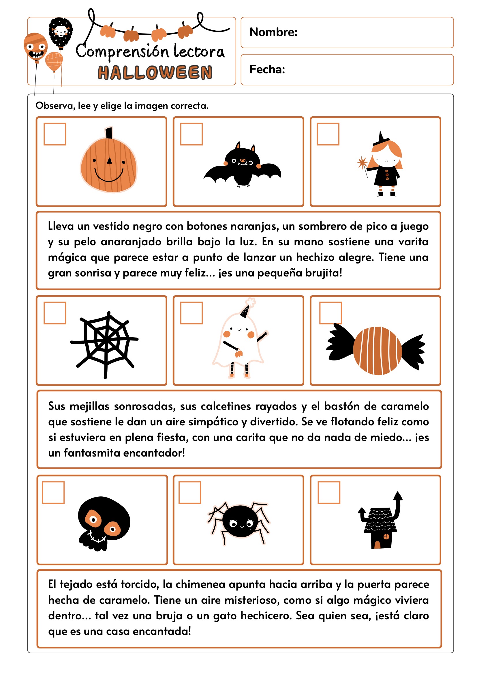 🎃 Ejercicios de comprensión lectora con personajes de Halloween.
