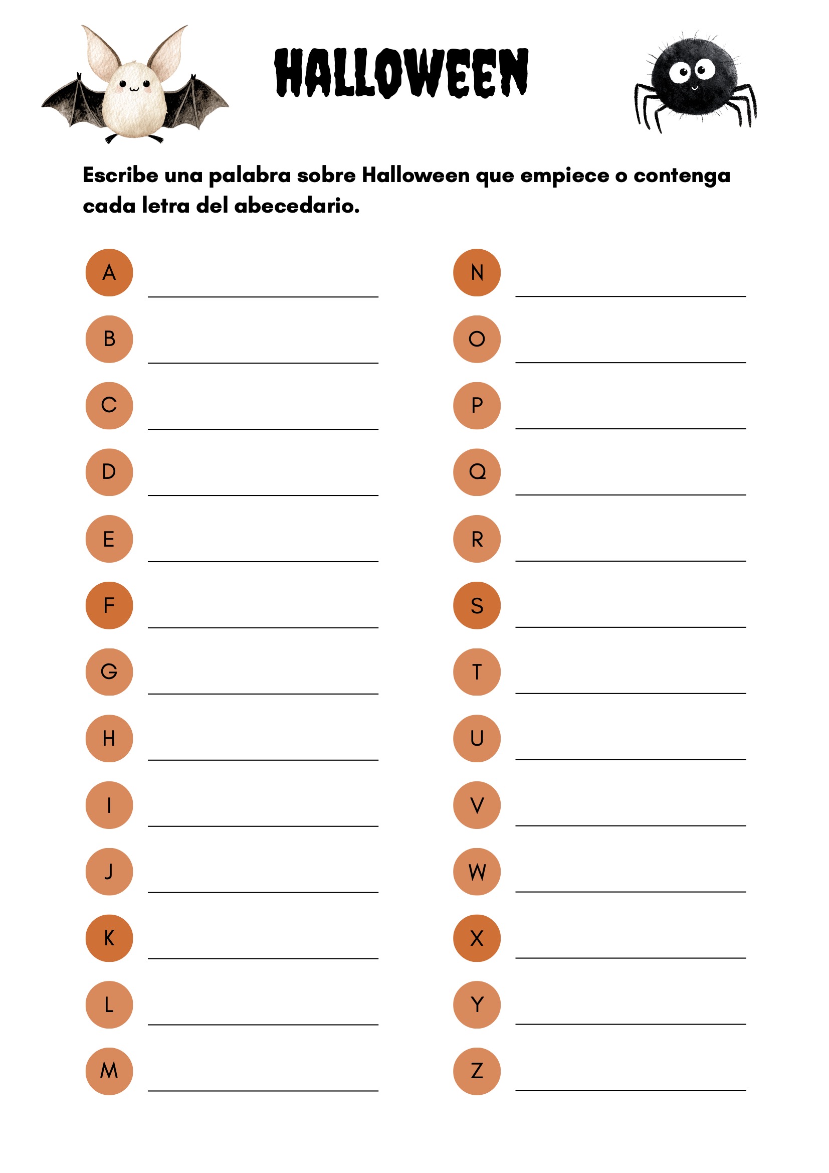 📖 Fichas de vocabulario y abecedario temático de Halloween.
