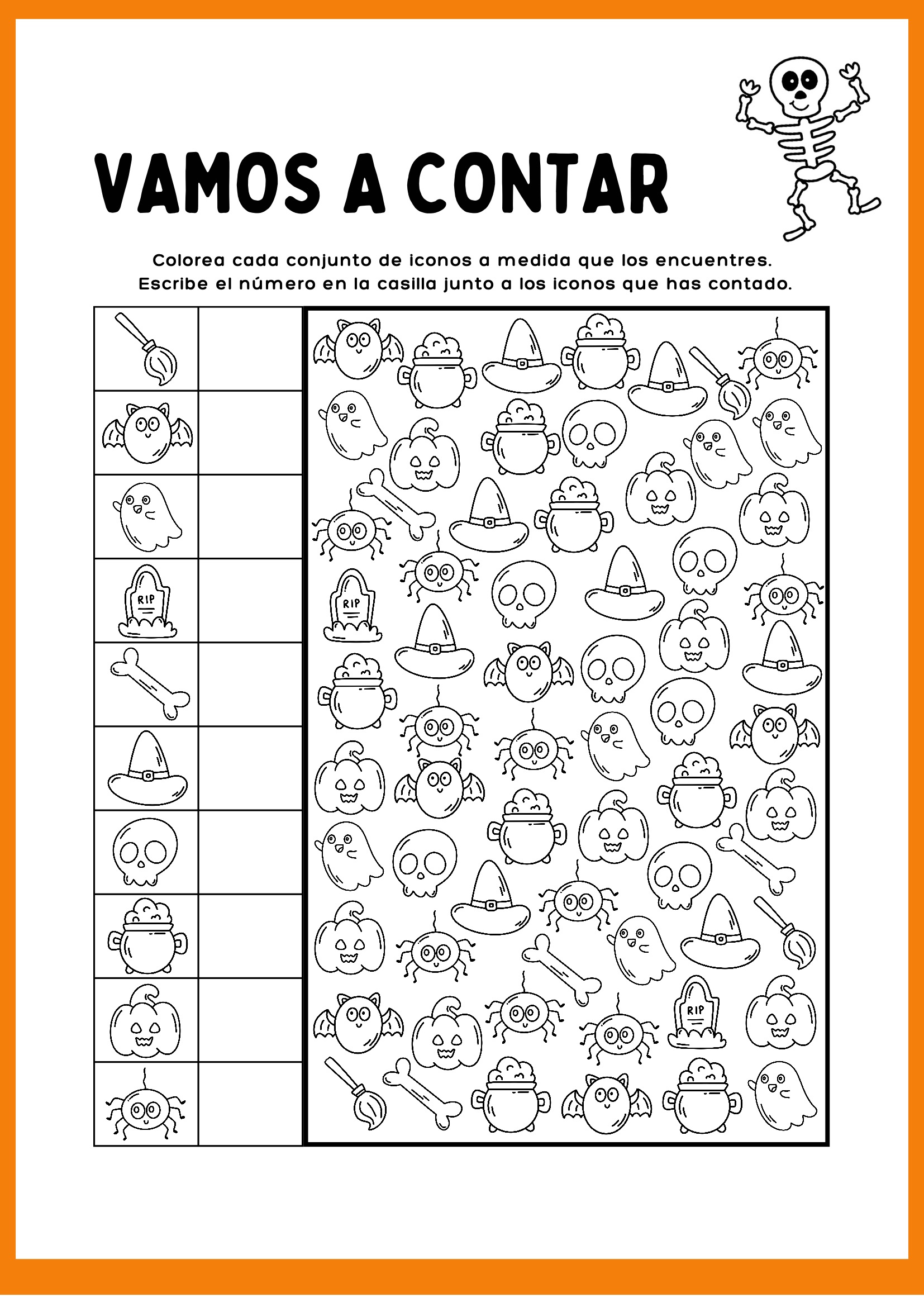 Imprime el cuadernillo completo o selecciona las fichas que mejor se adapten a tus necesidades. Es ideal para trabajar en clase o en casa, tanto en lengua como en matemáticas, y perfecto para actividades especiales durante la semana de Halloween.