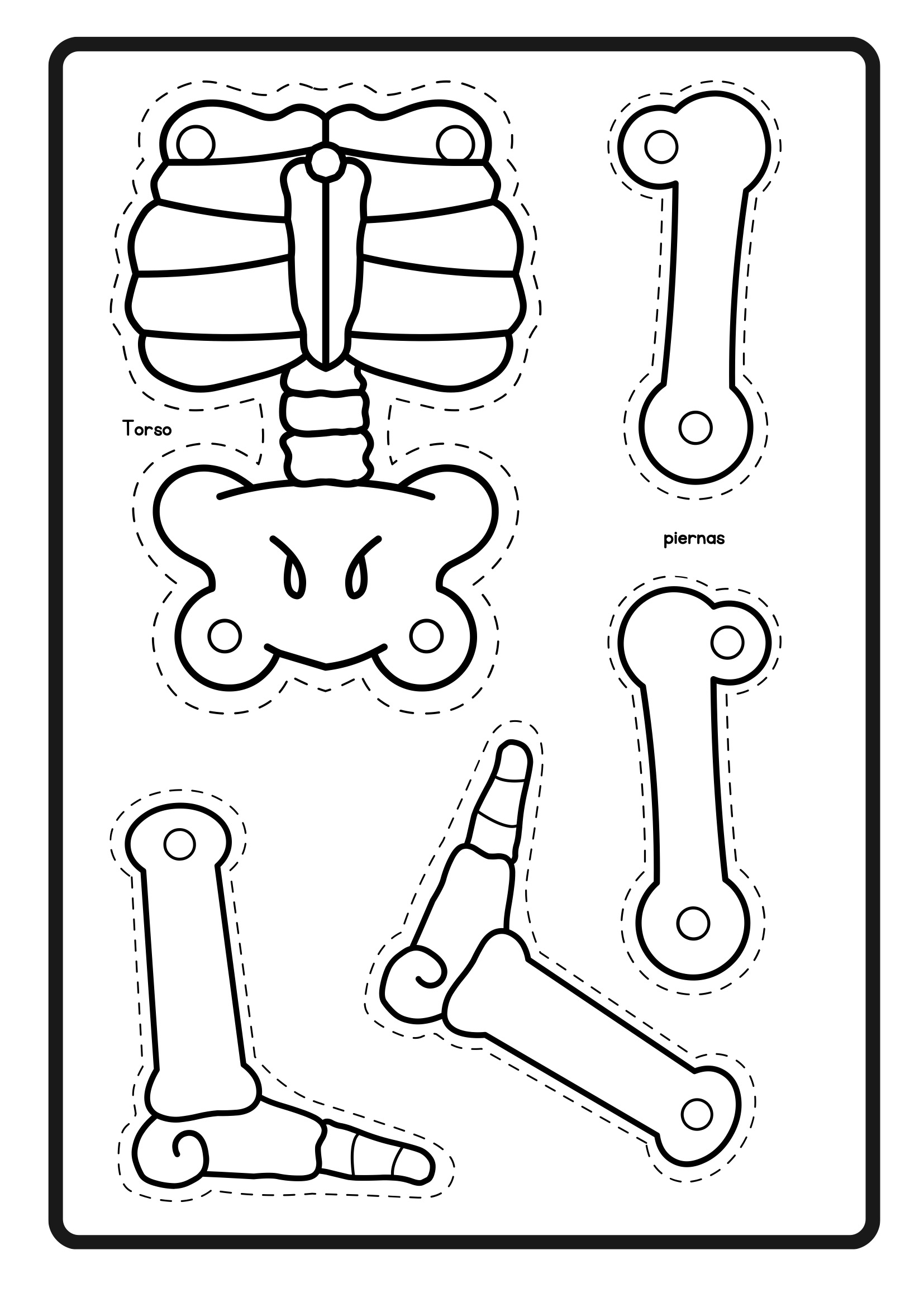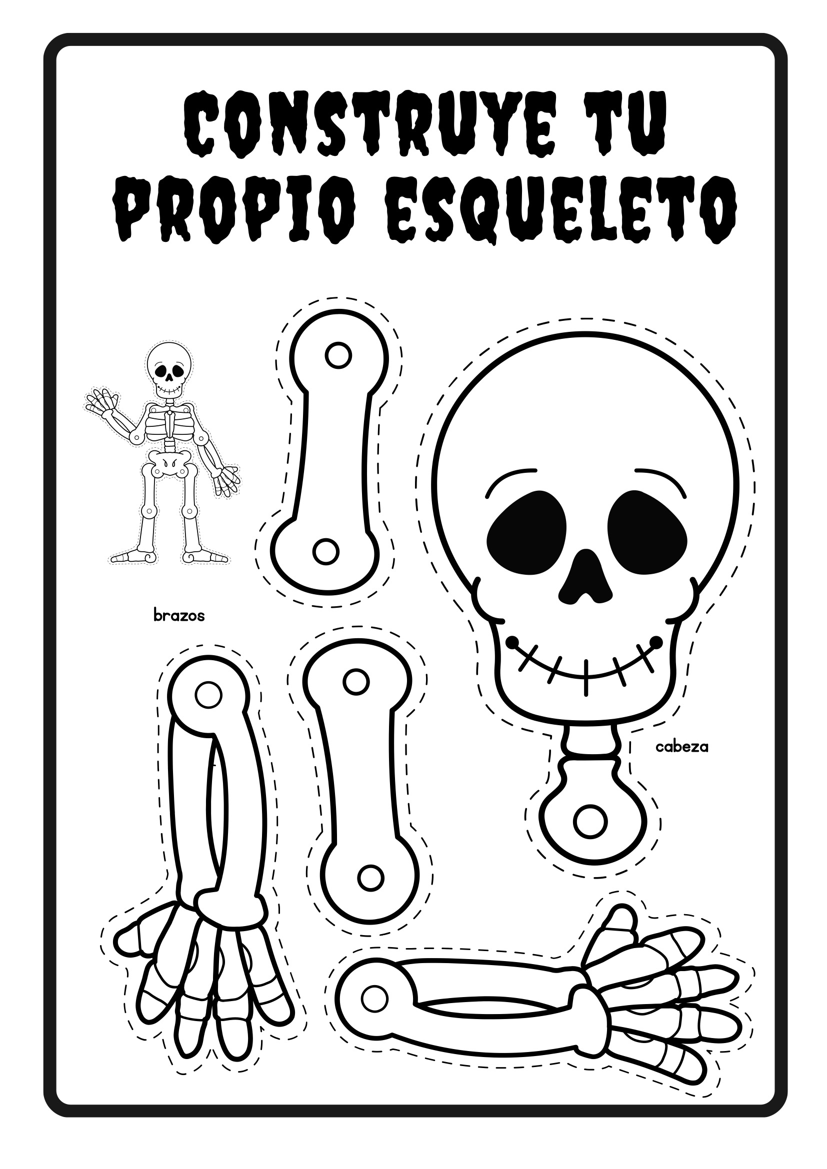 👻 Construye tu propio monstruo o esqueleto recortando y pegando piezas.