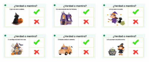 - Comprensión lectora con preciosos dibujos de Halloween: ¿Verdad o mentira?