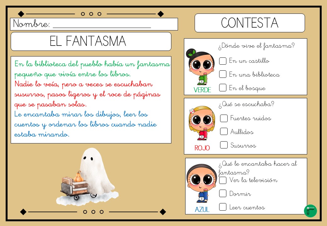 Lecturas comprensivas con pistas visuales dia de Halloween