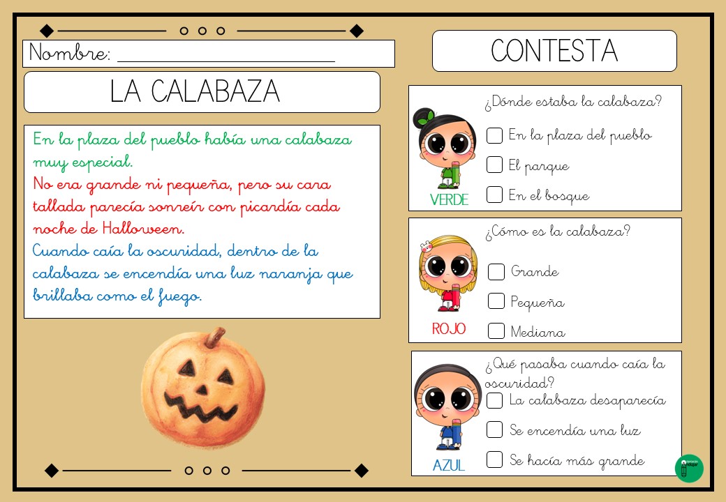 Hoy compartimos un recurso muy especial para trabajar la comprensión lectora en Primaria, aprovechando la temática de actualidad: Halloween. A través de entrañables historias infantiles, los alumnos trabajarán la comprensión lectora al tener que responder a una serie de preguntas.
