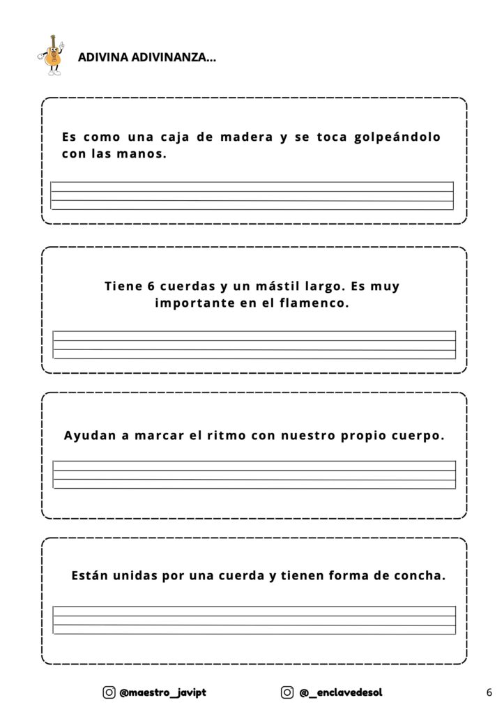 🎶 Adivinanzas musicales relacionadas con los instrumentos típicos.
