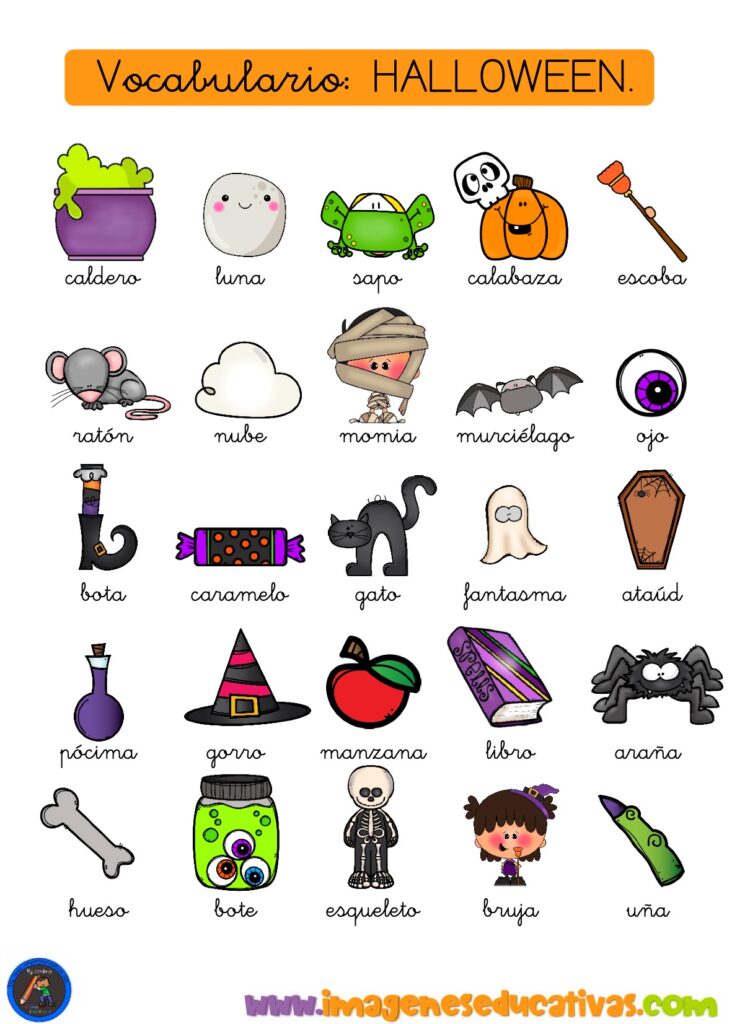 🎃 Vocabulario ilustrado con palabras de Halloween.