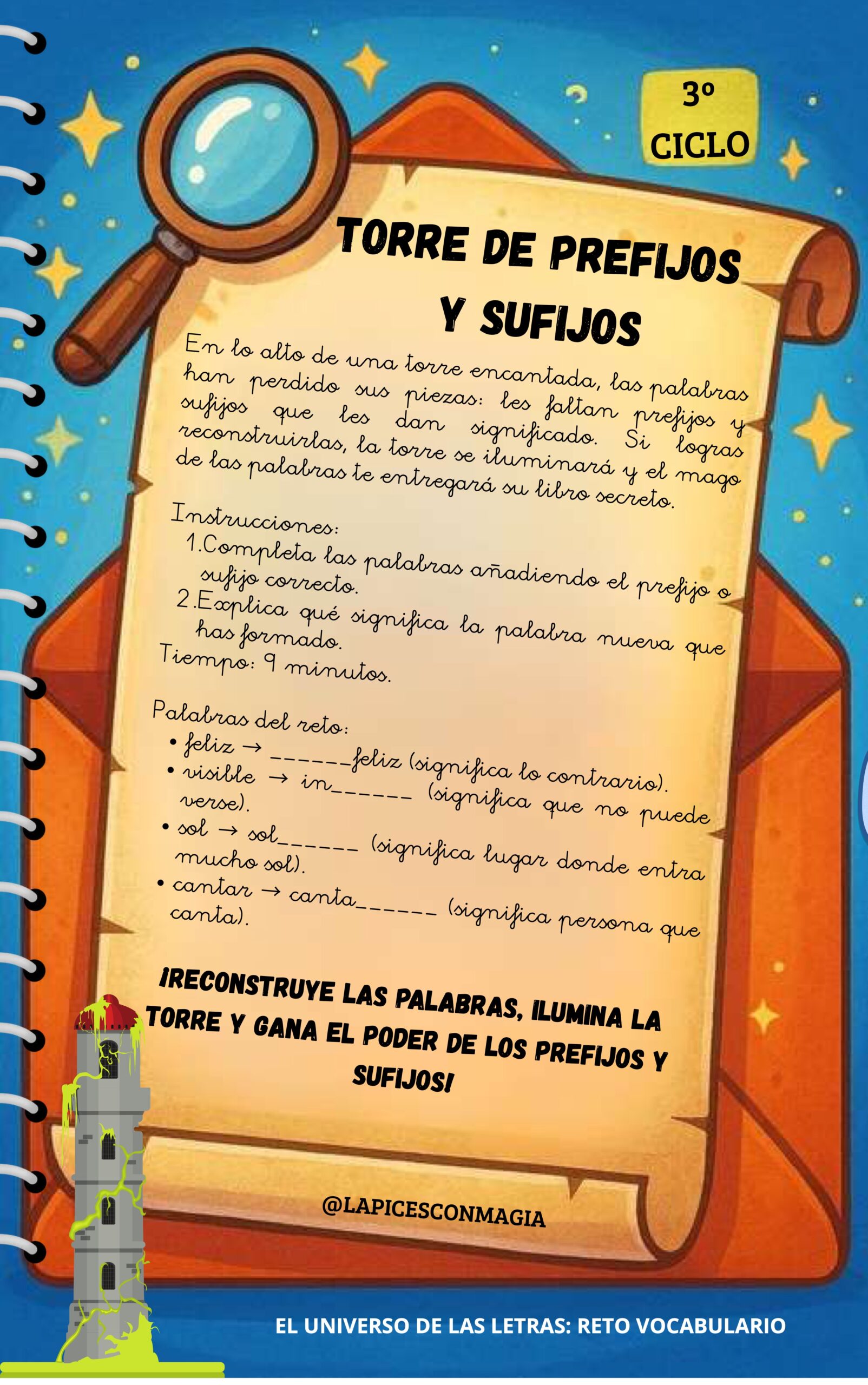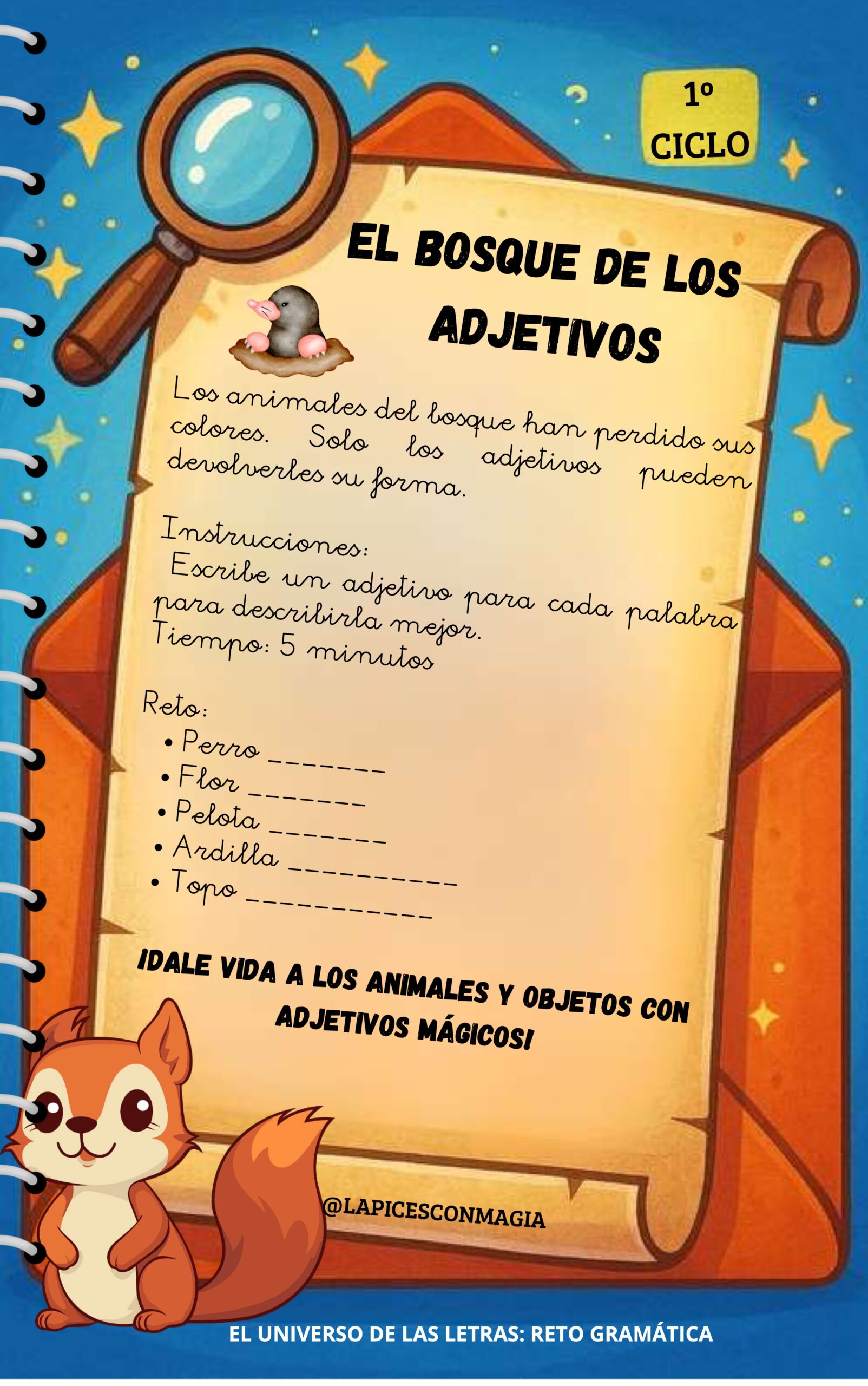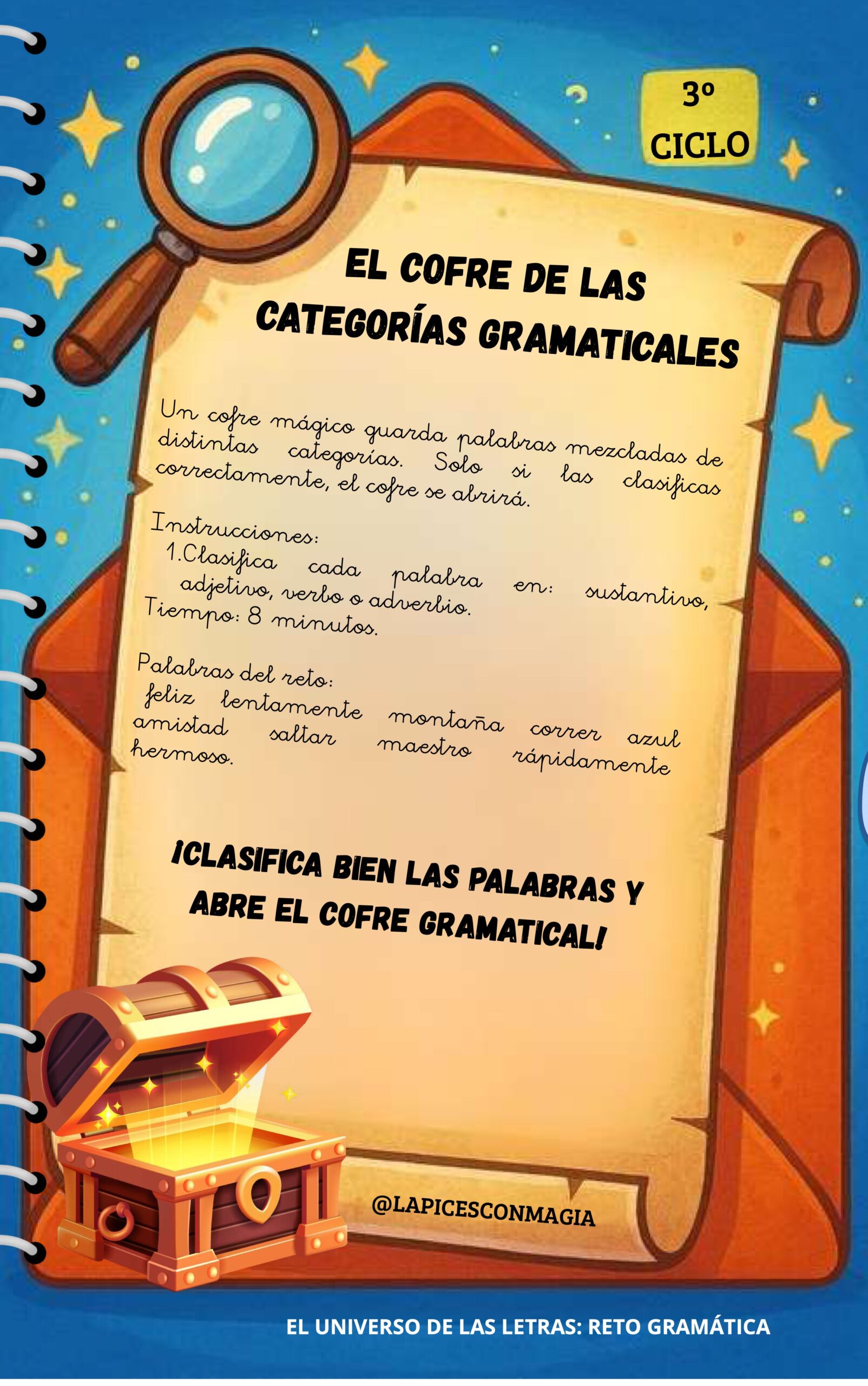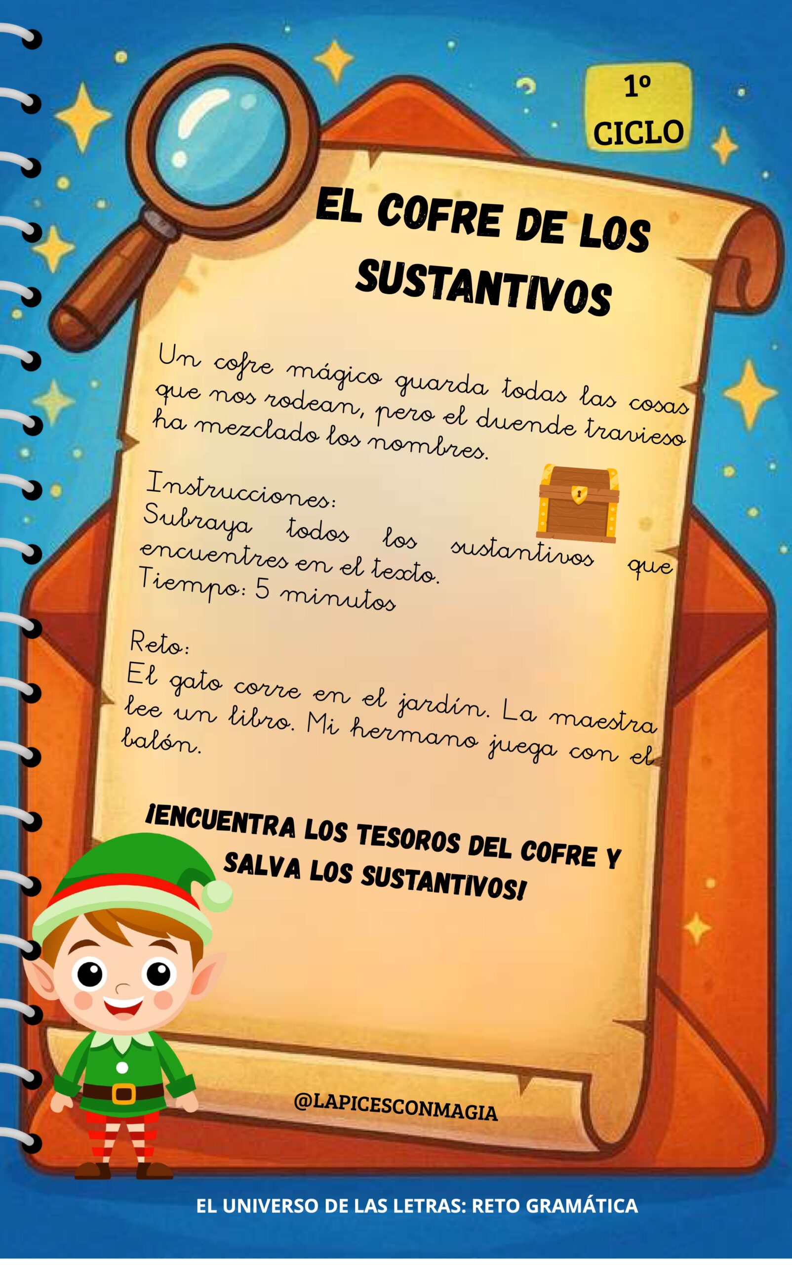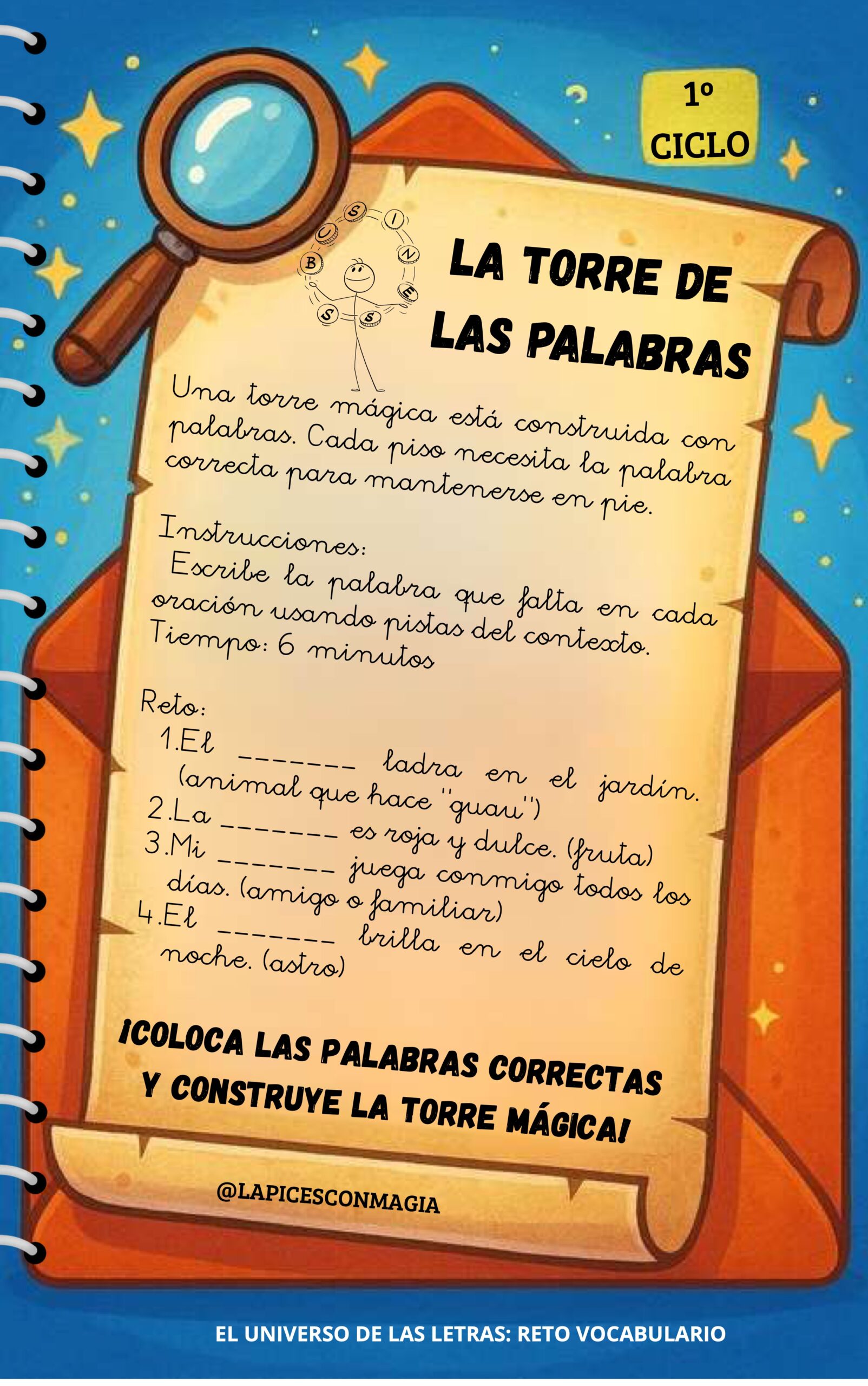 Cada ficha convierte el aprendizaje en una aventura donde los alumnos se convierten en detectives, magos o exploradores del lenguaje.