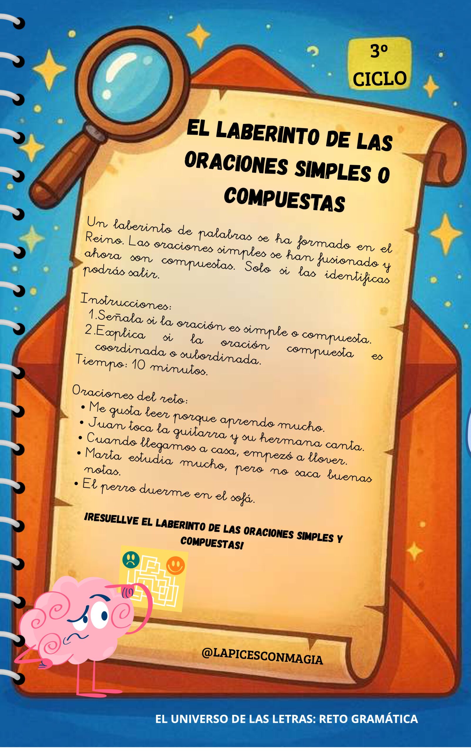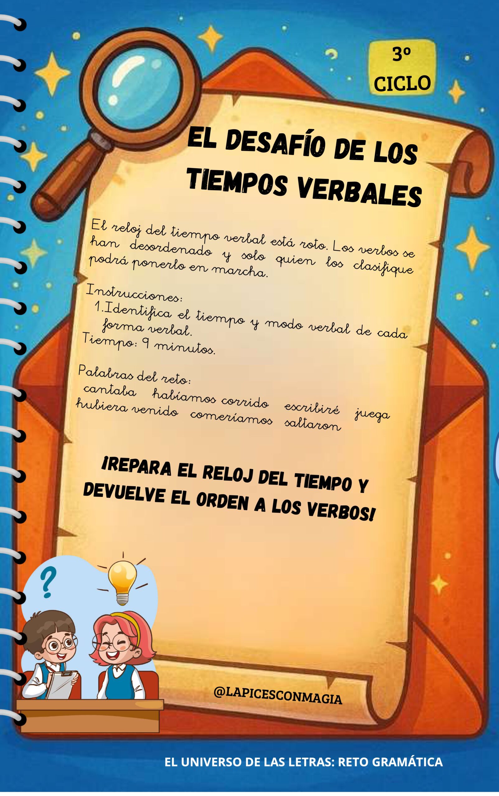 Imprime los retos por ciclos y utilízalos como actividades de repaso, estaciones de aprendizaje o desafíos semanales. Son ideales para trabajar la motivación, el razonamiento lingüístico y la gamificación en tus clases de Lengua.