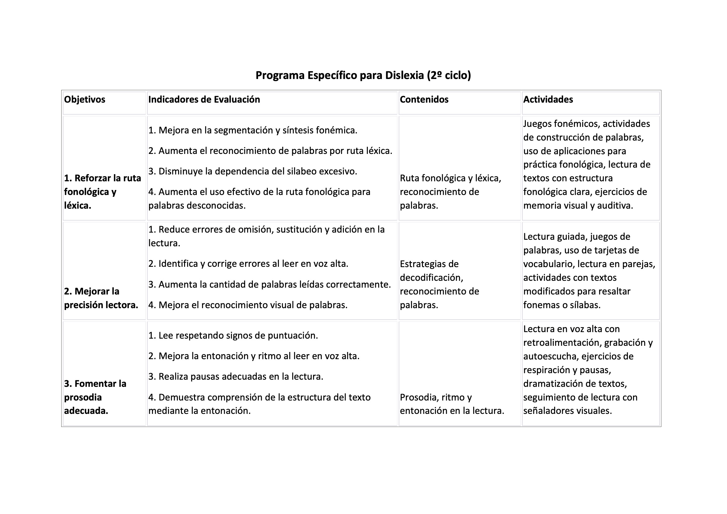 PROGRAMA ESPECÍFICO DISLEXIA