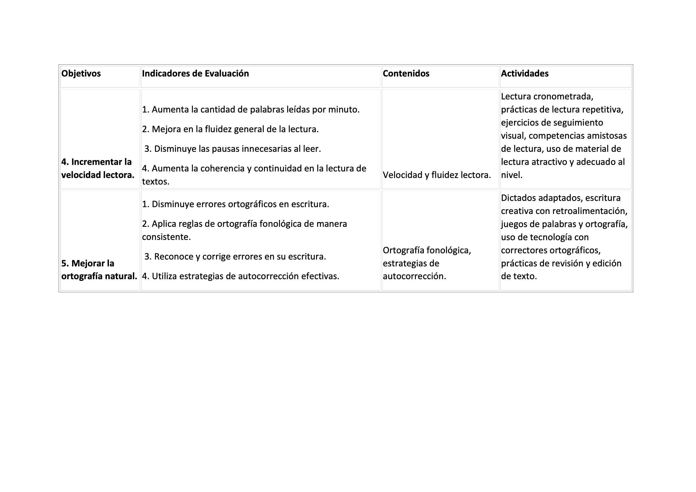 📖 Mejora de la precisión y fluidez lectora, con ejercicios de lectura cronometrada y seguimiento visual.
