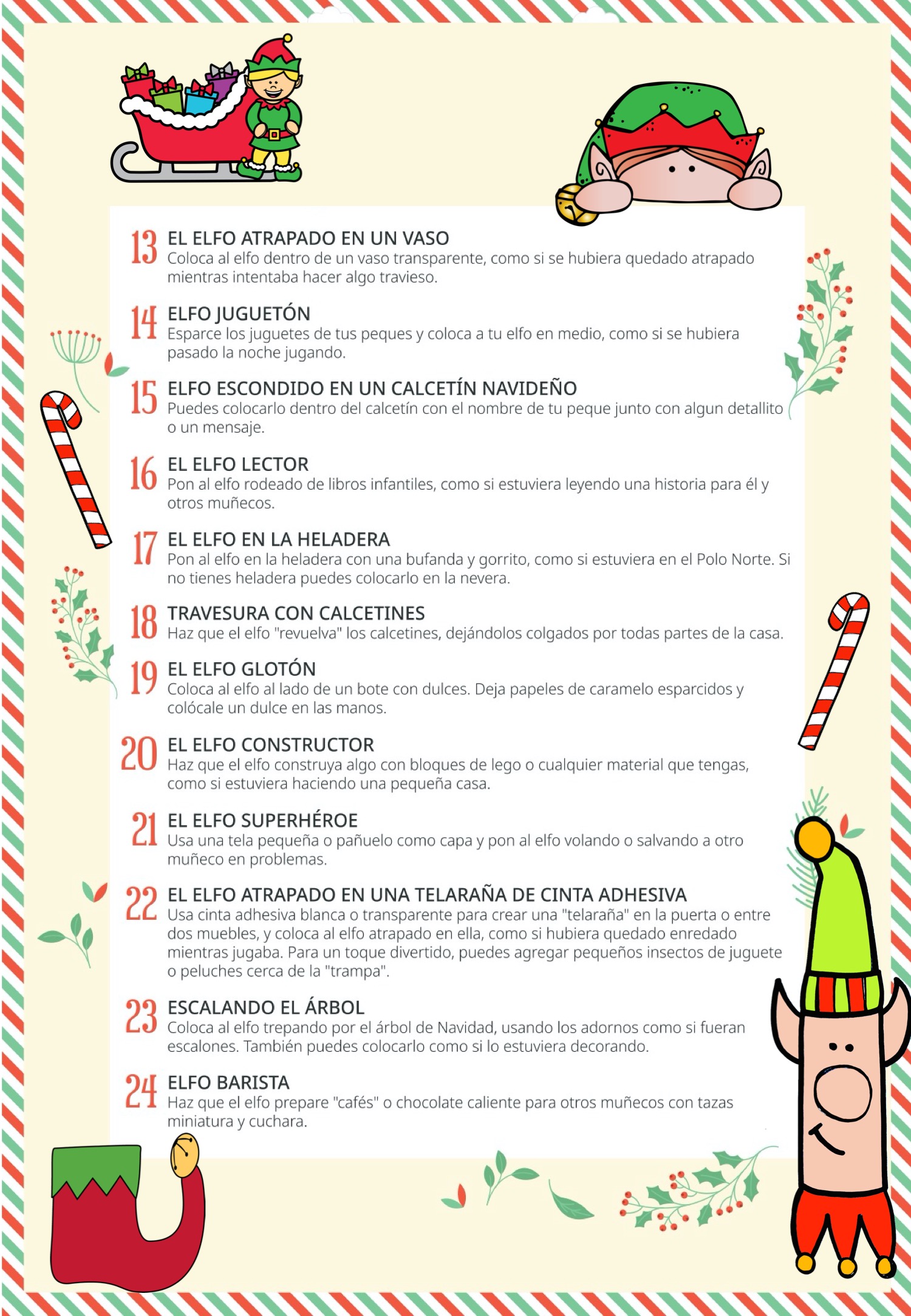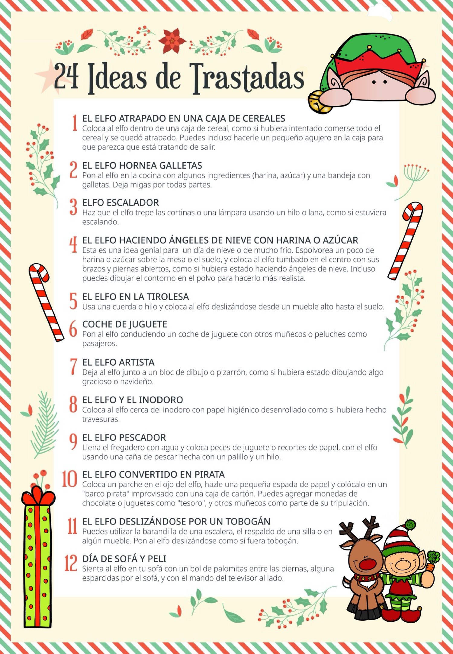 En este recurso encontrarás 24 ideas originales y creativas para organizar las pequeñas travesuras diarias de tu elfo durante todo el mes de diciembre.