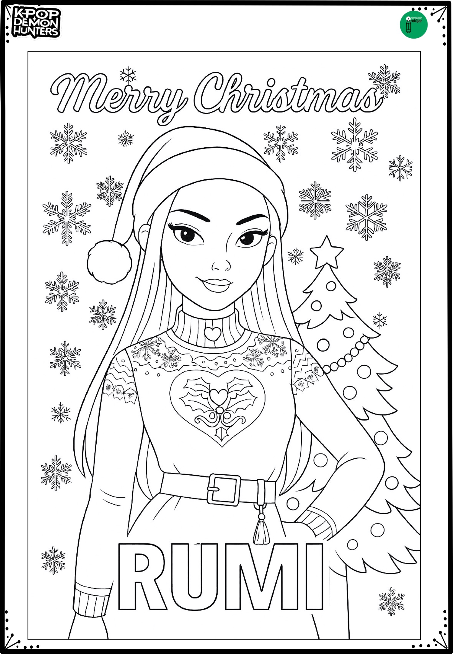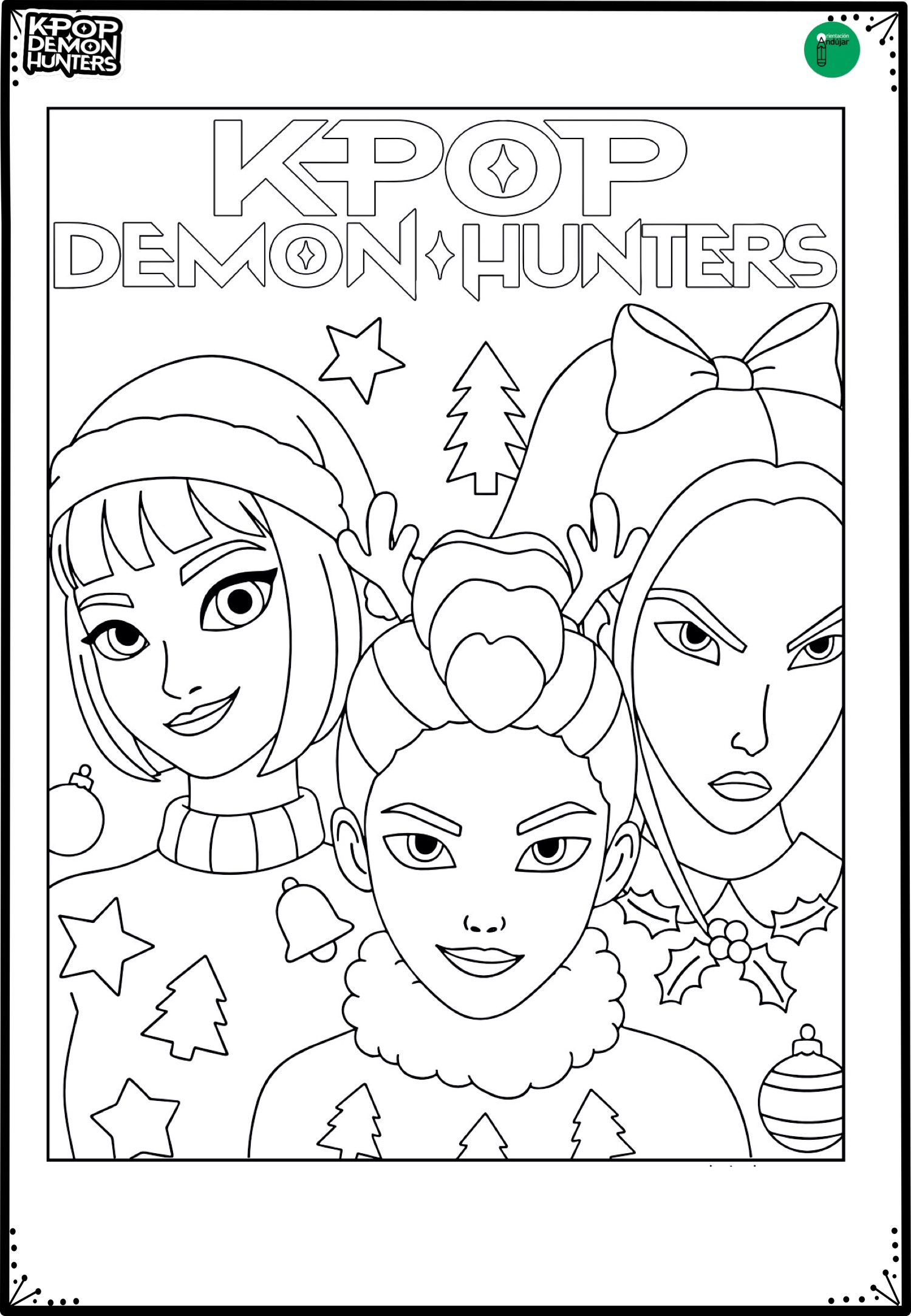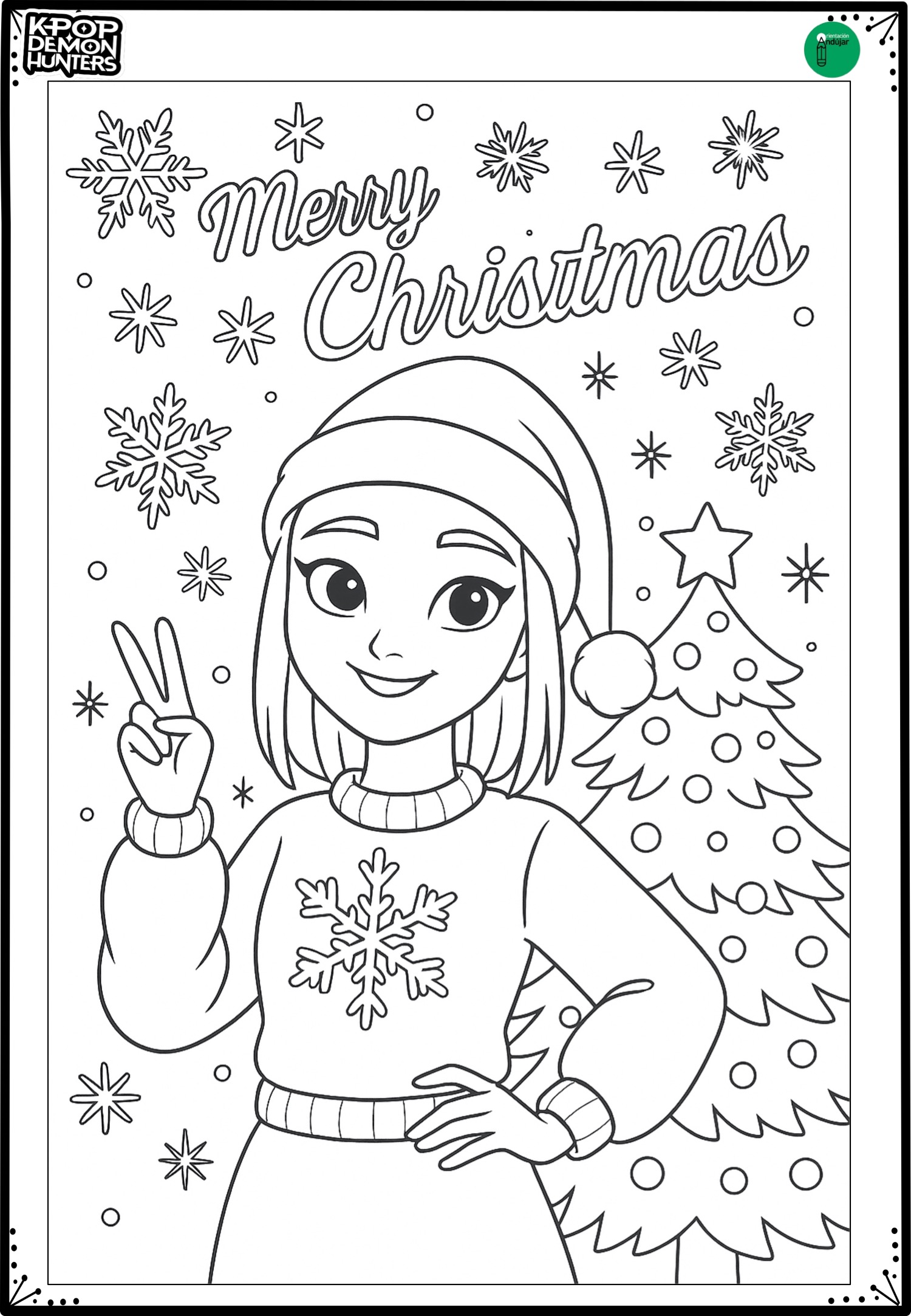 🖍️ Imágenes navideñas con las Guerreras K-POP, listas para que los niños den rienda suelta a su creatividad.