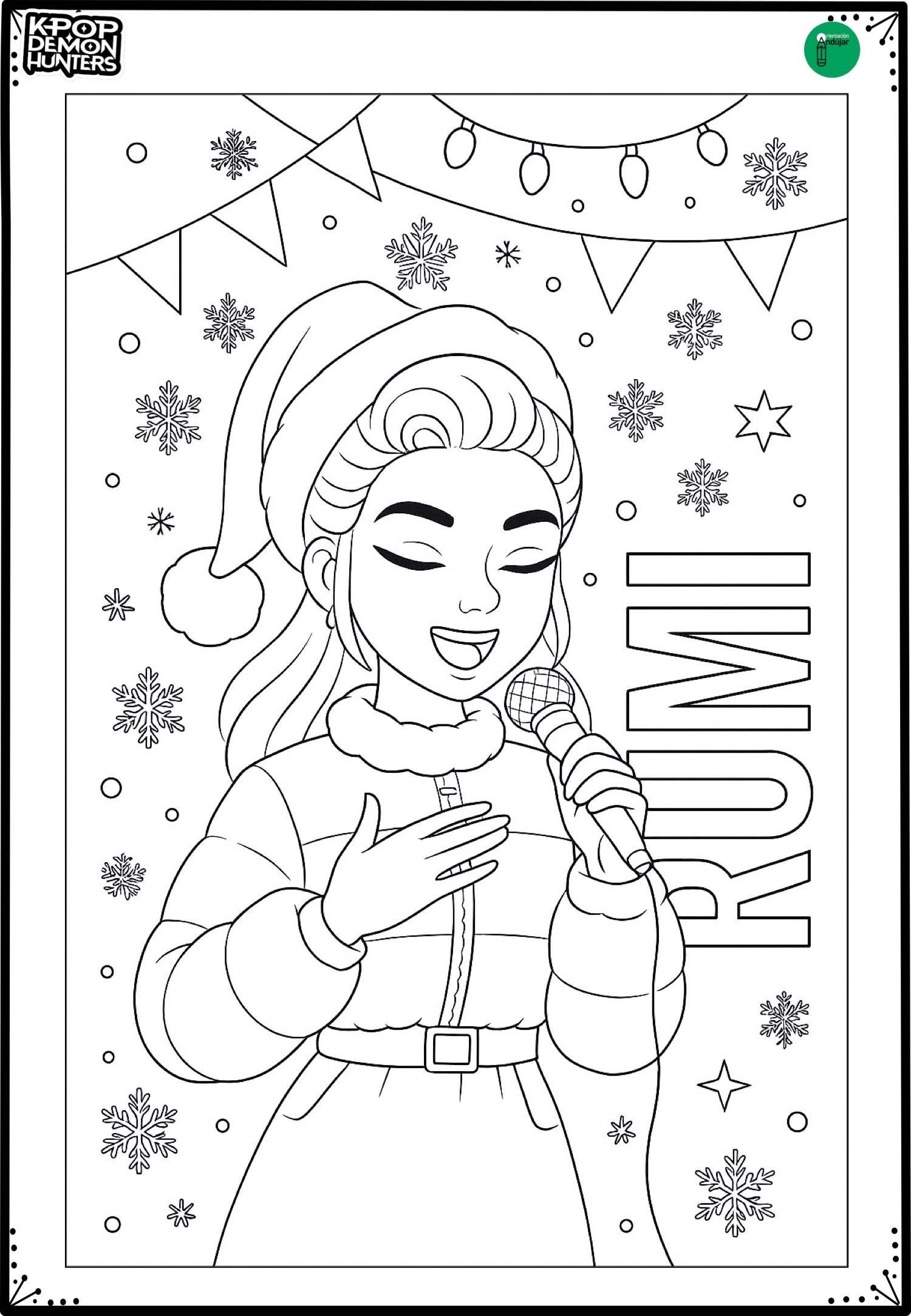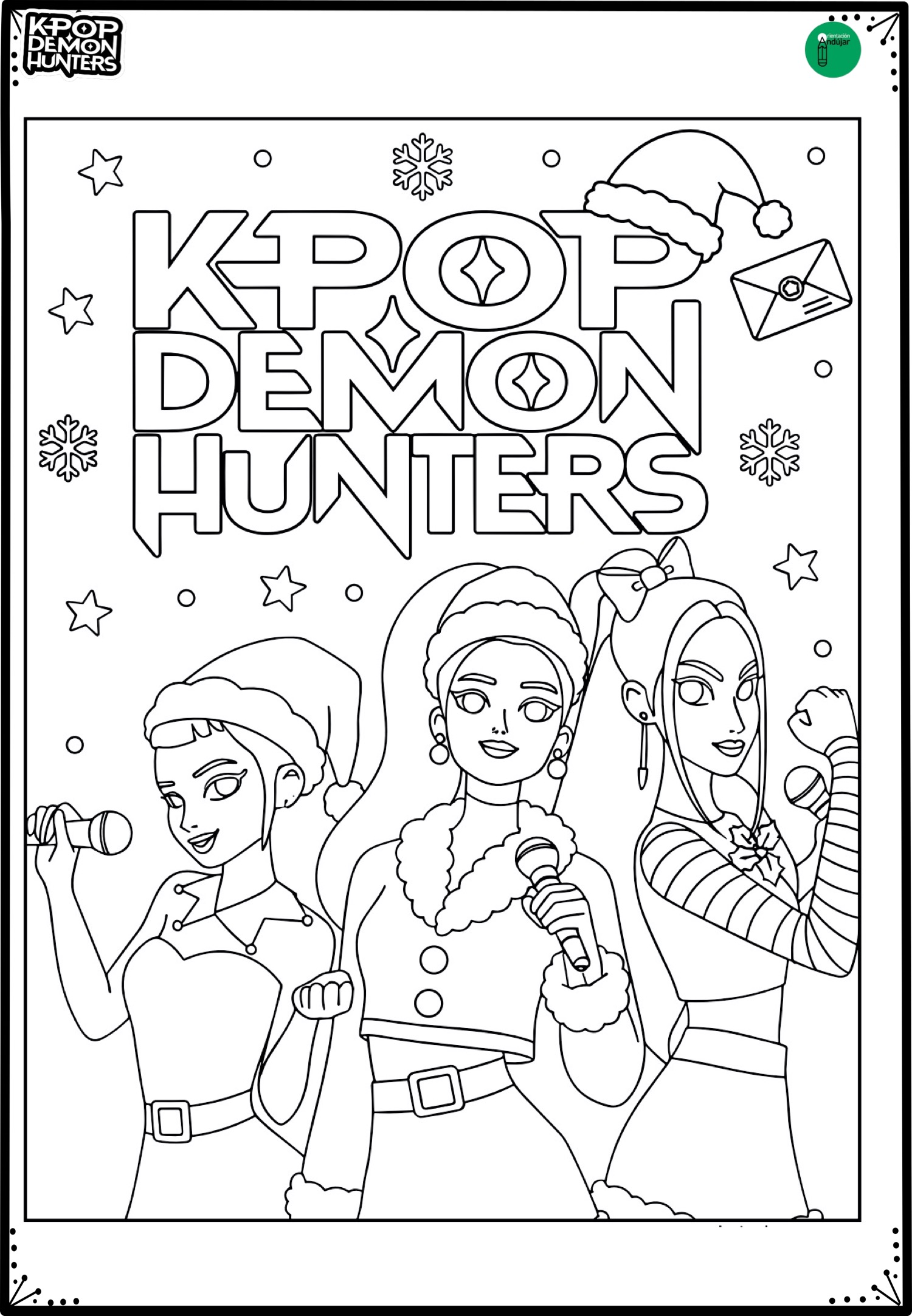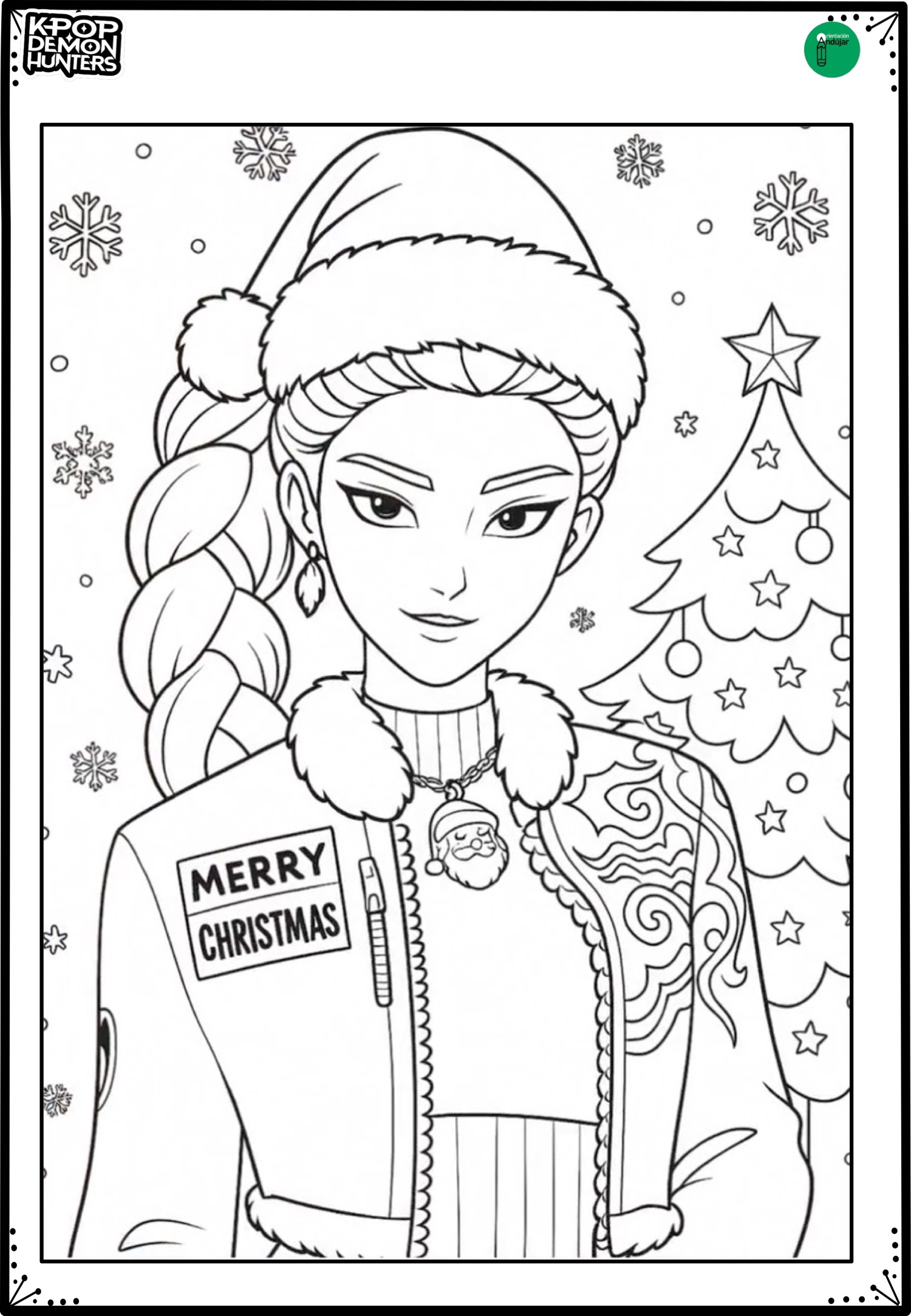 🖍️ Imágenes navideñas con las Guerreras K-POP, listas para que los niños den rienda suelta a su creatividad.